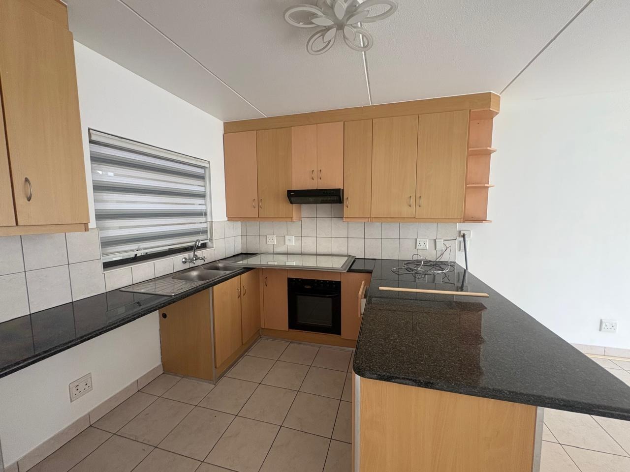 The well-appointed kitchen is designed for both functionality and style, equipped with plenty of cabinetry, sleek dark granite countertops, a built-in oven and hob, and a double sink. This space flows effortlessly into the lounge, perfect for everyday living and entertaining. With one dedicated parking bay, convenience is assured for residents.