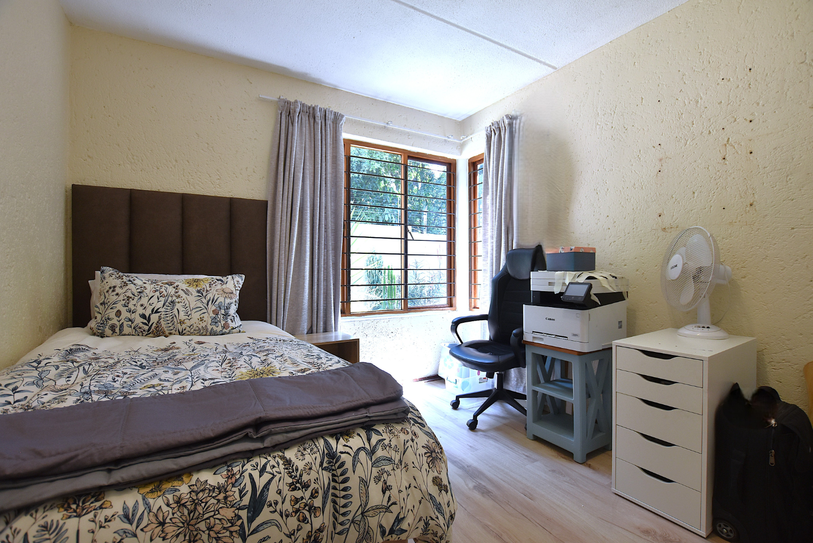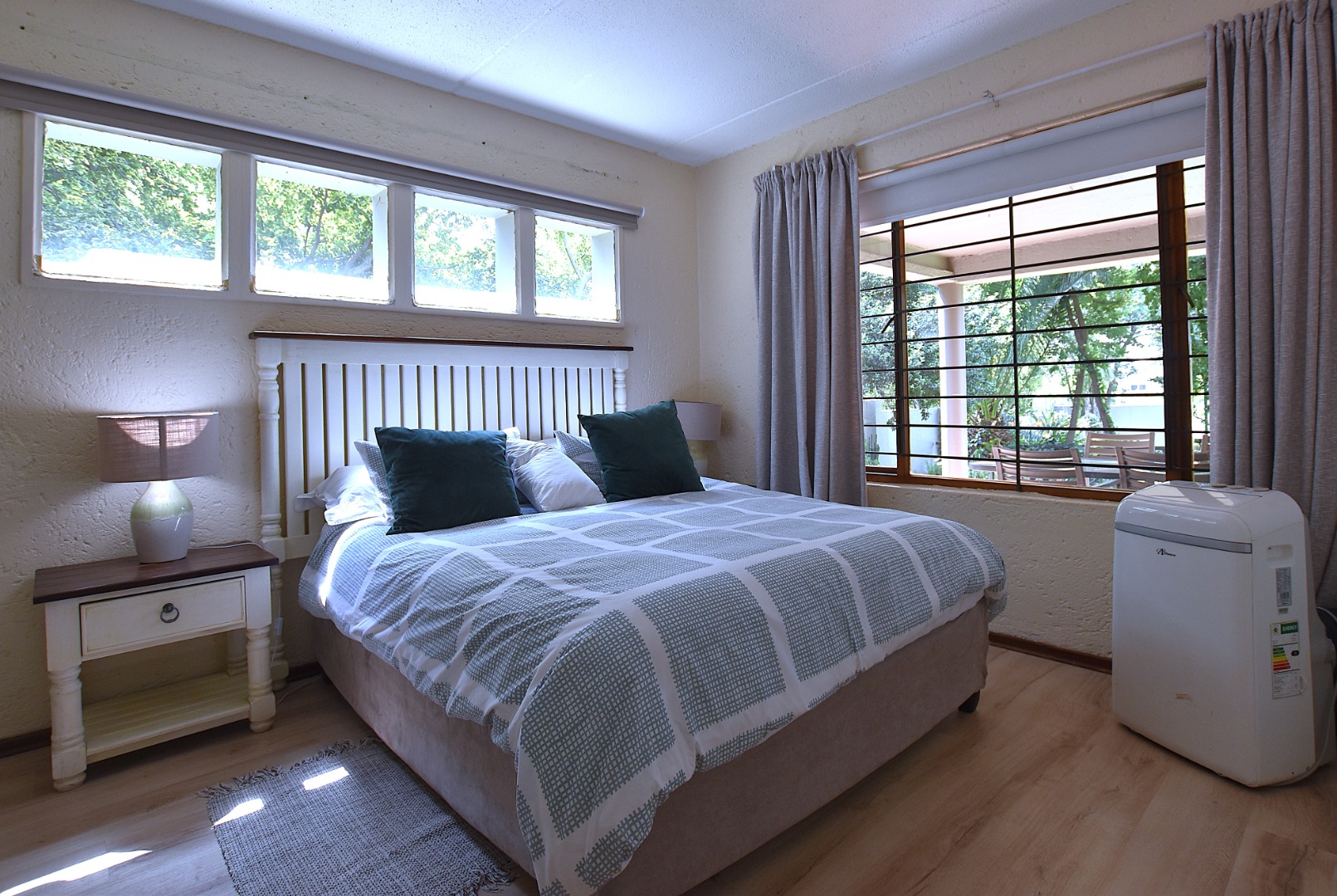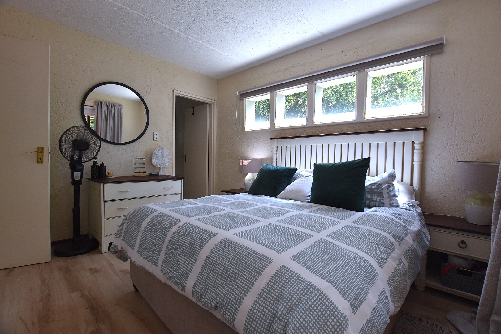 Large windows in the bedrooms invite natural light. There are two bathrooms, main en-suite.