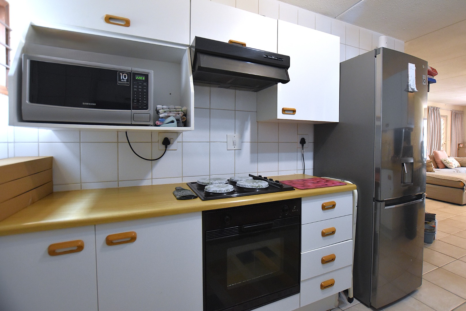 Comfortable apartment available for rent in the sought-after Morningside area of Sandton. This flat featuring an open-plan lounge and dining area with durable tiled flooring, benefiting from ample natural light. The kitchen boasts ample cabinetry, wooden countertops, space for 2 undercounter top appliances, built-in oven, hob with an overhead extractor fan.
