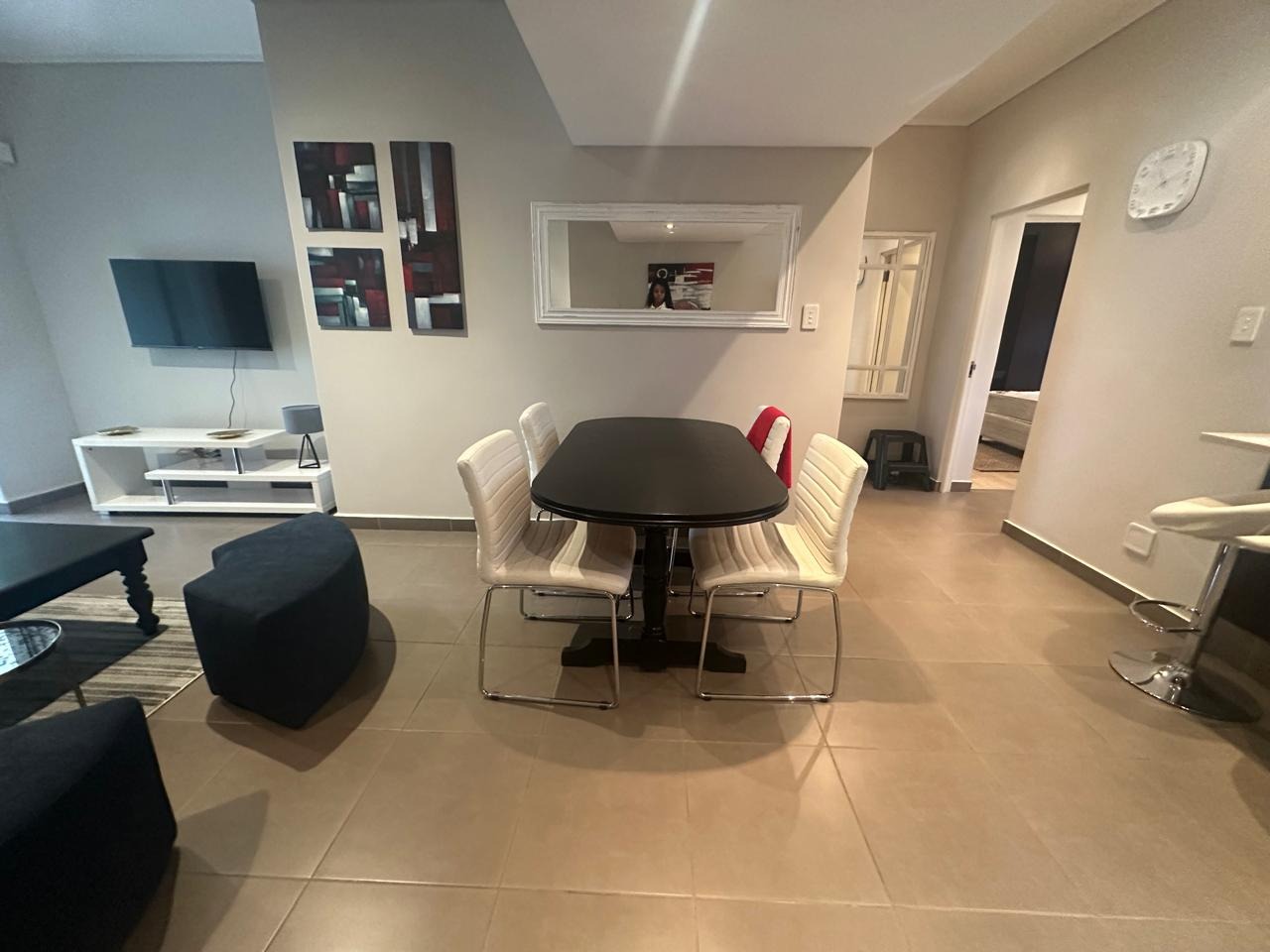 Well maintained and spacious garden apartment at Topaz. 2 bedrooms and 2 bathrooms, dining area, lounge and kitchen which are all open plan to each other and have lots of space to entertain in style. Very spacious living area. The unit is fully furnished. Some furniture items will be added with your input to complete the unit.