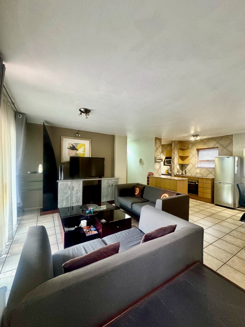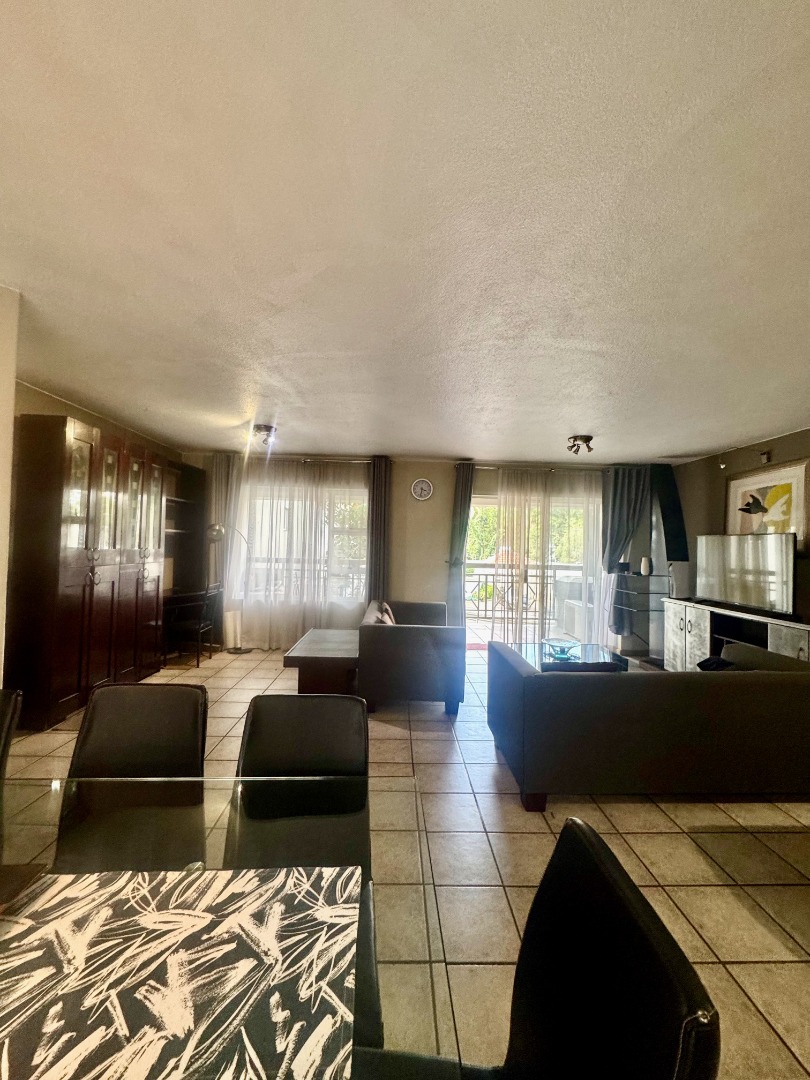 This well sophisticated two-bedroom, two-bathroom apartment, featuring one en-suite with bath and shower, offers an exceptional residential rental opportunity within a highly sought-after security complex in Morningside, Sandton. Spanning 143 square metres (including the balconies), the residence presents an intelligently designed open-plan layout, seamlessly integrating the lounge, dining area, and kitchen. Abundant natural light permeates the living spaces. The contemporary kitchen is equipped with modern stainless steel appliances, granite countertops, and a functional island, alongside dedicated space for a washing machine fridge.