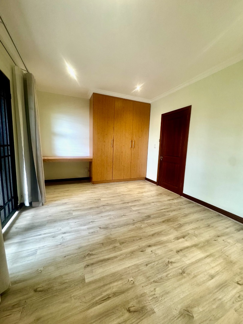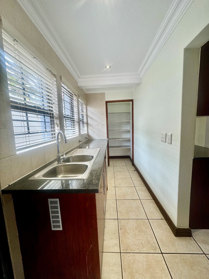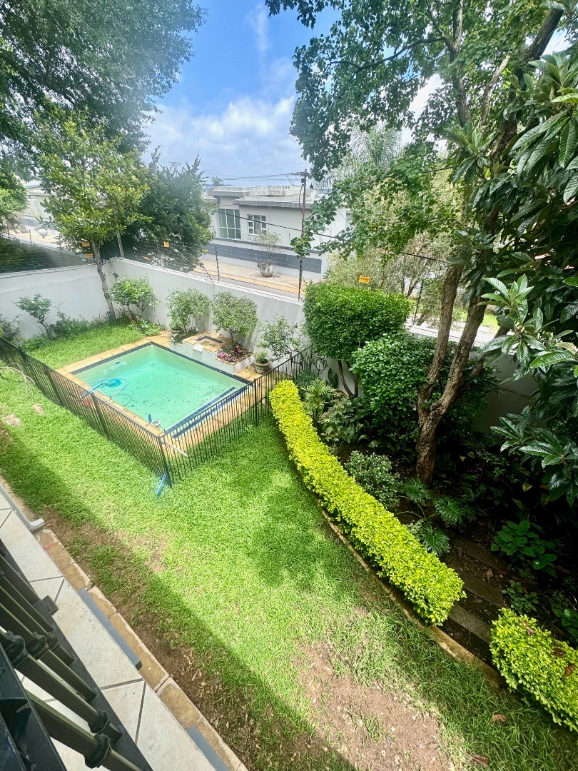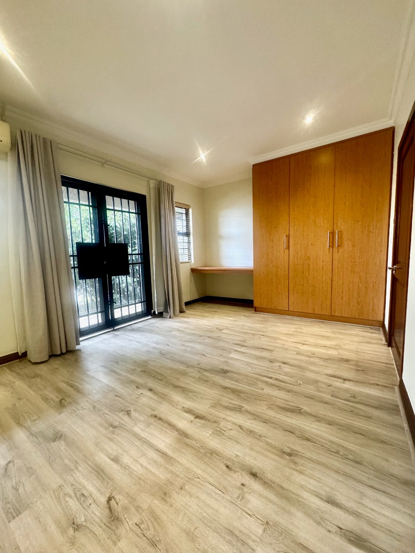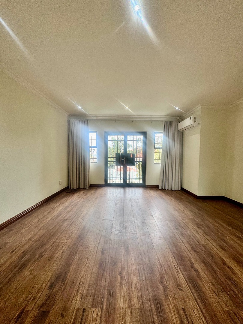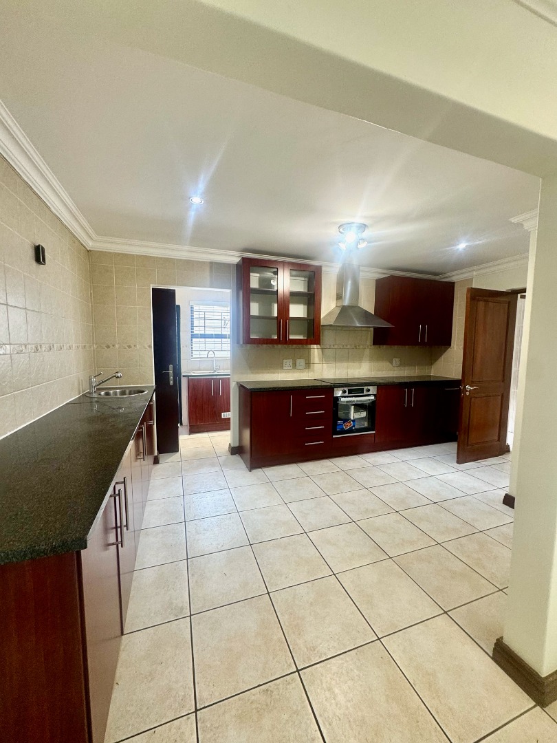 Discover an unparalleled lifestyle within this exquisite residential rental, nestled in a prestigious security estate in Morningside, Sandton. This unfurnished residence, spanning a generous 327 sqm, offers a canvas for sophisticated living, featuring 3.5 bedrooms (there is an extra room which could be used as fourth bedroom) and 2.5 bathrooms (both bathrooms have baths and showers), including a luxurious en-suite. The expansive layout boasts two elegant lounges, a dedicated dining room, and a family TV room, all designed that fosters seamless flow. The modern kitchen is a culinary delight, equipped with dark wood cabinetry, granite countertops, built-in appliances, and a convenient pantry. Throughout, you'll find a harmonious blend of tiled and wood-look laminate flooring, complemented by recessed lighting, air conditioning, and refined crown molding, ensuring comfort and style.