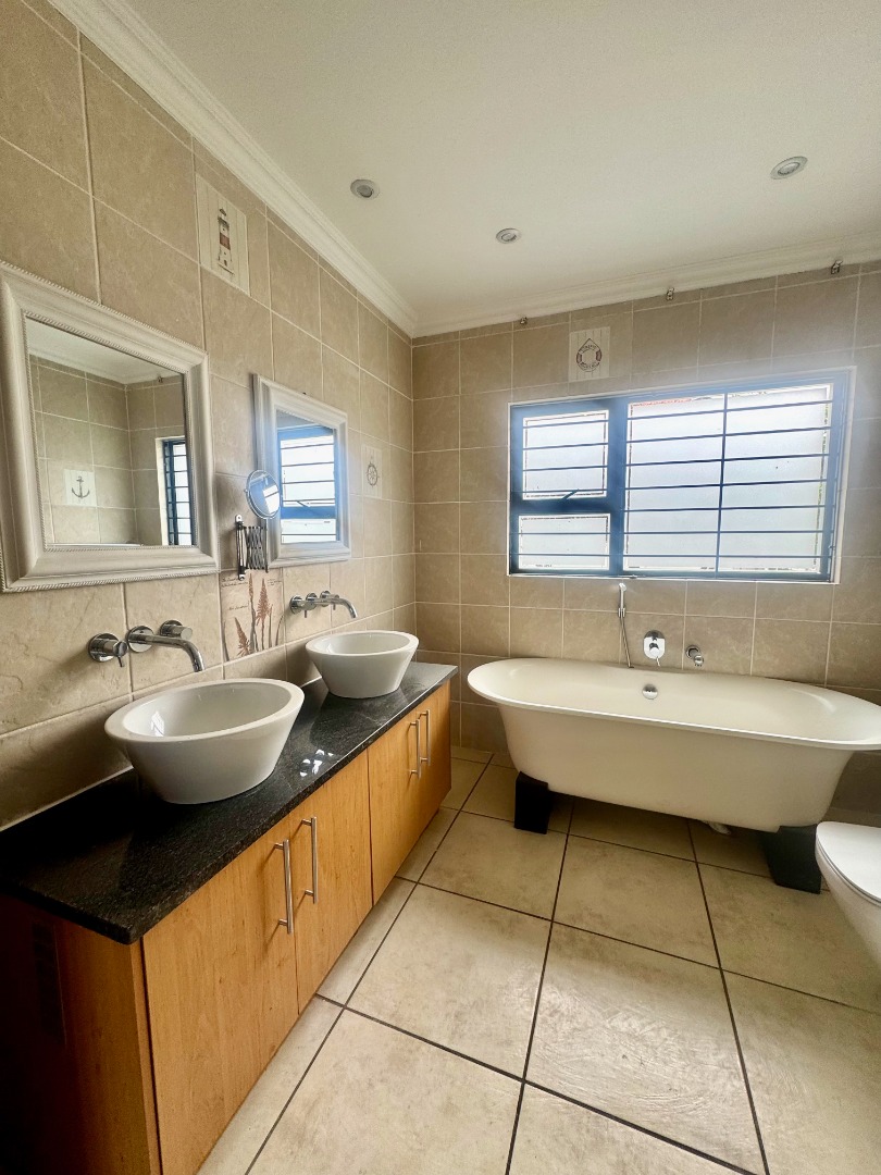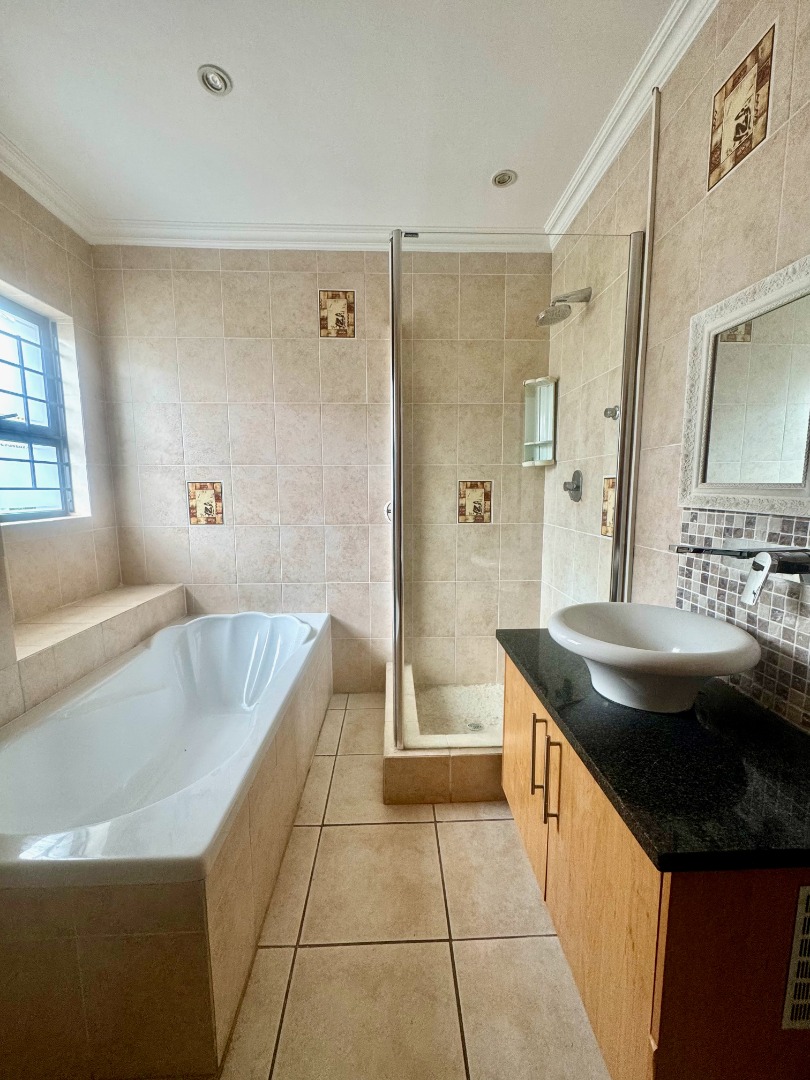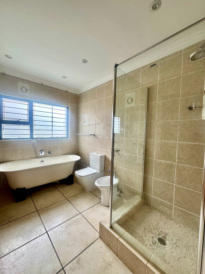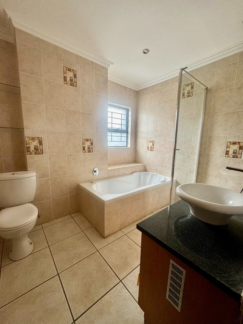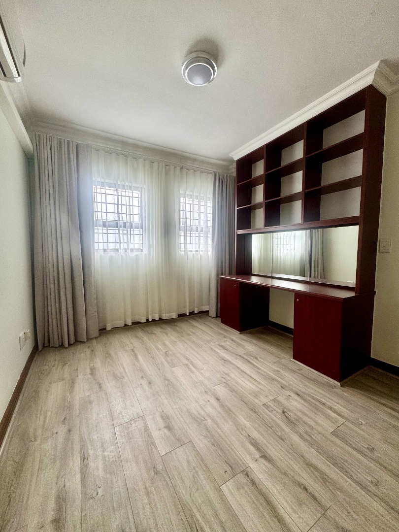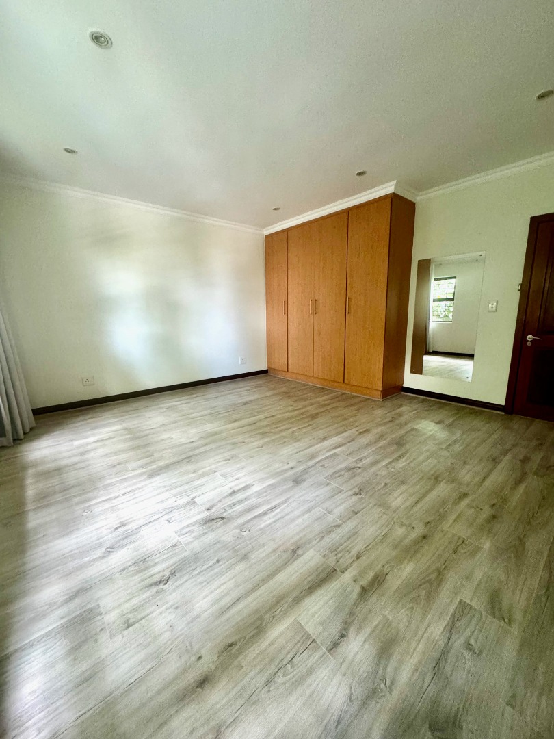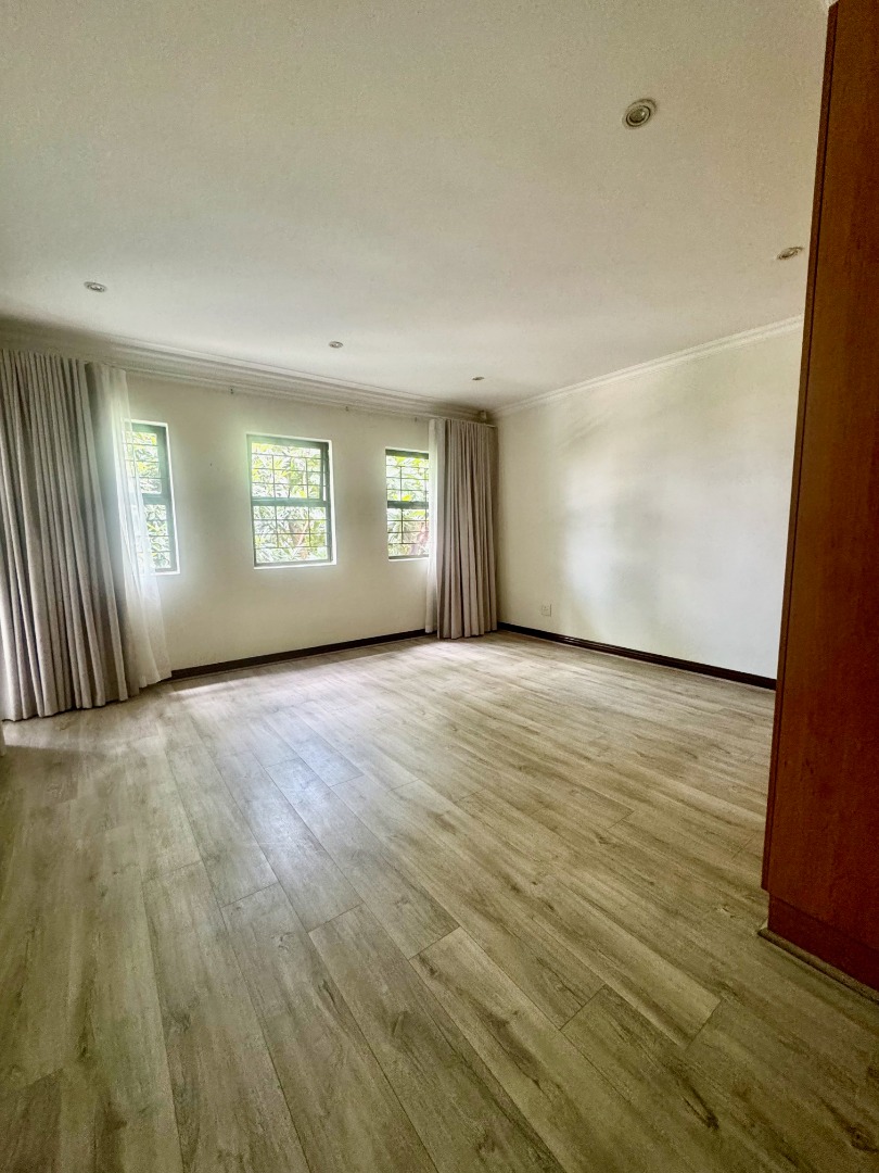 Discover an unparalleled lifestyle within this exquisite residential rental, nestled in a prestigious security estate in Morningside, Sandton. This unfurnished residence, spanning a generous 327 sqm, offers a canvas for sophisticated living, featuring 3.5 bedrooms (there is an extra room which could be used as fourth bedroom) and 2.5 bathrooms (both bathrooms have baths and showers), including a luxurious en-suite. The expansive layout boasts two elegant lounges, a dedicated dining room, and a family TV room, all designed that fosters seamless flow. The modern kitchen is a culinary delight, equipped with dark wood cabinetry, granite countertops, built-in appliances, and a convenient pantry. Throughout, you'll find a harmonious blend of tiled and wood-look laminate flooring, complemented by recessed lighting, air conditioning, and refined crown molding, ensuring comfort and style.