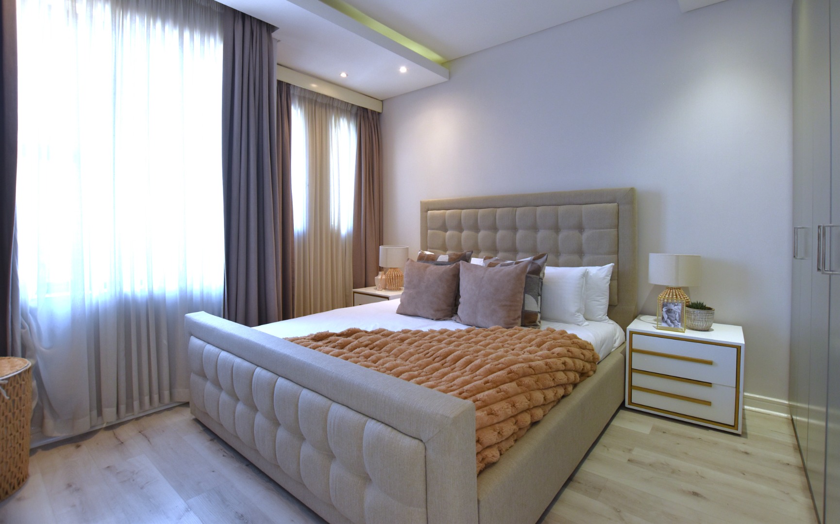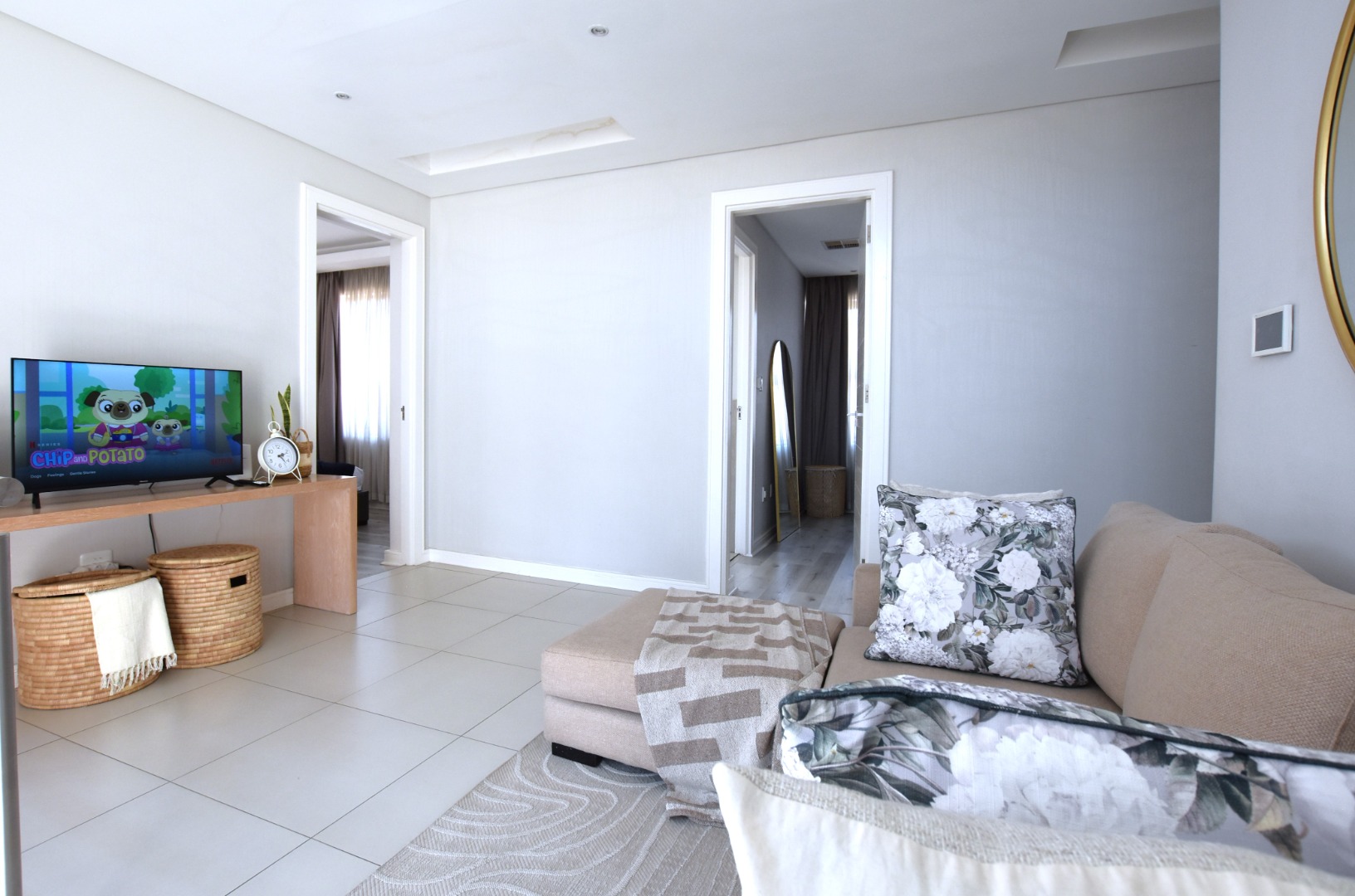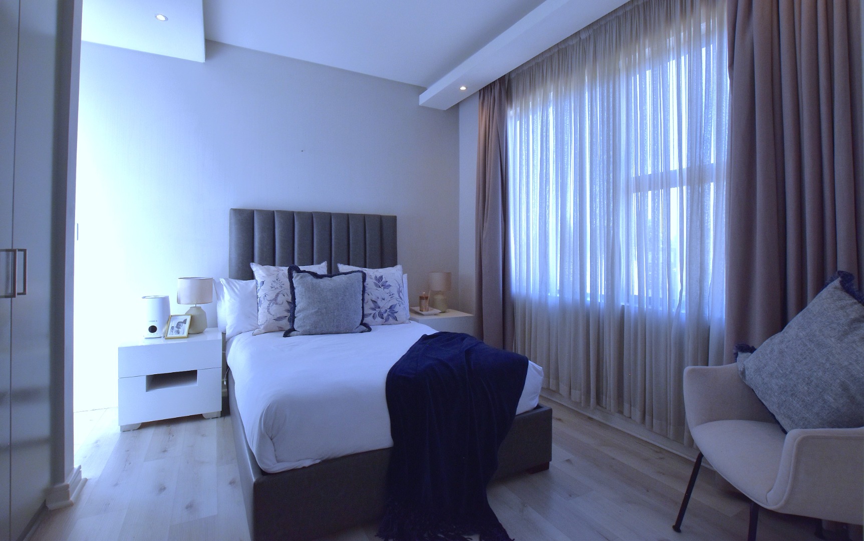 This contemporary 4-bedroom, 5-bathroom residence offers an exceptional rental opportunity in a sought-after Sandton location. Modern, open-plan design that seamlessly integrates living, dining, and kitchen spaces. The sleek kitchen is a highlight, featuring white cabinetry, integrated double ovens, a gas hob, a convenient pantry, and a stylish breakfast bar, all bathed in natural light. Two spacious lounges provide ample room for relaxation and entertainment, complemented by an integrated fireplace and air conditioning.