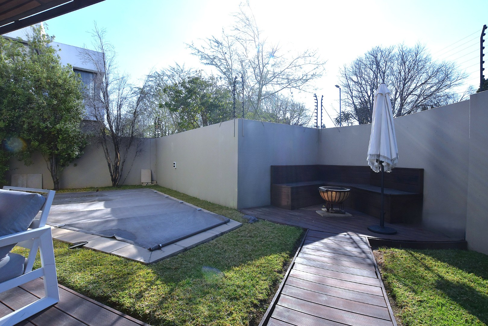 Security is well-addressed with an alarm system and electric fencing, ensuring peace of mind for occupants. The property's prime location in Morningside provides easy access to prominent business hubs, top schools, and a variety of shopping and dining establishments, making it an ideal residential choice.