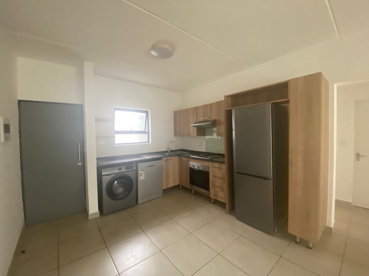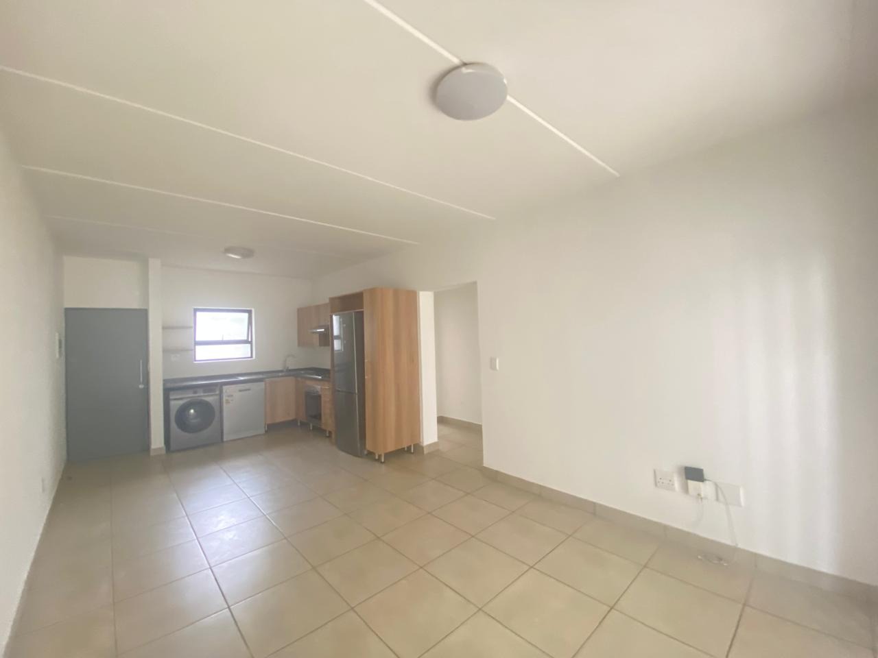 Kitchen is fitted with washing machine, fridge and dishwasher.