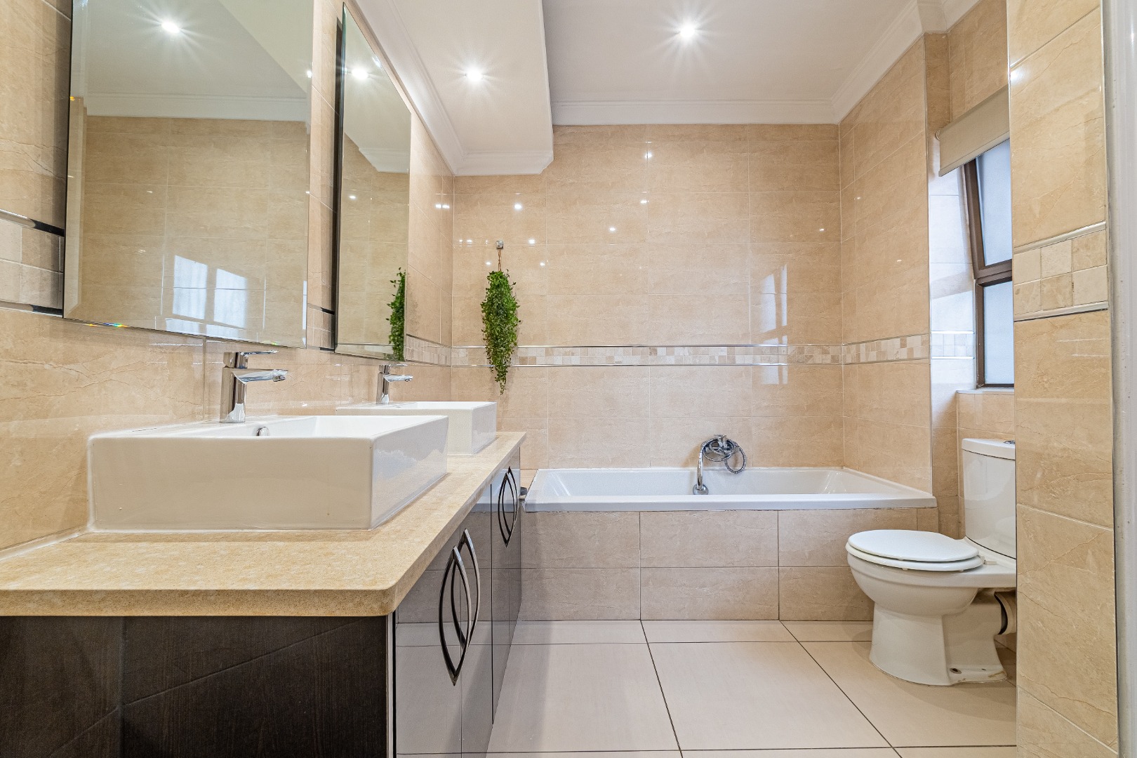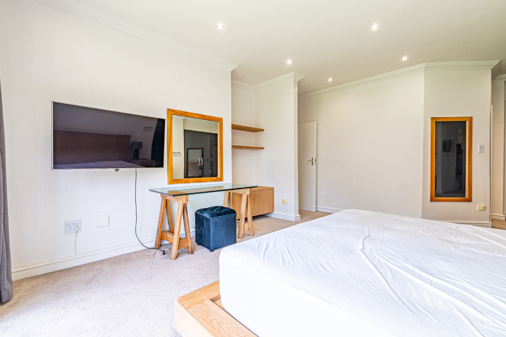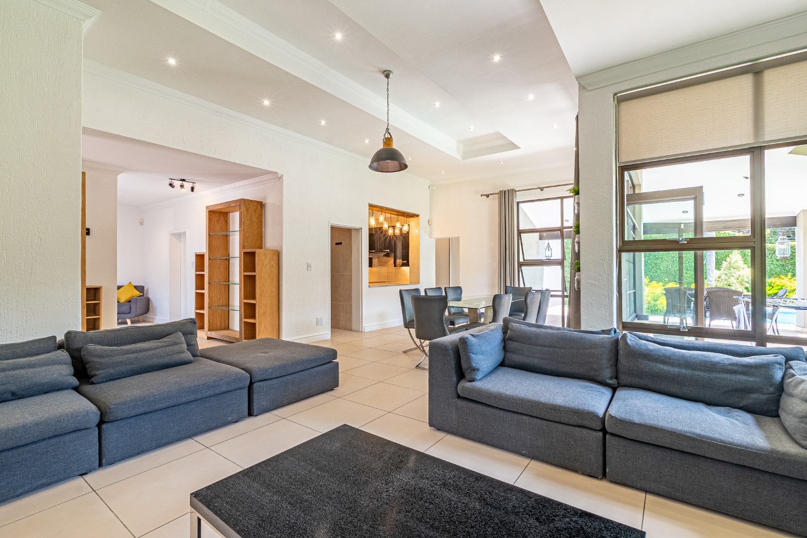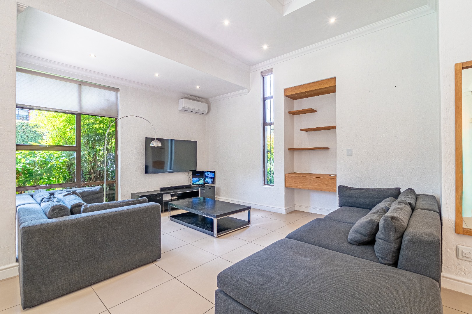 This modern, furnished 3-bedroom, 2.5-bathroom residence in Sandown offers an exceptional rental opportunity. Spanning 276 sqm, the home features a contemporary open-plan layout, seamlessly connecting the lounge, dining room, and a state-of-the-art kitchen. The kitchen boasts sleek glossy black cabinetry, integrated double ovens, a hob, and ample U-shaped countertop space with under-cabinet lighting. Throughout, elegant tiled flooring, a neutral colour palette, create a bright and inviting atmosphere. A dedicated study provides a quiet space for work.