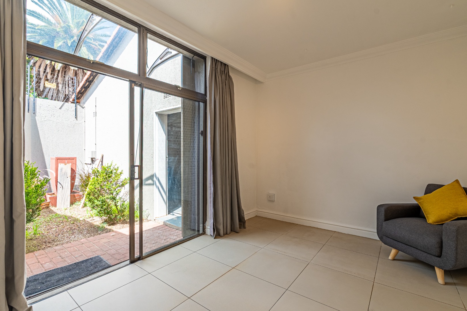 Security is paramount within this complex, offering 24-hour security, a security post, access gate, an alarm system, and a dropdown security gate between the bedrooms and living area, further enhanced by electric fencing and a totally walled perimeter. The home is equipped with modern sustainability features, including solar panels, a battery inverter, and a water tank, ensuring efficiency and reduced utility costs. Fibre connectivity is also available, catering to all digital needs.