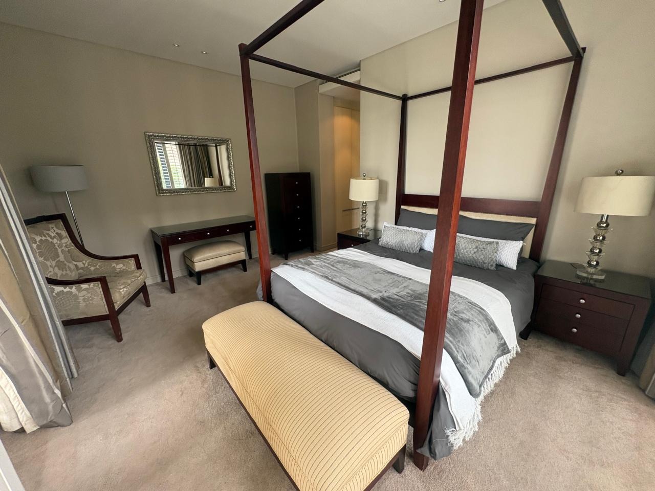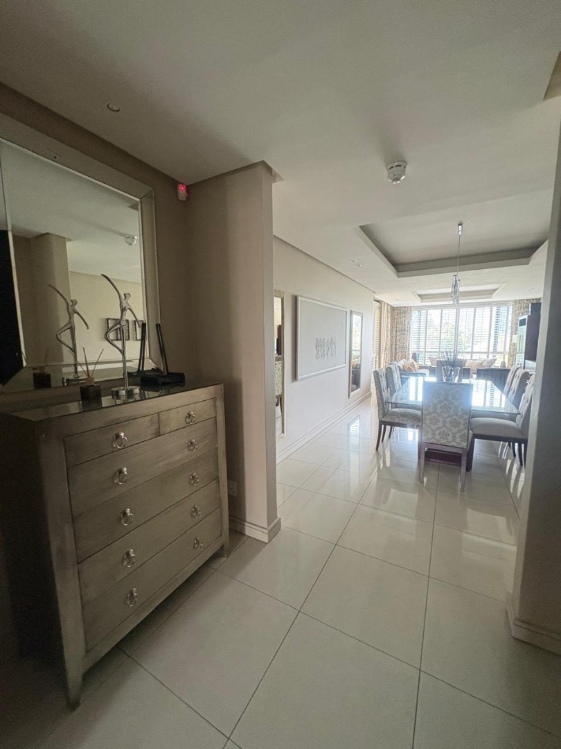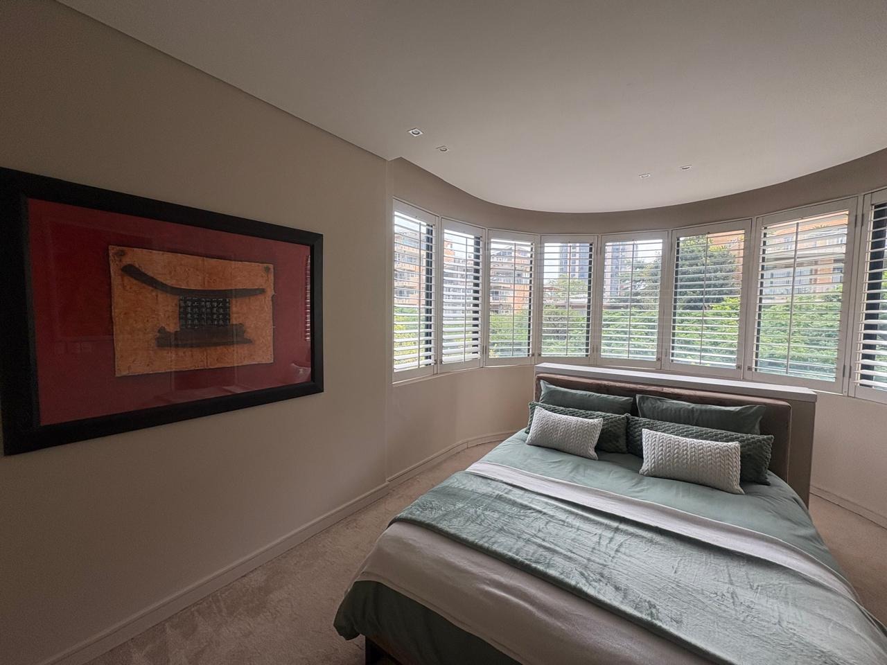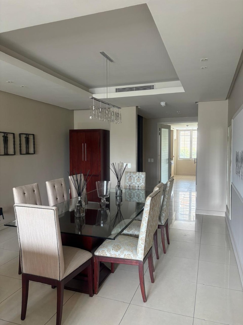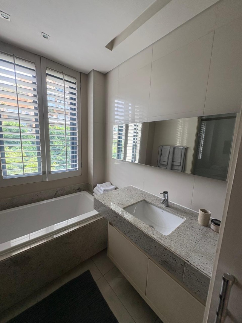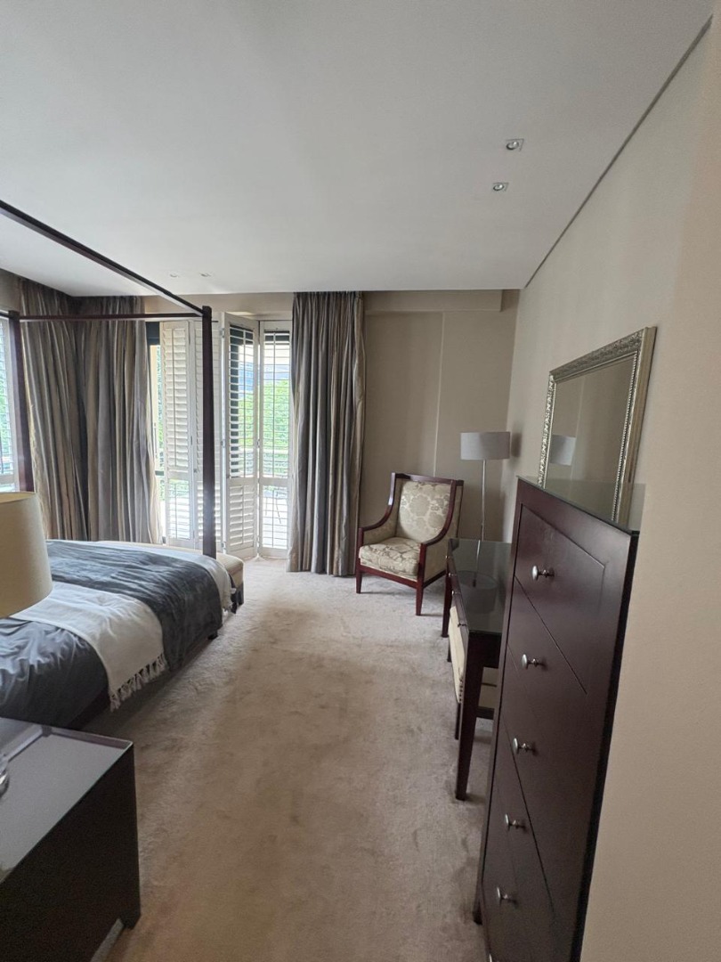 Discover sophisticated living in this spacious 2-bedroom, 2-bathroom apartment, ideally situated in the heart of Sandton Central. Spanning 140 square metres, this fully furnished residence offers a seamless blend of comfort and convenience, perfect for professionals. The open-plan living and dining areas are designed for modern living, featuring elegant tiled flooring, recessed lighting, and large windows adorned with stylish plantation shutters that invite ample natural light.