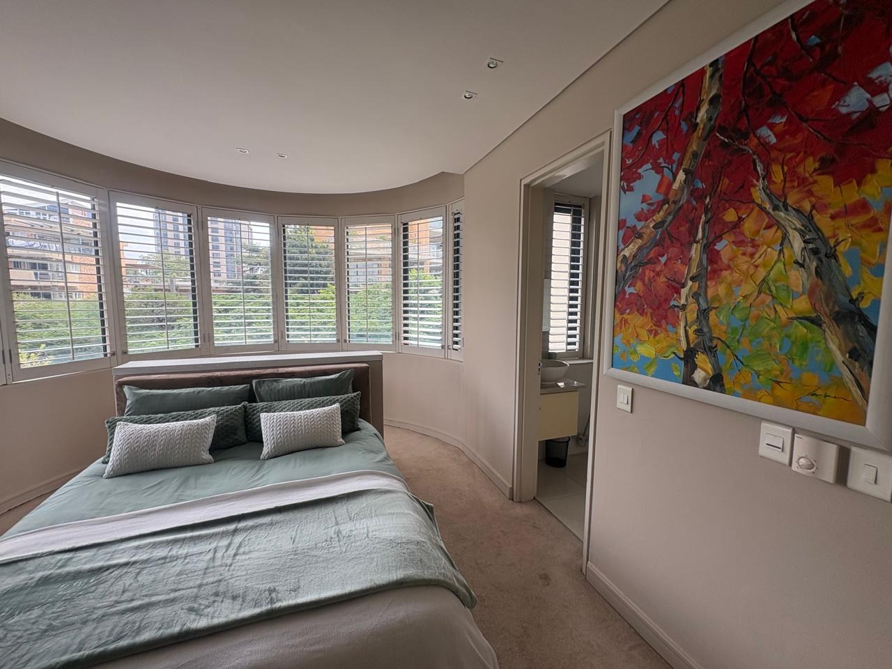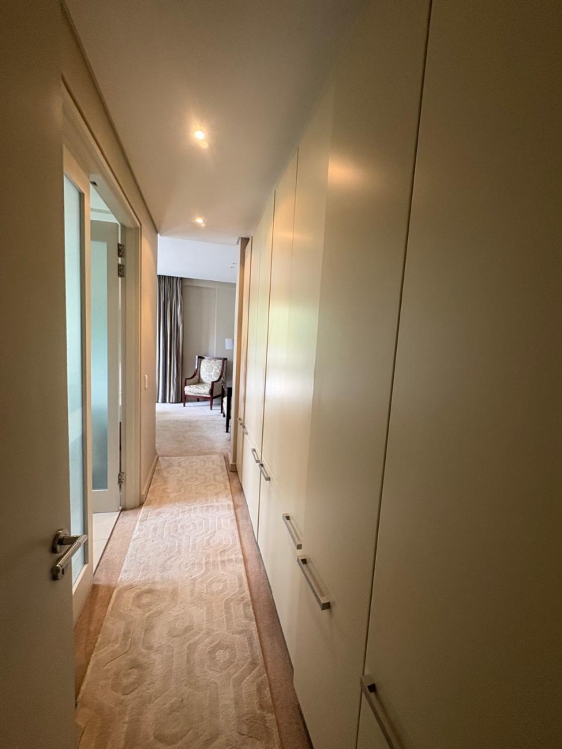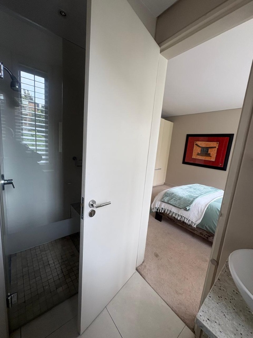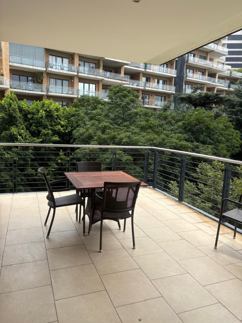 The apartment boasts private balconies, providing scenic views of the lush greenery and the dynamic Sandton skyline, ideal for outdoor relaxation or entertaining. Both bedrooms are generously sized, with one featuring an en-suite bathroom for added privacy and comfort. The thoughtful layout and contemporary finishes throughout ensure a welcoming and functional home environment.