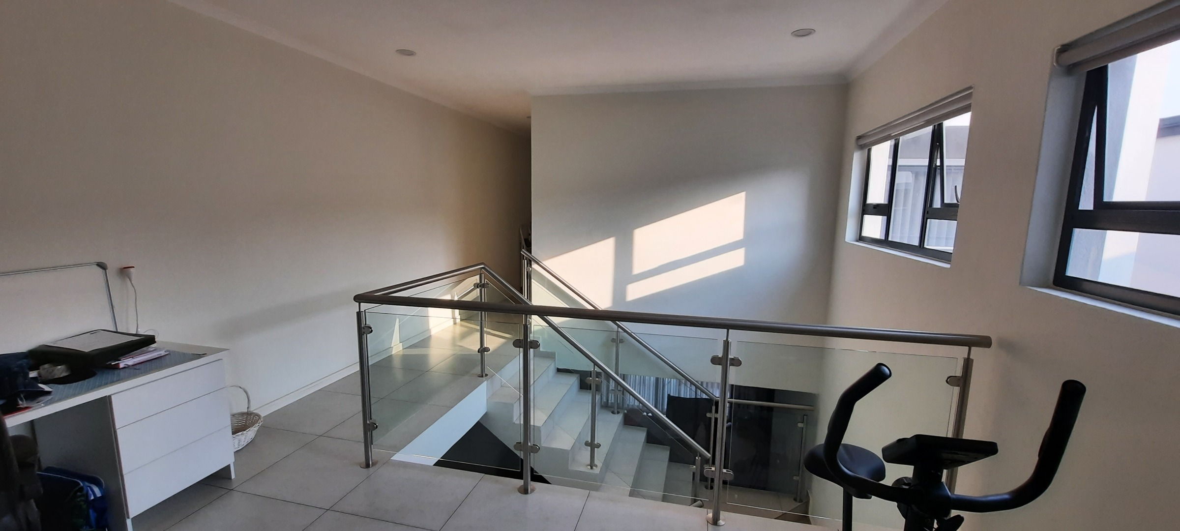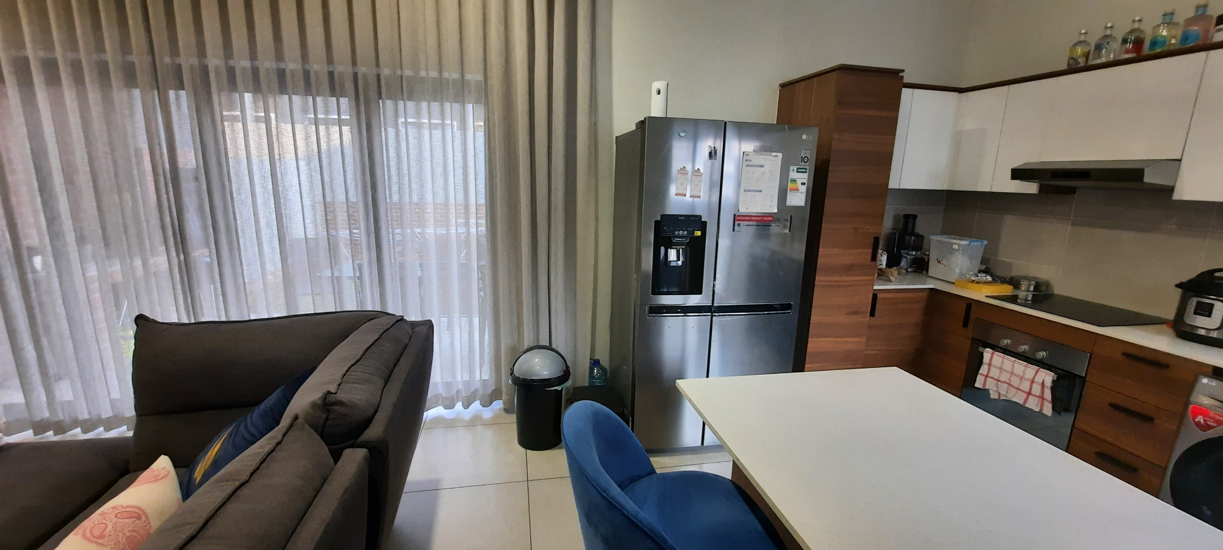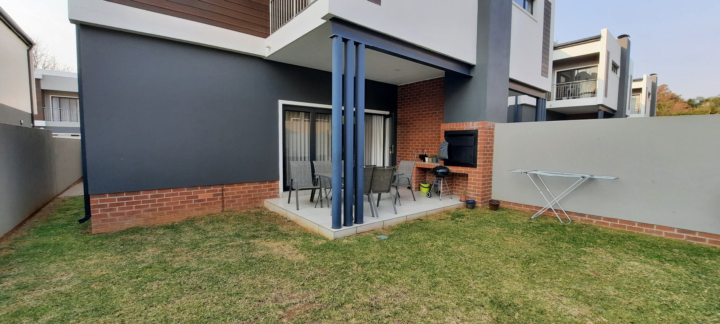 This modern 3-bedroom, 2.5-bathroom townhouse offers comfortable living within a secure complex in Sunninghill, Sandton. The interior boasts a contemporary design with neutral finishes and abundant natural light, creating an inviting atmosphere. The property features two spacious lounges and a dedicated dining room, providing ample space for relaxation and entertaining. A well-appointed kitchen caters to daily needs. A stylish glass and stainless steel staircase enhances the multi-level layout. Ideal for professionals or families seeking a convenient and secure lifestyle, this townhouse offers a practical lock-up-and-go solution. Pets are allowed, making it suitable for those with furry companions. The private covered patio, complete with a built-in braai, extends the living space outdoors, perfect for al fresco dining. A small private garden provides a tranquil retreat, complemented by a communal pool within the complex for residents to enjoy. Situated within a security complex and estate, residents benefit from 24-hour security, ensuring peace of mind. The property is fibre-ready, offering high-speed internet connectivity essential for modern living and remote work. Visible solar water heaters on the exterior suggest a commitment to energy efficiency, potentially contributing to lower utility costs. Sunninghill, Sandton, is a sought-after suburb known for its convenient location and access to major business hubs, shopping centres, and reputable schools. Its position within Sandton provides excellent connectivity to Johannesburg's amenities and transport routes, making it a prime residential choice. Key Features: * 3 Bedrooms, 2.5 Bathrooms * 2 Lounges, 1 Dining Room * Modern Architectural Design * Private Patio with Built-in Braai * Private Garden & Communal Pool * 2 Garages, 2 Parking Spaces * 24-Hour Security Estate * Fibre Connectivity * Pets Allowed