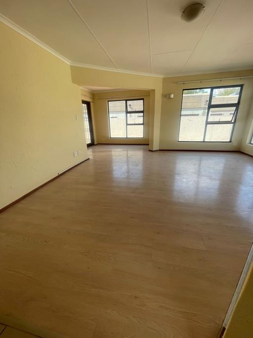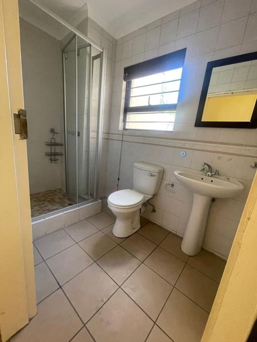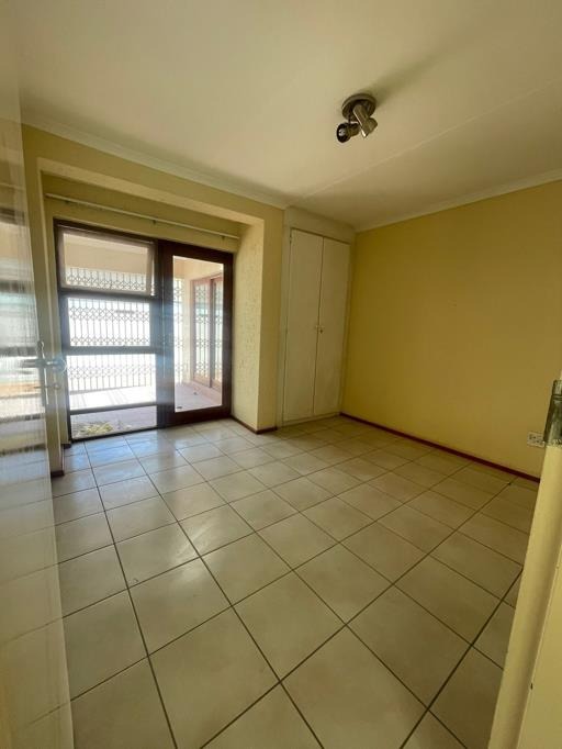 The main bedroom is en-suite and offers generous built-in cupboard space. Two additional bedrooms are well-sized with ample cupboards and share a second bathroom fitted with a shower. All bedrooms and bathrooms are tiled for a neat, low-maintenance finish.