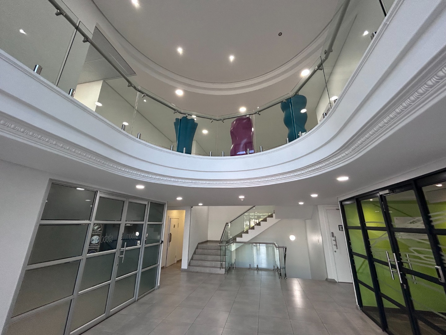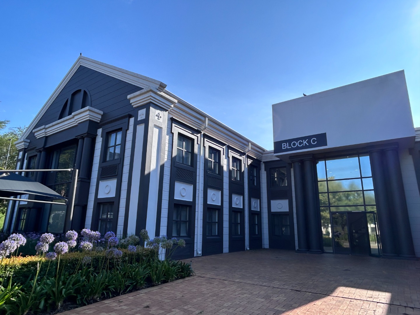Discover prime commercial space in Sunninghill, Sandton, offering 165 sqm of versatile office accommodation. This modern unit presents a clean, unfurnished layout, ready for immediate tenant occupation, ideal for a range of professional services or small to medium-sized businesses. The interior features multiple adaptable office areas, each benefiting from ample natural light, contemporary finishes, wall-mounted air conditioning units, and recessed lighting, providing a productive workspace. The property boasts a striking, well-maintained exterior with classical architectural details and attractive landscaping, creating an inviting first impression.