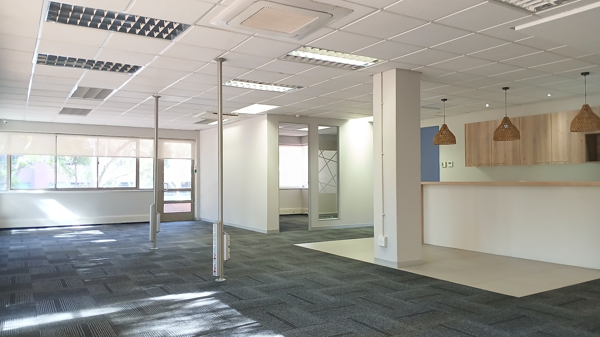 - Multiple private offices + open-plan workspace