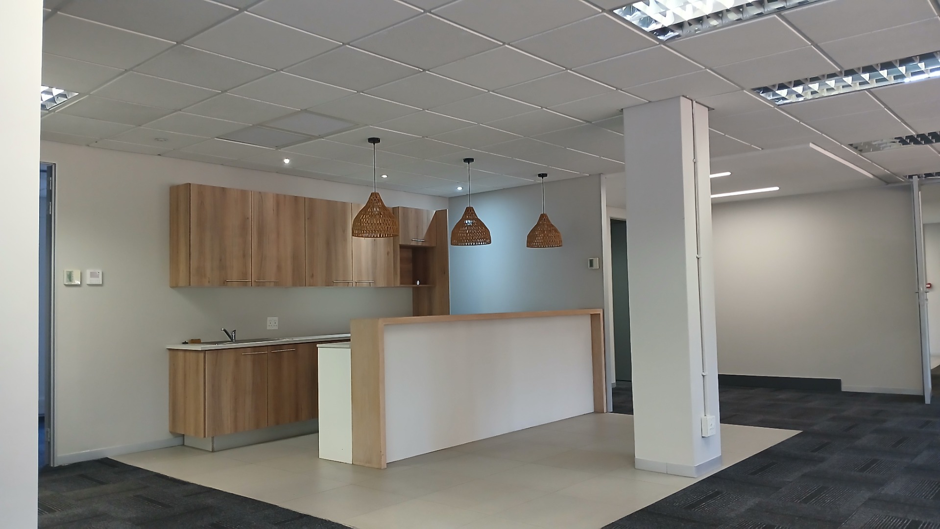 The unit includes a neat kitchenette and is tiled throughout, creating a clean, professional atmosphere. Set within a lush, landscaped office park, it offers a peaceful yet productive setting.