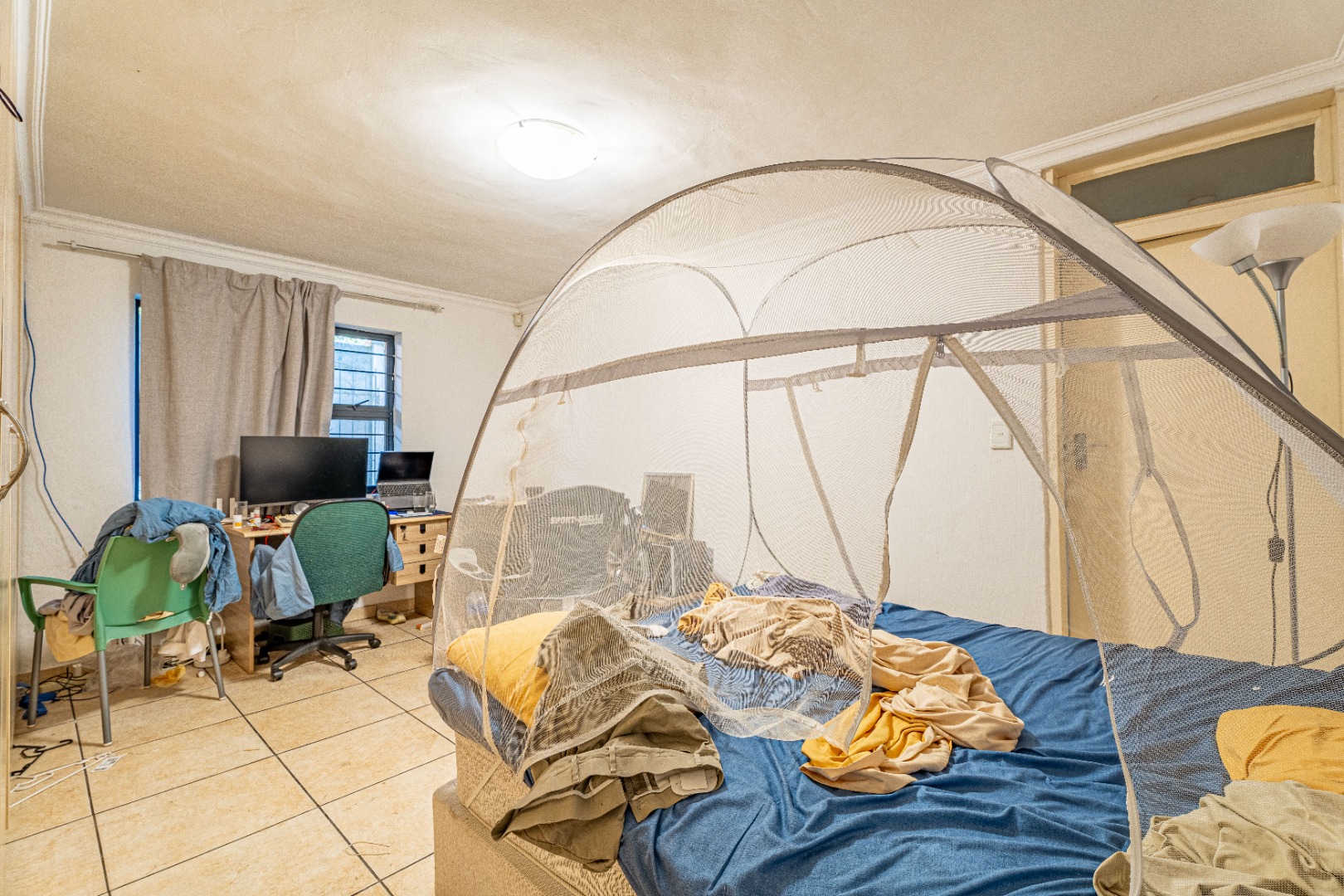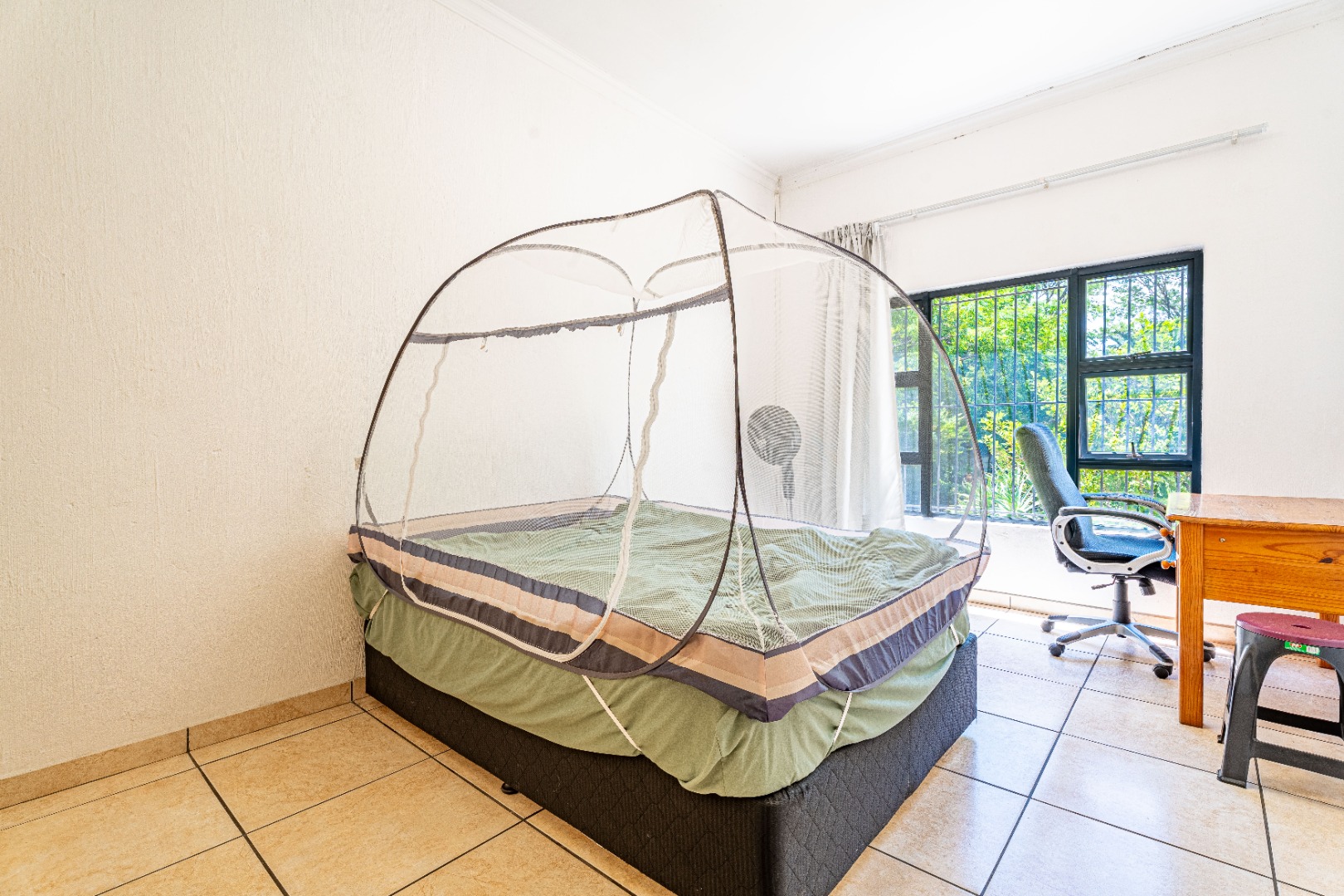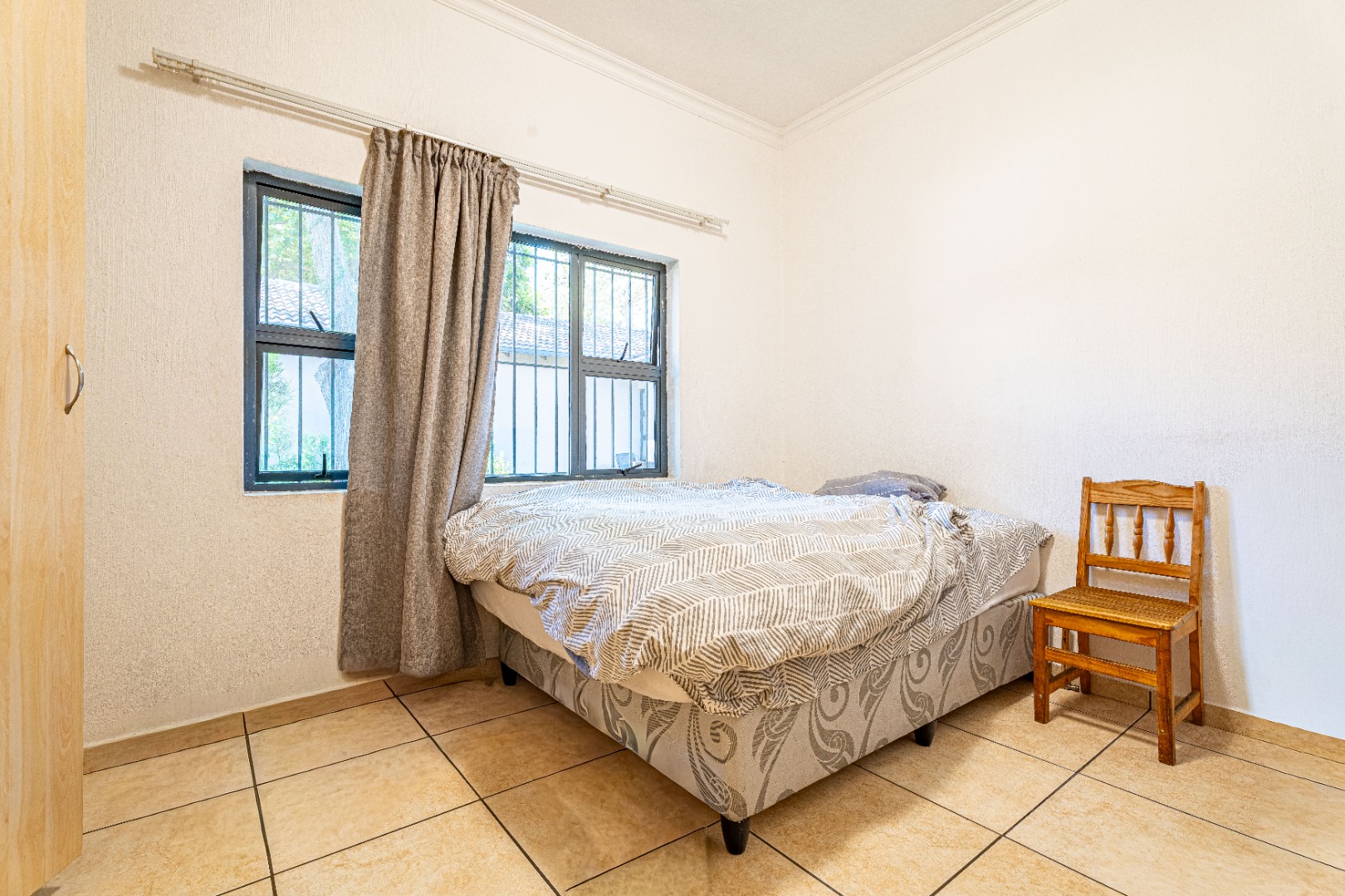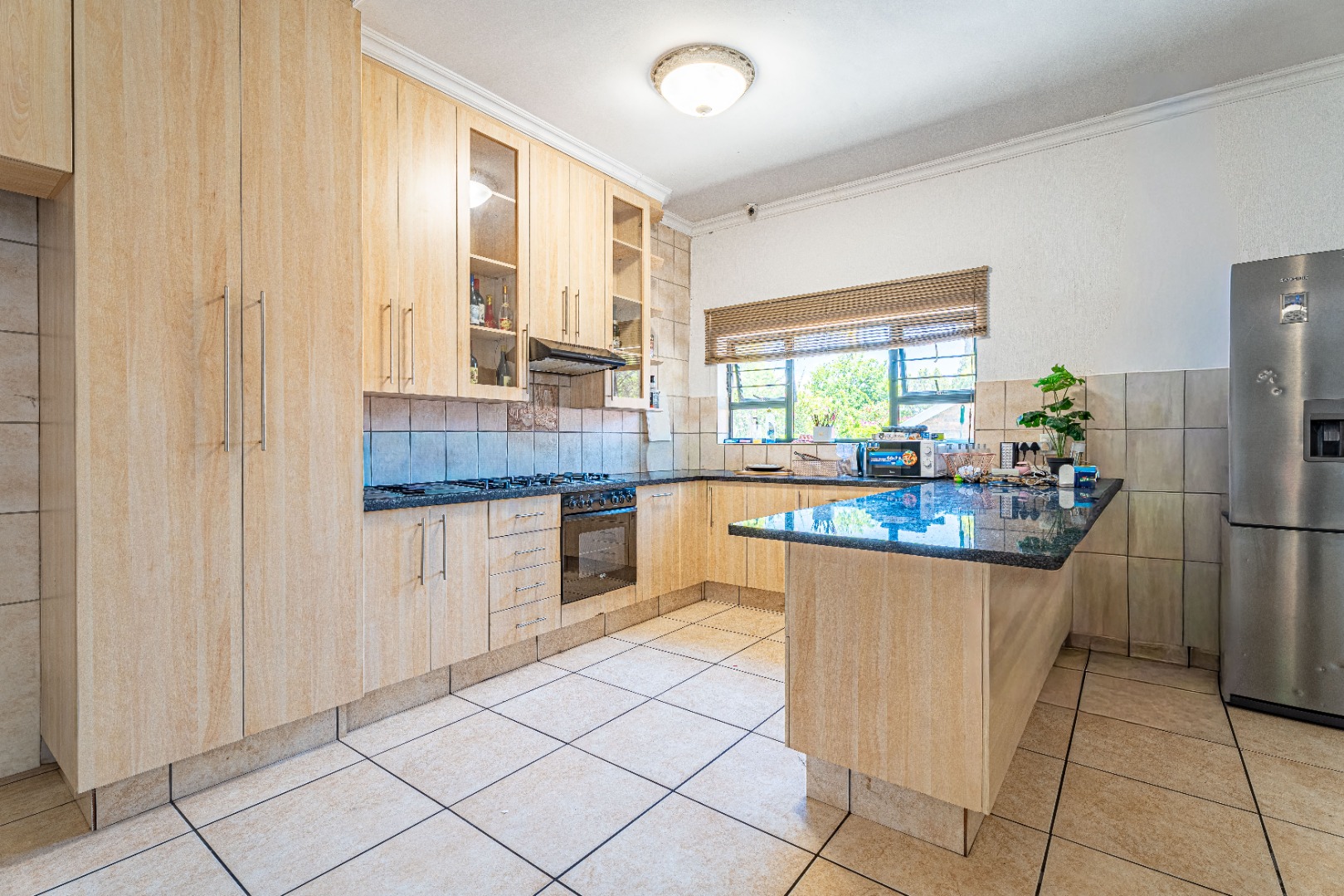 Security is prioritised with an alarm system, electric fencing, and burglar bars, all within a secure gated community located in a peaceful cul-de-sac. Fibre connectivity is available, ensuring modern convenience. Woodmead offers a desirable lifestyle with excellent access to amenities and major routes in Sandton.