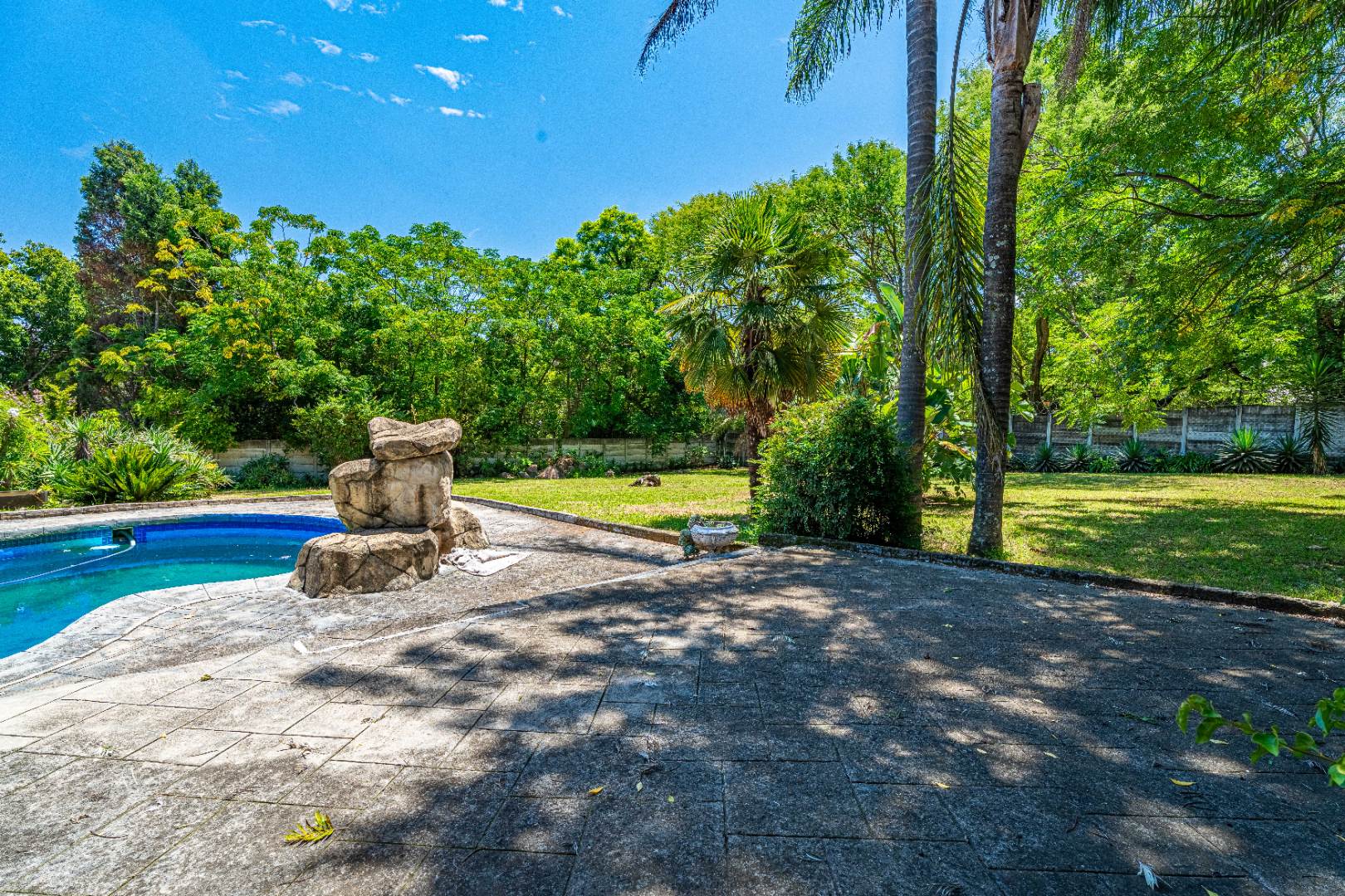 The outdoor area is a true highlight, featuring a lush, well-maintained garden with mature trees providing natural shade and privacy. A sparkling swimming pool with unique rock features creates an inviting oasis, complemented by a spacious paved patio perfect for outdoor gatherings. The property is pet-friendly, allowing your furry companions to enjoy the expansive yard.
