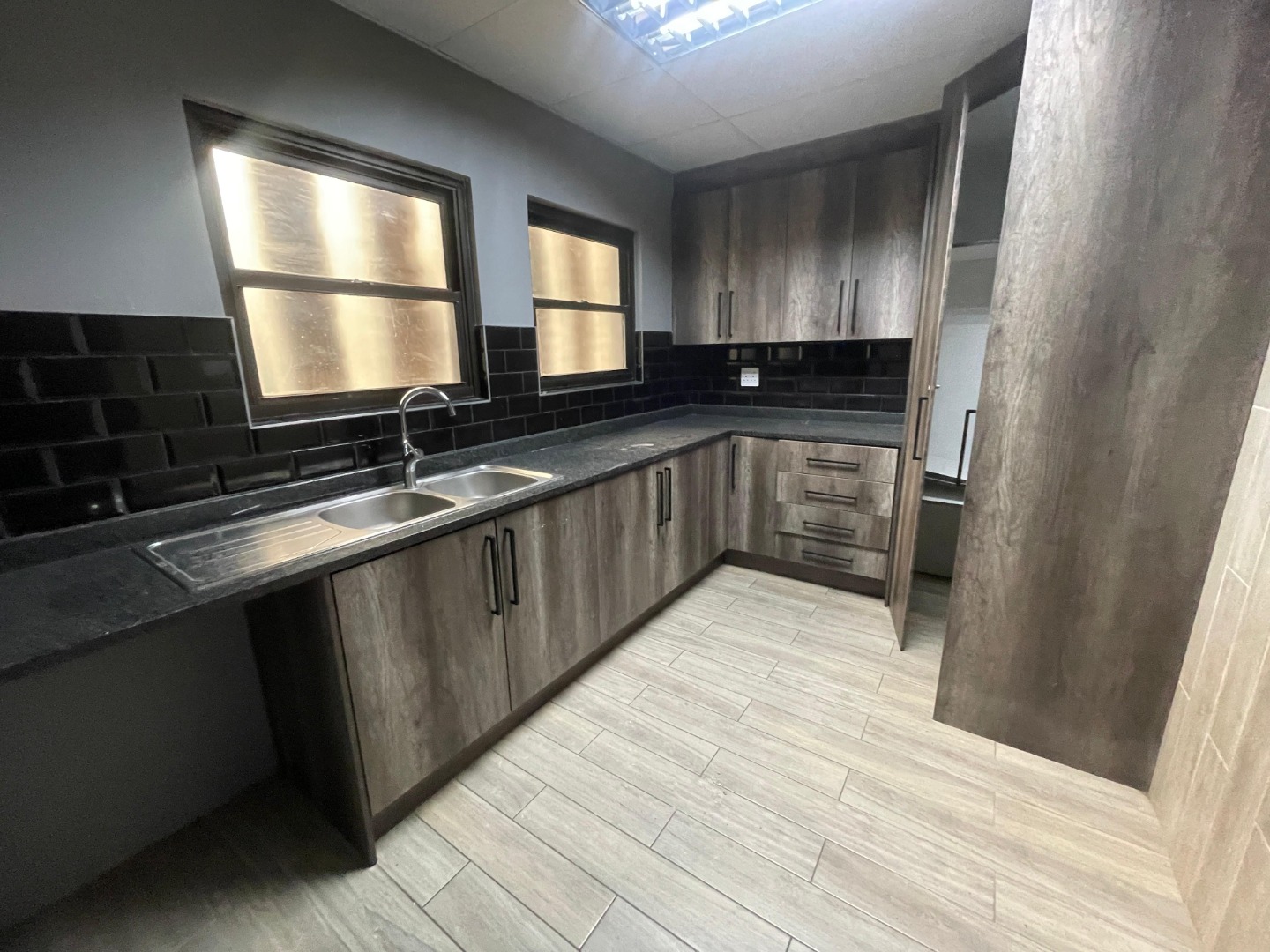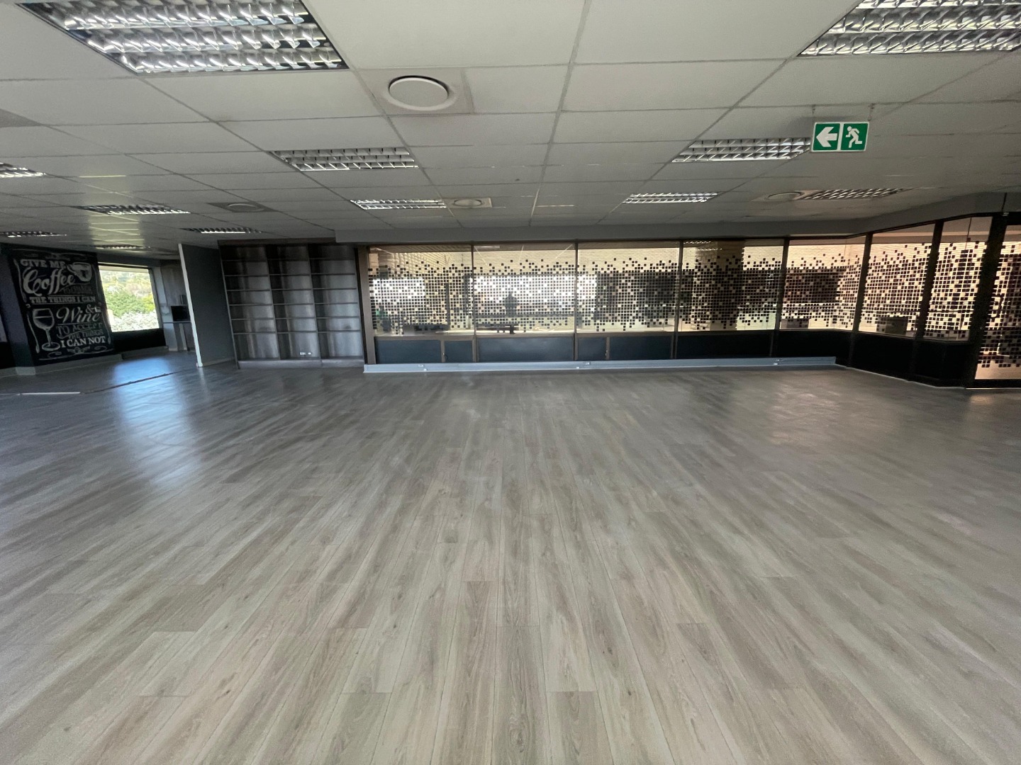 This office includes two modern kitchen units, multiple private office areas, boardroom-ready spaces, and a built-in secure room or walk-in safe for high-value storage or sensitive operations.