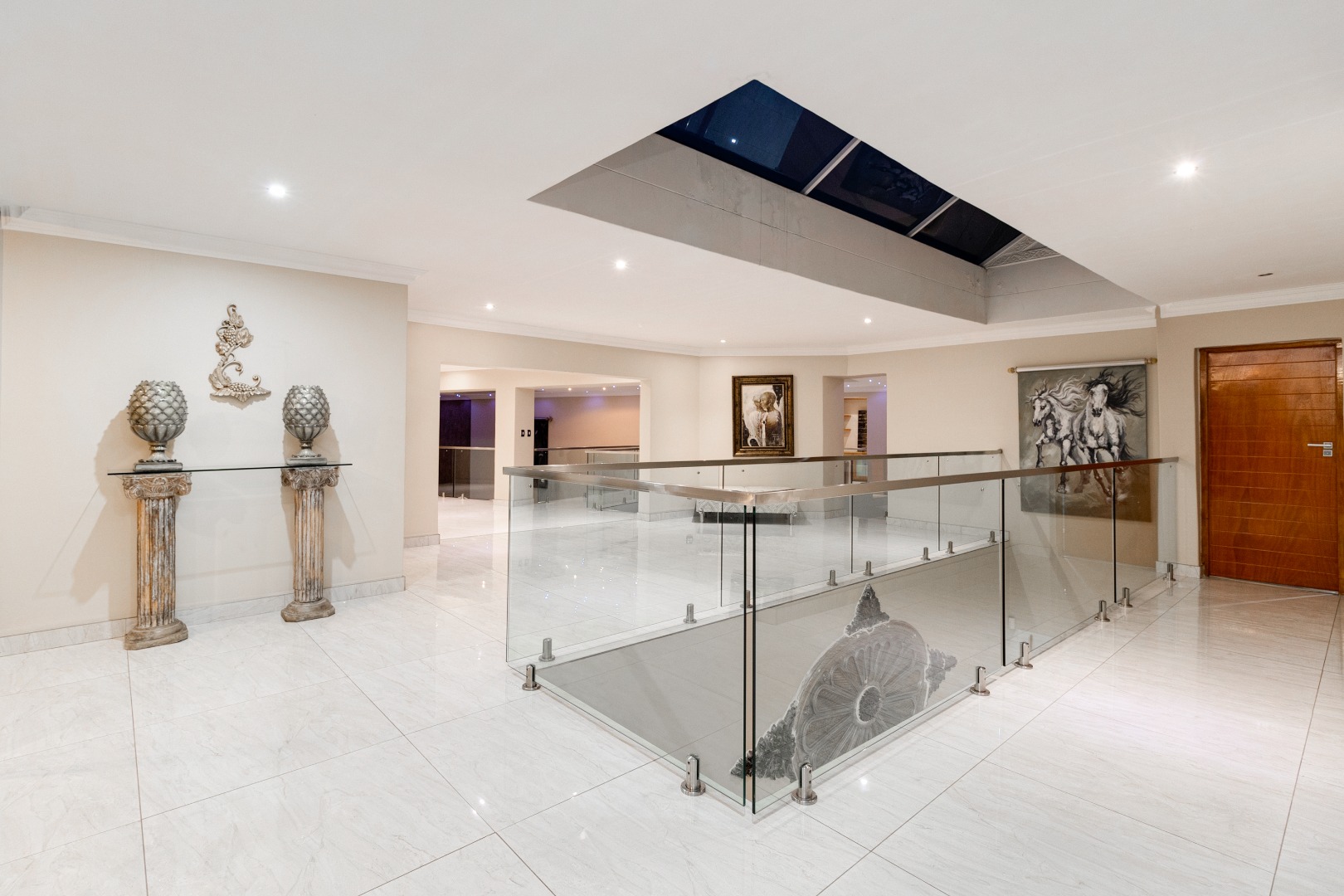 Triple automated garages, sufficient space for 15-20 cars, staff suite, easy access to major highways and close proximity to top schools