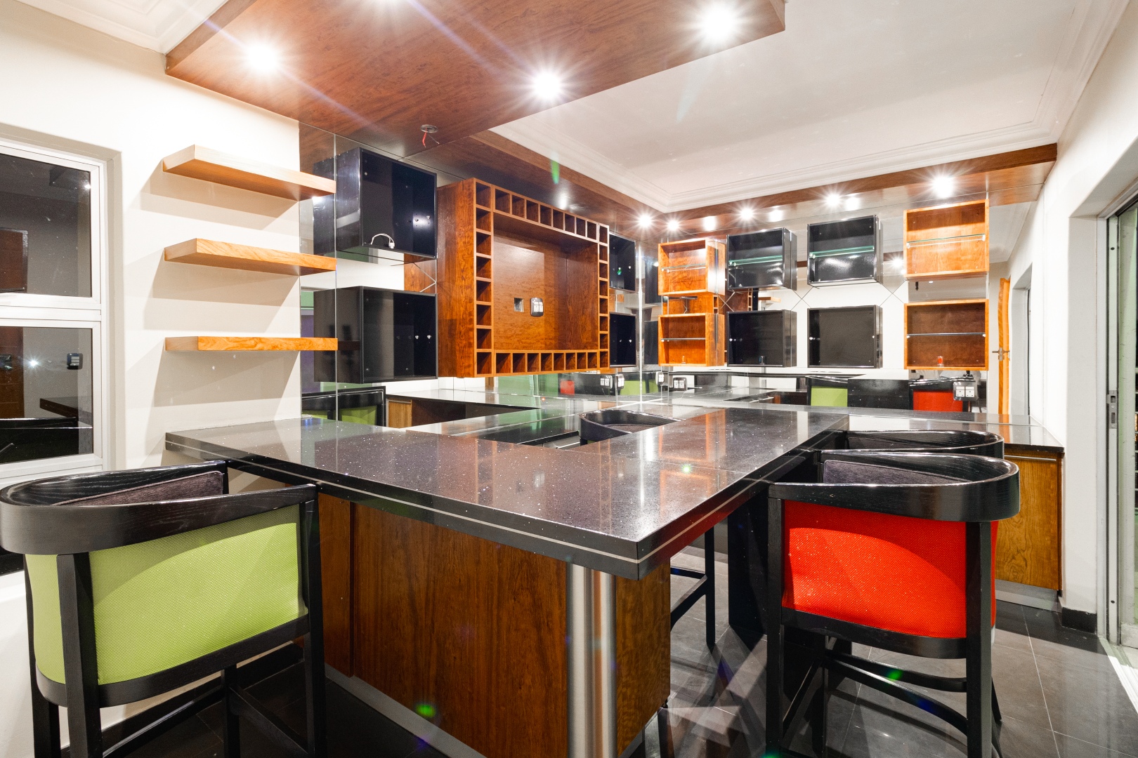 The mansion boasts a sophisticated bar area, meticulously crafted to exude glamour and refinement. Whether mixing signature