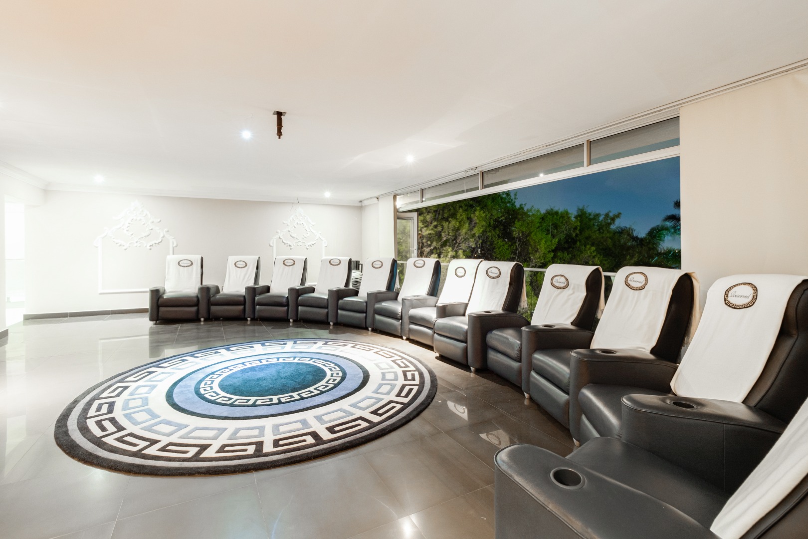 Escape to the ultimate cinematic retreat within the mansion's state-of-the-art cinema room. Immerse yourself in the latest blockbusters or timeless classics, complete with luxurious seating and cutting-edge audiovisual technology.