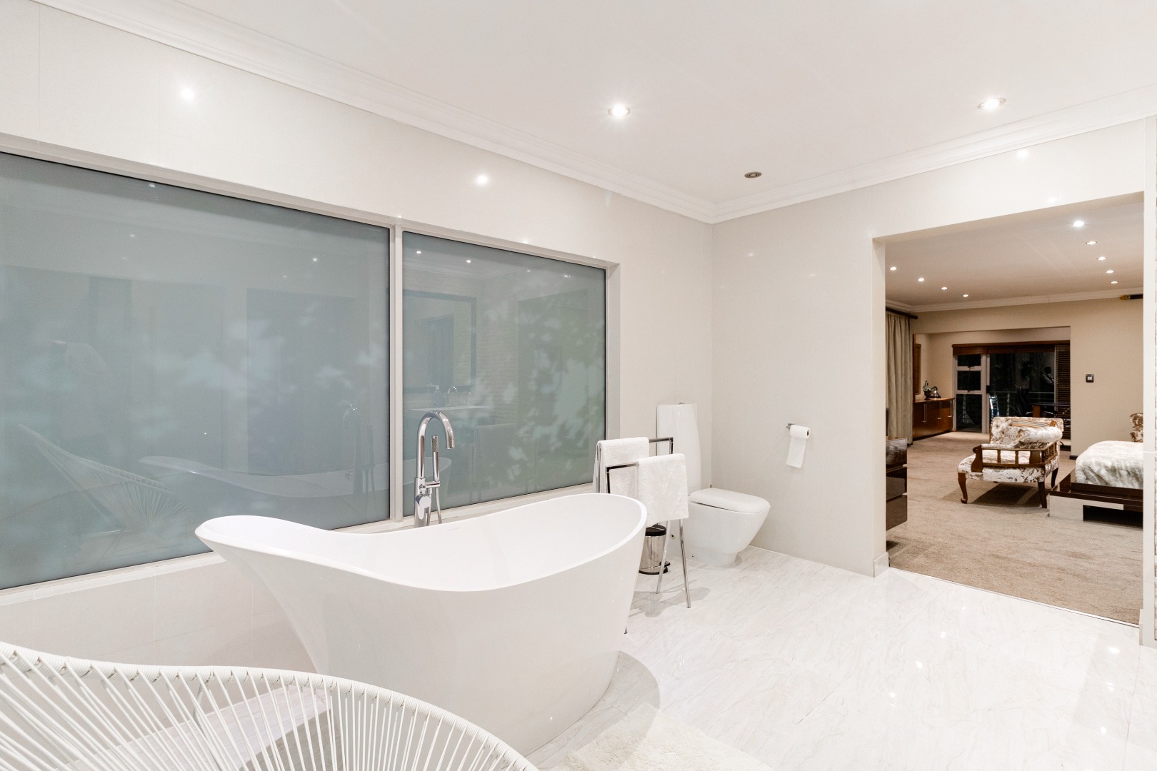 Each of the six bedrooms is a sanctuary of comfort and refinement, offering unparalleled privacy and tranquility. The main bedroom stands out as a luxurious retreat, boasting expansive dimensions, breathtaking views, and a host of exclusive amenities. The main bedroom is a haven of indulgence, featuring a spacious layout that encompasses a private office, walk-in closet, and a decadent Victoria Albert bathtub. Designed for ultimate relaxation and rejuvenation, this sanctuary offers a seamless fusion of style and comfort. The six bathrooms are meticulously designed to evoke a sense of serenity and sophistication. Featuring premium fixtures and luxurious amenities, each bathroom offers a spa-like experience.