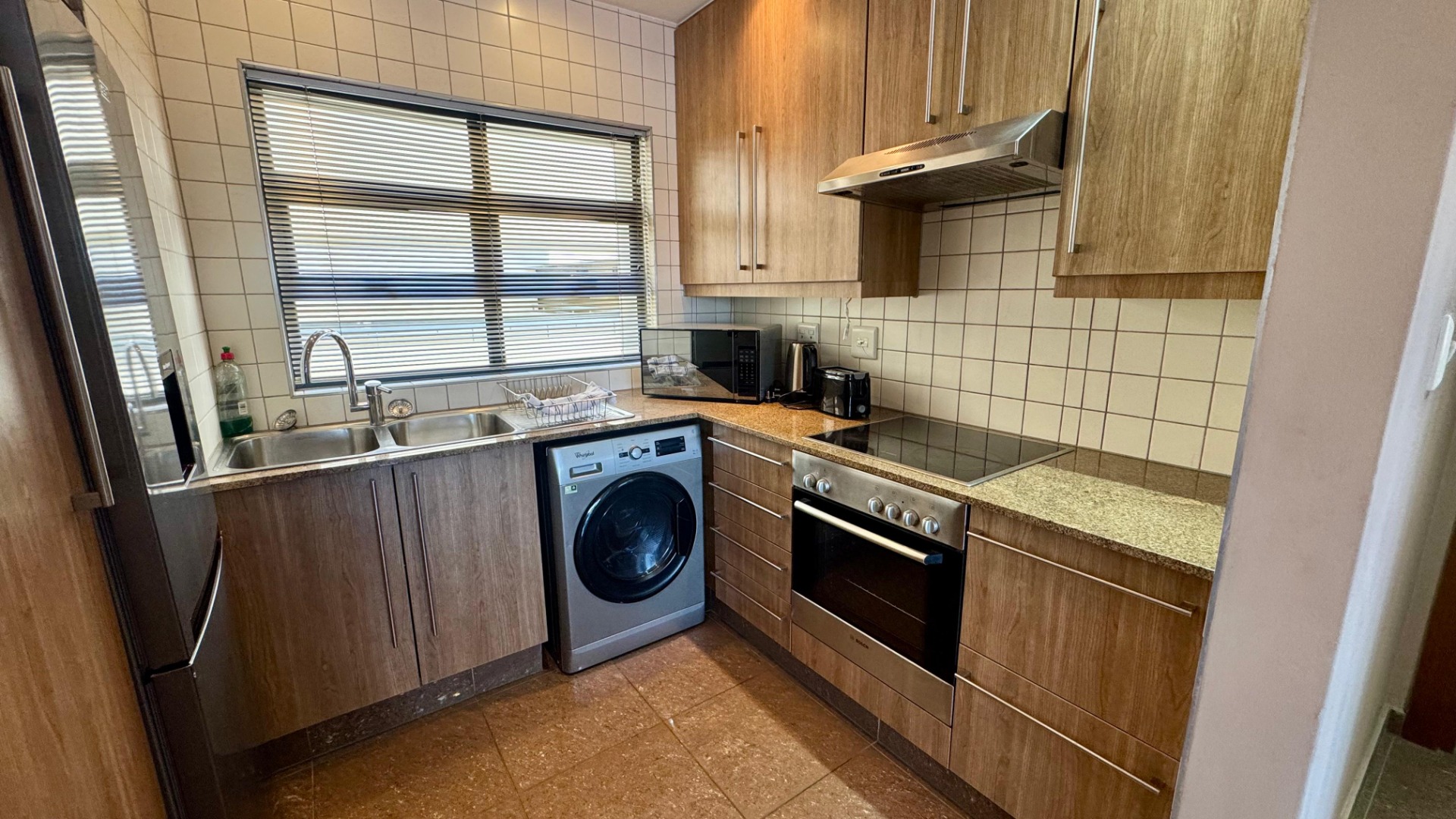 • Stylish, compact kitchen with granite countertops and ample storage