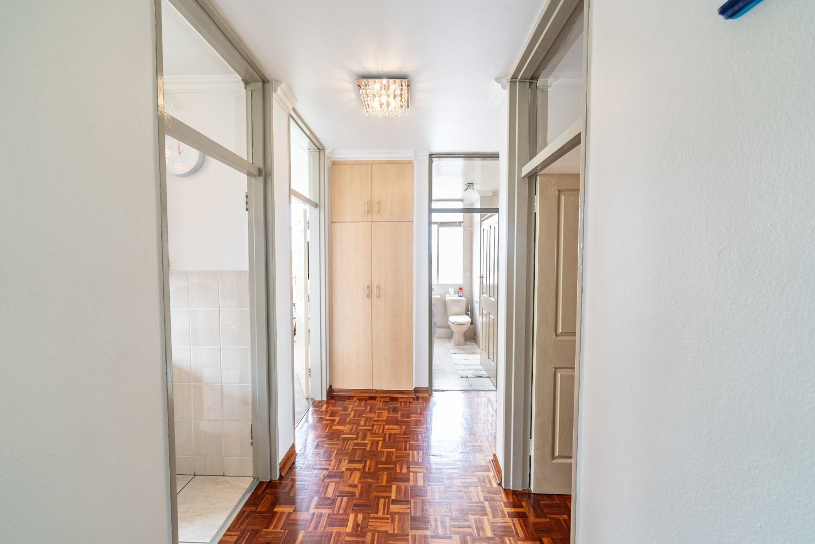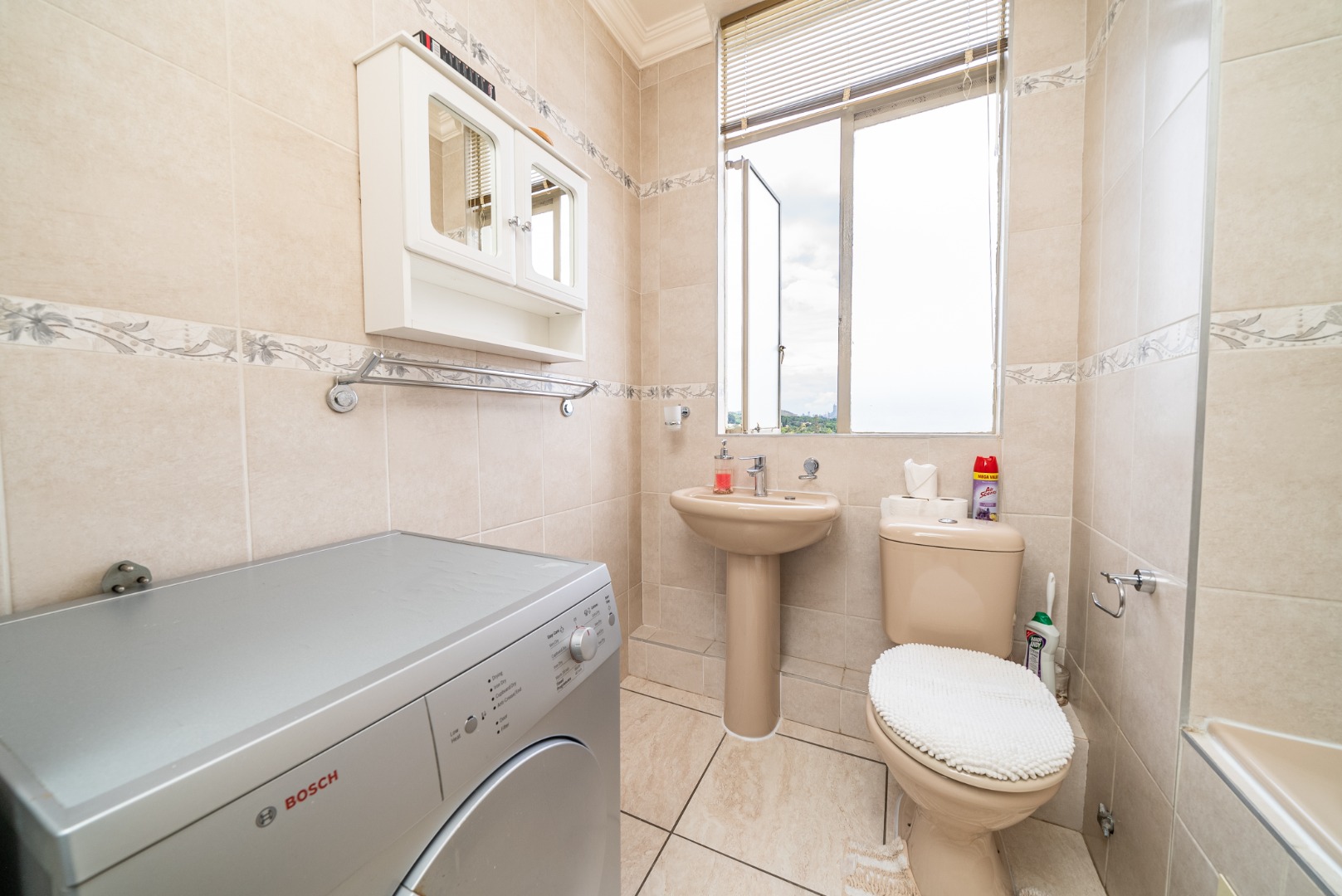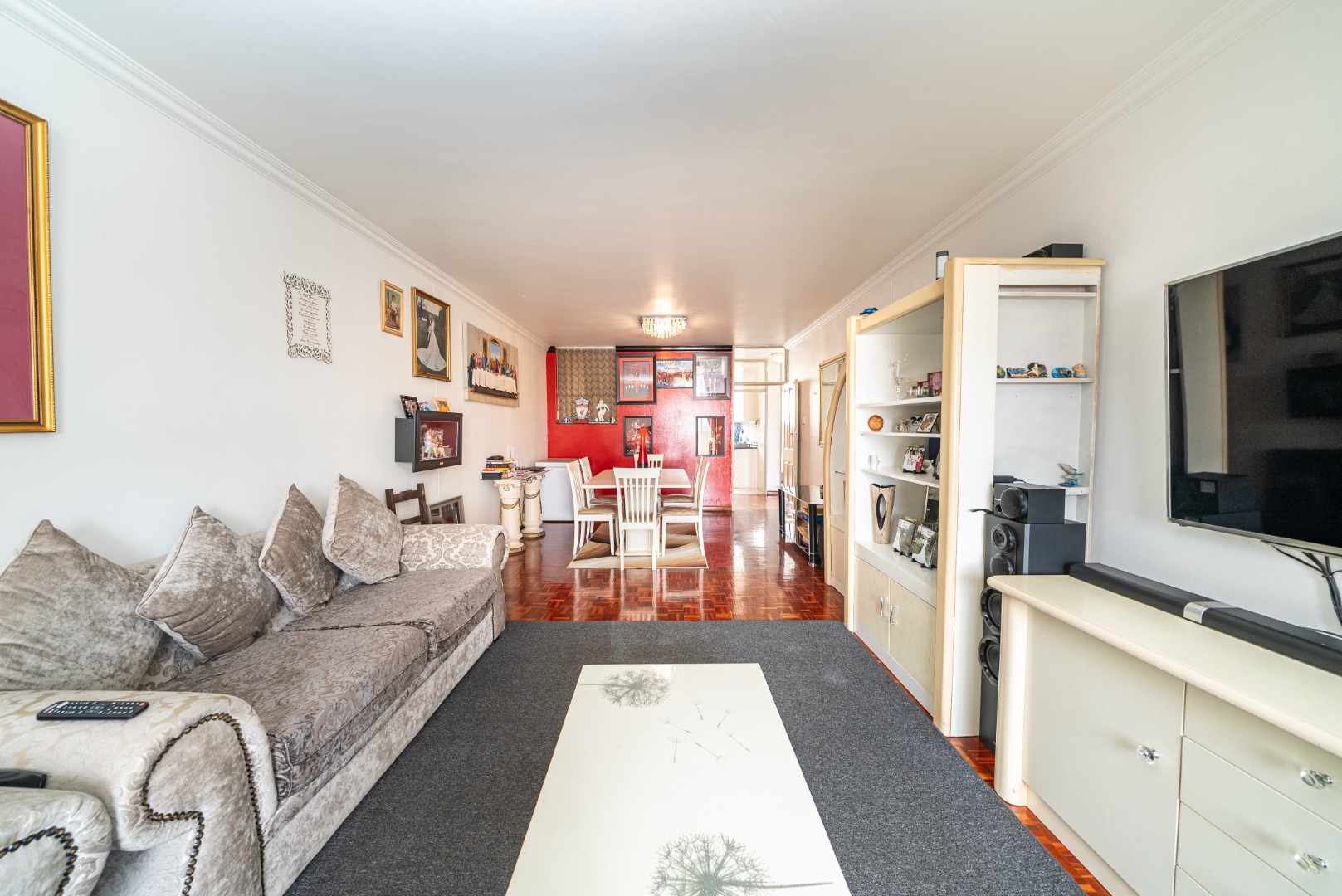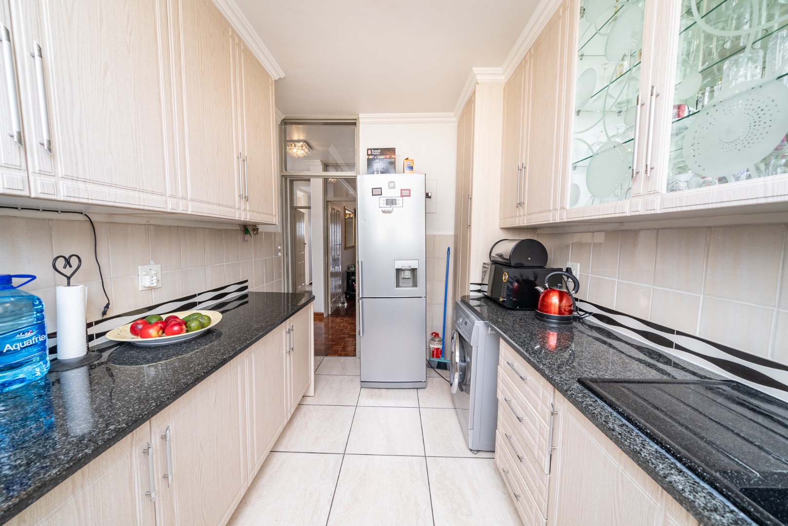 Discover this inviting 2.5-bedroom, 2-bathroom residence situated within a secure complex in the desirable suburban area of Bedford Gardens, Bedfordview. This property offers a comfortable and functional living space, ideal for individuals or small families seeking convenience and security. The interior features an open-plan living and dining area, characterized by warm parquet flooring and elegant crown molding, creating a welcoming atmosphere. Large windows ensure ample natural light throughout the main living spaces. The functional galley kitchen is equipped with light wood-look cabinetry, durable granite-style countertops, and an integrated washing machine, providing practical solutions for daily living. Accommodation includes 2.5 well-proportioned bedrooms, with the main bedroom benefiting from an en-suite bathroom. All bedrooms feature built-in glossy white wardrobes, offering generous storage solutions. The bathrooms are fully tiled in neutral tones, providing a clean and easy-to-maintain environment, with one featuring a bathtub and shower attachment. Residents of this complex enjoy access to a communal pool, perfect for relaxation and recreation. The property also includes two dedicated parking spaces, adding to the convenience. Security is a priority, with 24-hour security and an access gate ensuring peace of mind within this established community. Bedford Gardens, located in Bedfordview, is a well-regarded suburban neighbourhood known for its accessibility and community feel. It offers a balanced lifestyle with various amenities nearby, making it a sought-after location for residential living. Key Features: * 2.5 Bedrooms, 2 Bathrooms (1 En-suite) * Open-plan Living and Dining Area * Galley Kitchen with Integrated Washing Machine * Warm Parquet Flooring and Crown Molding * Built-in Wardrobes for Ample Storage * Communal Swimming Pool Access * Two Dedicated Parking Spaces * 24-Hour Security and Access Gate