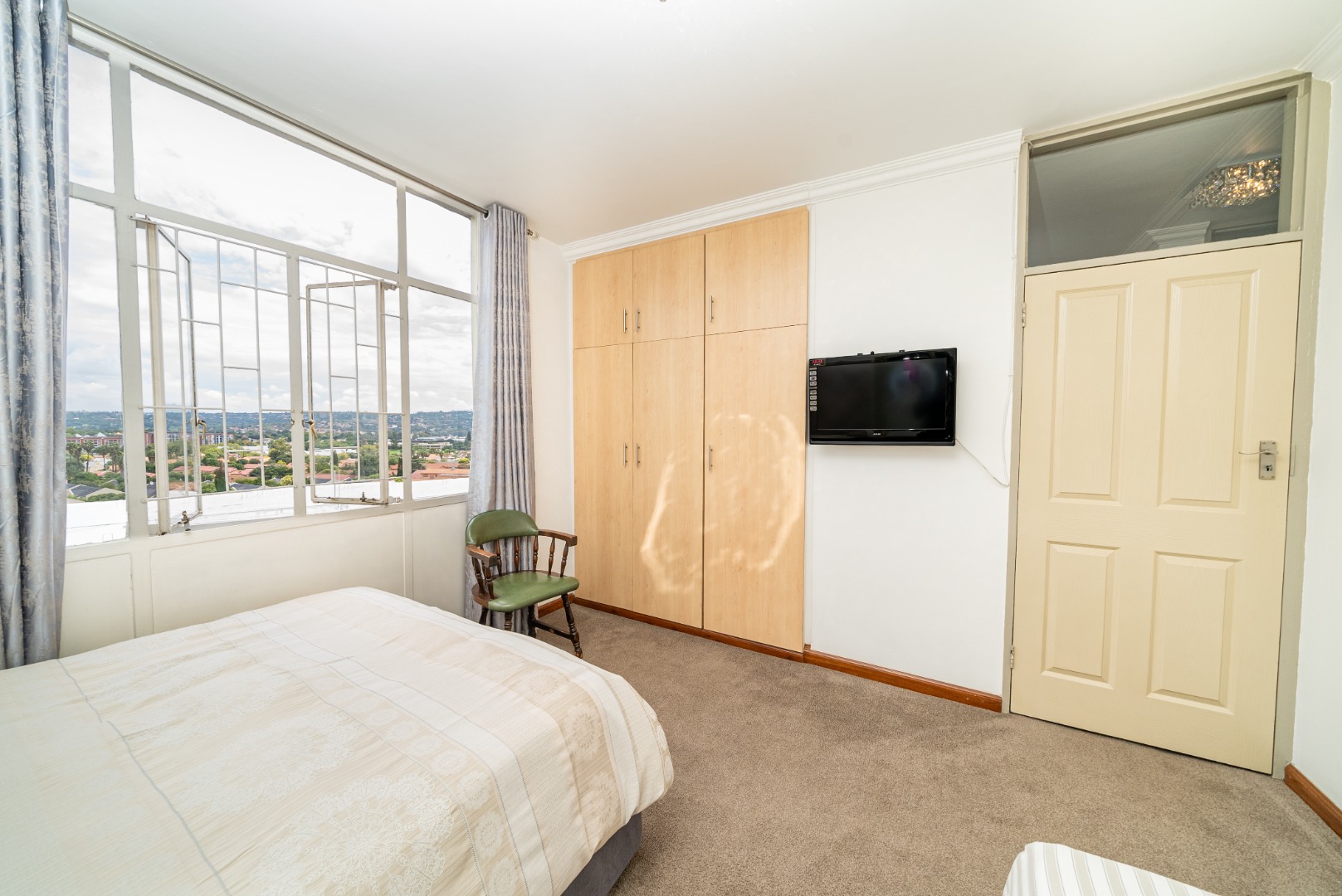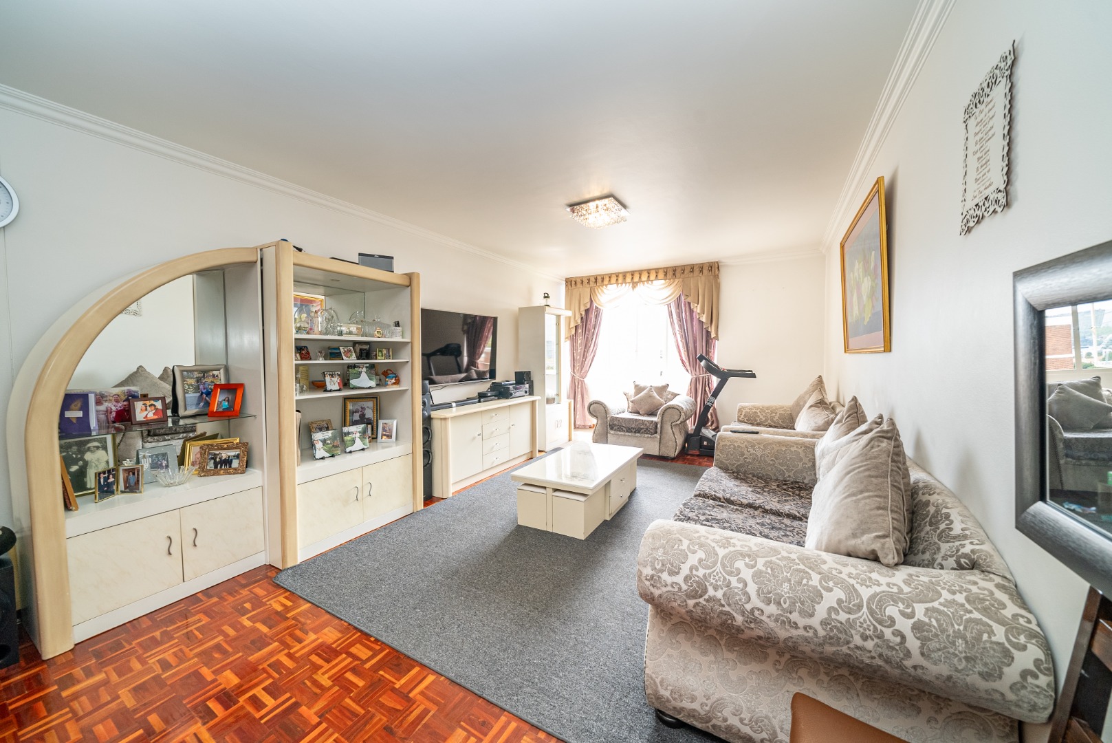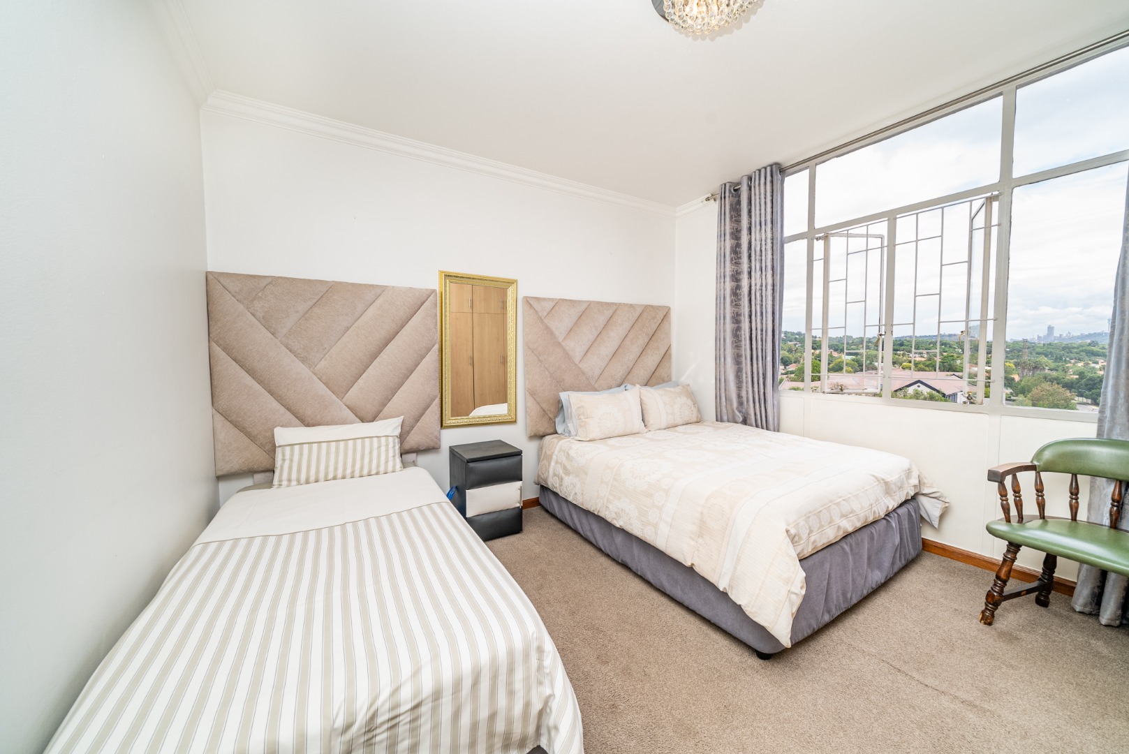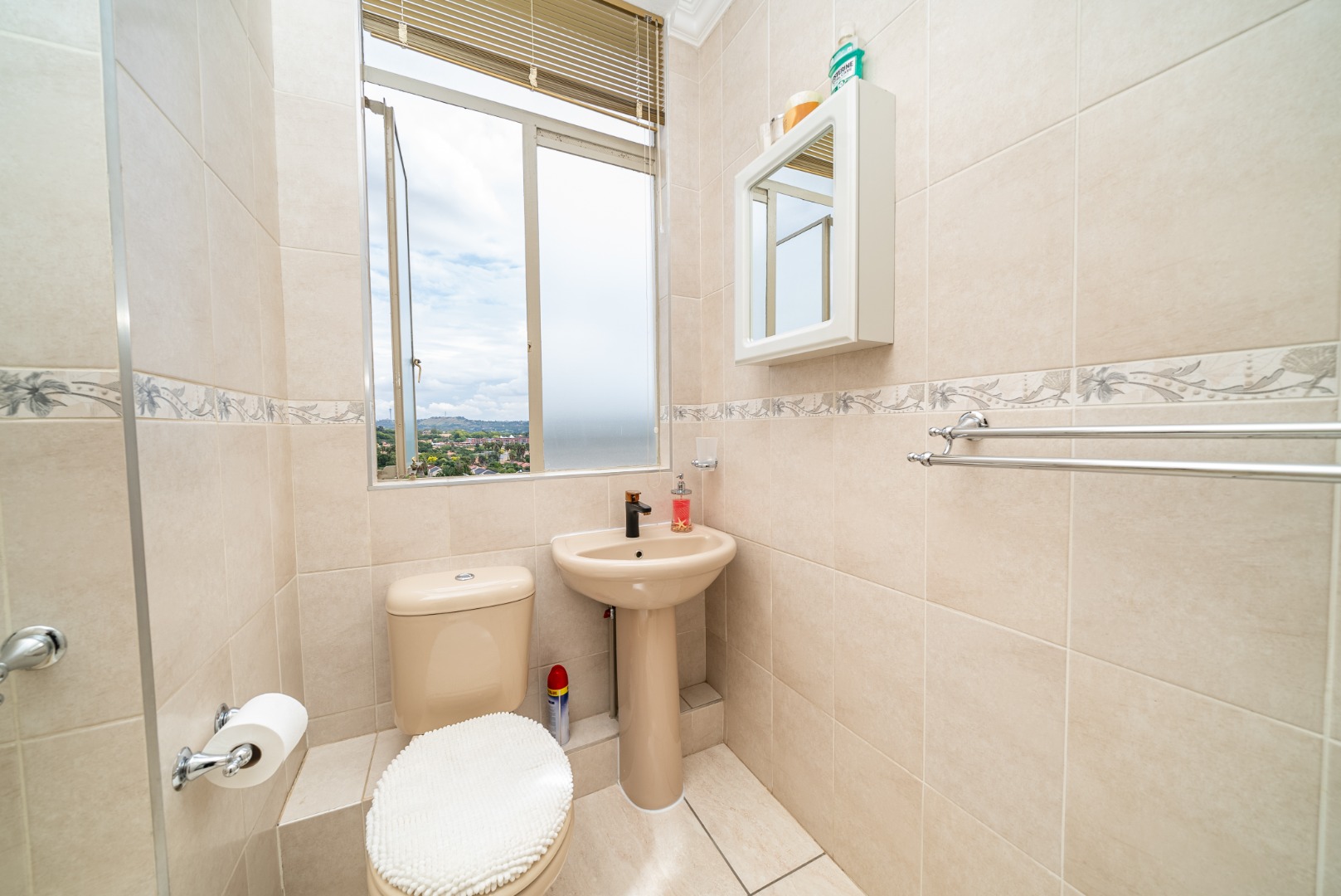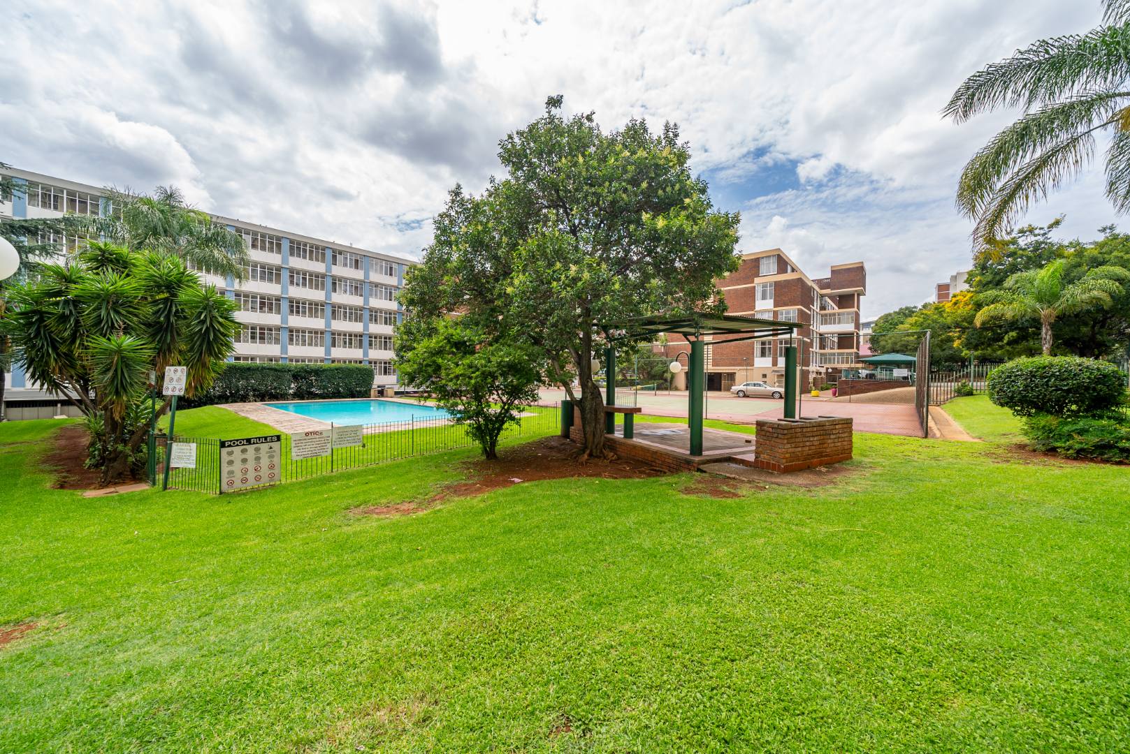 Discover this inviting 2.5-bedroom, 2-bathroom residence situated within a secure complex in the desirable suburban area of Bedford Gardens, Bedfordview. This property offers a comfortable and functional living space, ideal for individuals or small families seeking convenience and security. The interior features an open-plan living and dining area, characterized by warm parquet flooring and elegant crown molding, creating a welcoming atmosphere. Large windows ensure ample natural light throughout the main living spaces. The functional galley kitchen is equipped with light wood-look cabinetry, durable granite-style countertops, and an integrated washing machine, providing practical solutions for daily living. Accommodation includes 2.5 well-proportioned bedrooms, with the main bedroom benefiting from an en-suite bathroom. All bedrooms feature built-in glossy white wardrobes, offering generous storage solutions. The bathrooms are fully tiled in neutral tones, providing a clean and easy-to-maintain environment, with one featuring a bathtub and shower attachment. Residents of this complex enjoy access to a communal pool, perfect for relaxation and recreation. The property also includes two dedicated parking spaces, adding to the convenience. Security is a priority, with 24-hour security and an access gate ensuring peace of mind within this established community. Bedford Gardens, located in Bedfordview, is a well-regarded suburban neighbourhood known for its accessibility and community feel. It offers a balanced lifestyle with various amenities nearby, making it a sought-after location for residential living. Key Features: * 2.5 Bedrooms, 2 Bathrooms (1 En-suite) * Open-plan Living and Dining Area * Galley Kitchen with Integrated Washing Machine * Warm Parquet Flooring and Crown Molding * Built-in Wardrobes for Ample Storage * Communal Swimming Pool Access * Two Dedicated Parking Spaces * 24-Hour Security and Access Gate