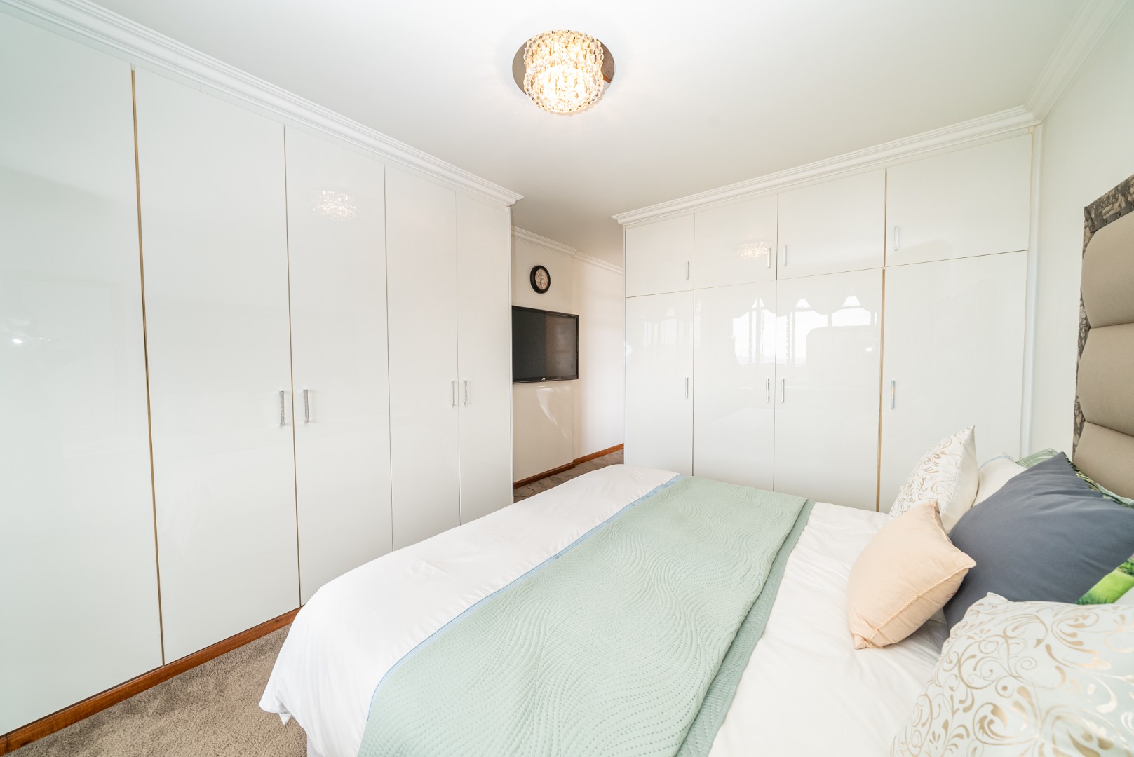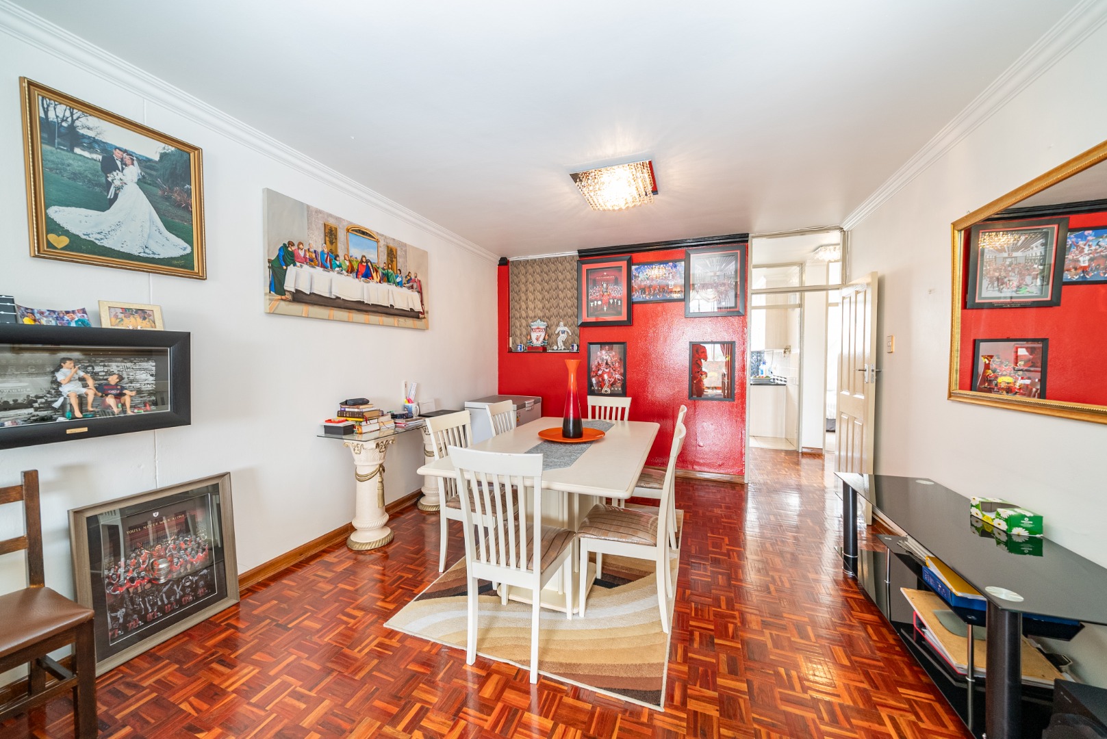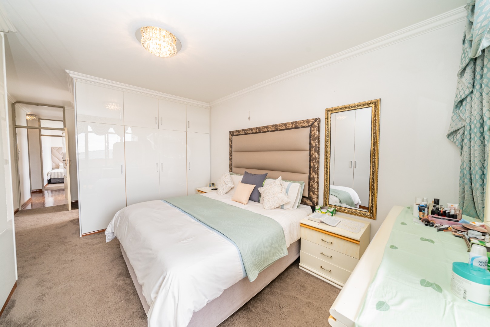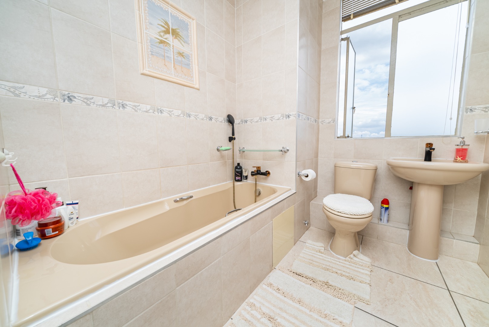Discover this inviting 2.5-bedroom, 2-bathroom residence situated within a secure complex in the desirable suburban area of Bedford Gardens, Bedfordview. This property offers a comfortable and functional living space, ideal for individuals or small families seeking convenience and security. The interior features an open-plan living and dining area, characterized by warm parquet flooring and elegant crown molding, creating a welcoming atmosphere. Large windows ensure ample natural light throughout the main living spaces. The functional galley kitchen is equipped with light wood-look cabinetry, durable granite-style countertops, and an integrated washing machine, providing practical solutions for daily living. Accommodation includes 2.5 well-proportioned bedrooms, with the main bedroom benefiting from an en-suite bathroom. All bedrooms feature built-in glossy white wardrobes, offering generous storage solutions. The bathrooms are fully tiled in neutral tones, providing a clean and easy-to-maintain environment, with one featuring a bathtub and shower attachment. Residents of this complex enjoy access to a communal pool, perfect for relaxation and recreation. The property also includes two dedicated parking spaces, adding to the convenience. Security is a priority, with 24-hour security and an access gate ensuring peace of mind within this established community. Bedford Gardens, located in Bedfordview, is a well-regarded suburban neighbourhood known for its accessibility and community feel. It offers a balanced lifestyle with various amenities nearby, making it a sought-after location for residential living. Key Features: * 2.5 Bedrooms, 2 Bathrooms (1 En-suite) * Open-plan Living and Dining Area * Galley Kitchen with Integrated Washing Machine * Warm Parquet Flooring and Crown Molding * Built-in Wardrobes for Ample Storage * Communal Swimming Pool Access * Two Dedicated Parking Spaces * 24-Hour Security and Access Gate