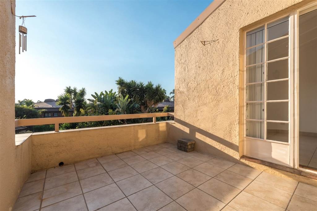 The lounge is styled in neutral tones with a loose luxurious carpet. This up-market space exudes class and provides a comfortable entertaining area. Double-volume ceiling with wooden beams create an added feeling of space. Large north and west-facing windows allow the sunlight.to stream in. Good size balcony off the dining area provides more living space and allows for open-air relaxing, boasting beautiful sunsets. The rest of the home is fully tiled.