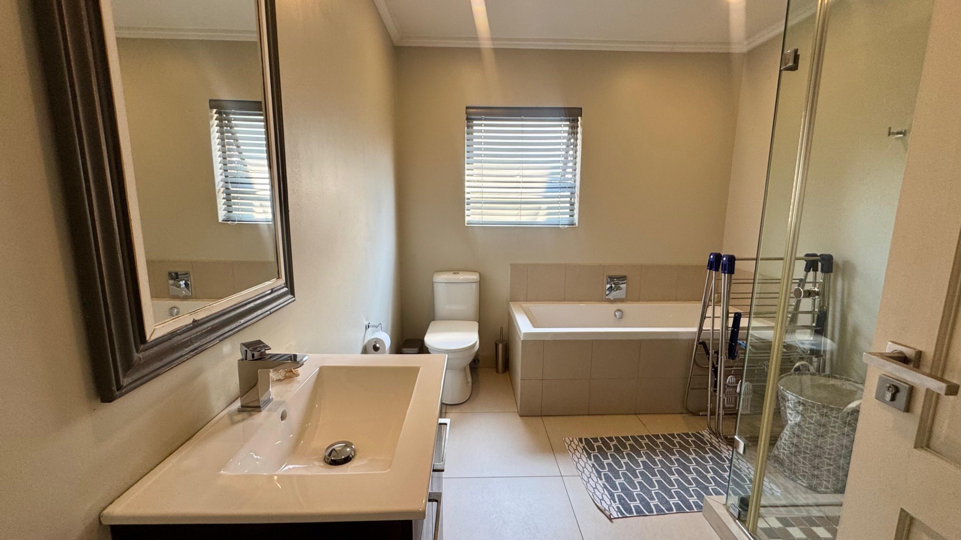 Enjoy the outdoors from your private balcony, an ideal spot for morning coffee or evening unwinding while taking in the surroundings. The built-in braai facility adds to the lifestyle appeal, perfect for social gatherings and al fresco dining. Practical amenities include two secure garages, providing ample parking and additional storage solutions. For peace of mind, the property benefits from robust security features, including electric fencing and 24-hour security, ensuring a safe and protected living space. High-speed fibre connectivity is also available, catering to modern digital demands for work and entertainment.