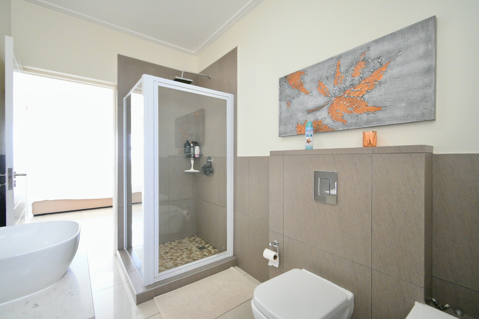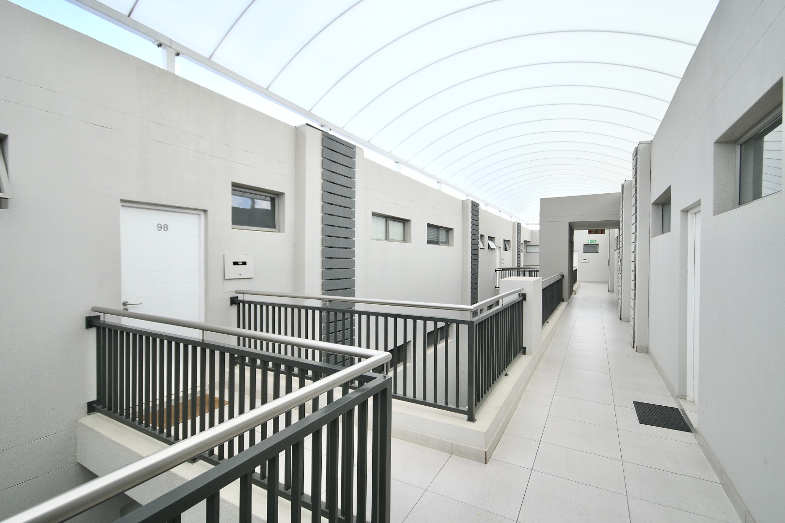 Security is paramount within this meticulously maintained security apartment estate, featuring access gates, intercom systems, and a totally walled perimeter. Residents benefit from a secure gated entrance featuring a guardhouse, boom barrier, and electric fencing, ensuring peace of mind with 24-hour security and CCTV surveillance. Connectivity is assured with fibre internet availability, and the apartment block is equipped with water tanks for enhanced sustainability. Three dedicated parking bays are provided for residents of this unit.