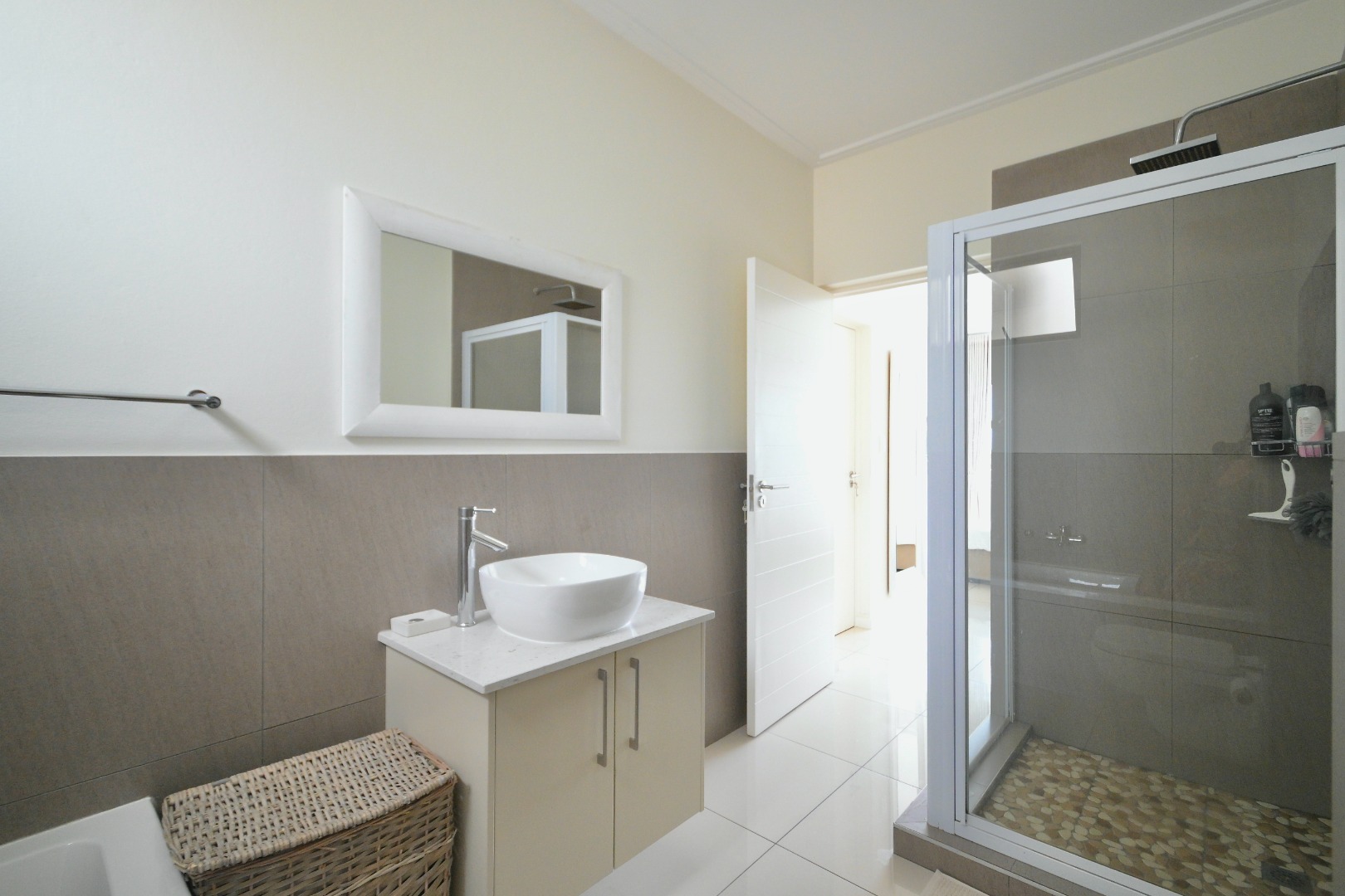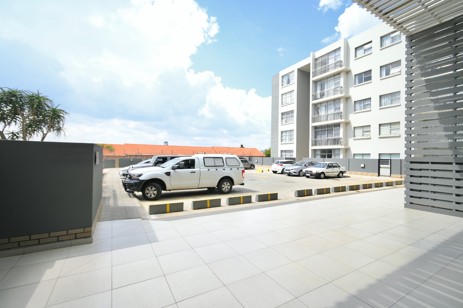 Security is paramount within this meticulously maintained security apartment estate, featuring access gates, intercom systems, and a totally walled perimeter. Residents benefit from a secure gated entrance featuring a guardhouse, boom barrier, and electric fencing, ensuring peace of mind with 24-hour security and CCTV surveillance. Connectivity is assured with fibre internet availability, and the apartment block is equipped with water tanks for enhanced sustainability. Three dedicated parking bays are provided for residents of this unit.
