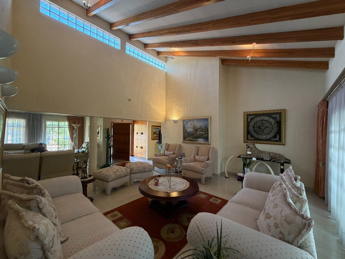 Step inside and you'll find a comfortable and inviting space. The living areas are a real highlight, featuring impressive high vaulted ceilings with exposed wooden beams that add so much character. With two lounges, there's plenty of room for everyone to relax, and the large glass patio doors let in loads of natural light while offering easy access to the outdoors from every living room. You'll also find a dedicated study, perfect for working from home or as a an additional fourth bedroom.