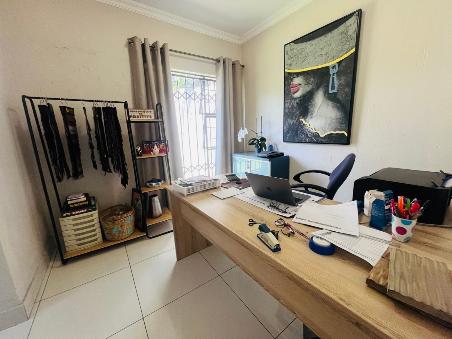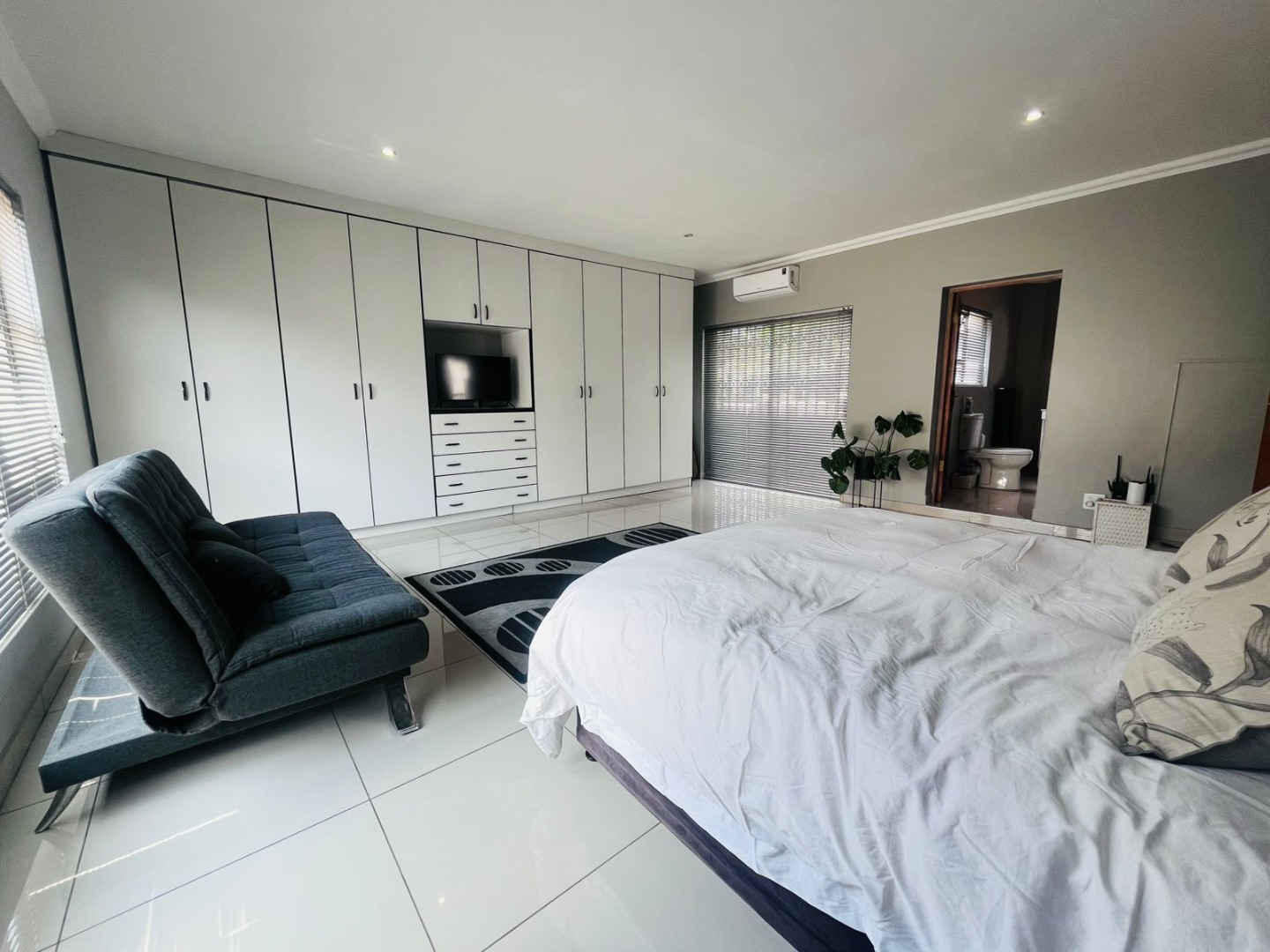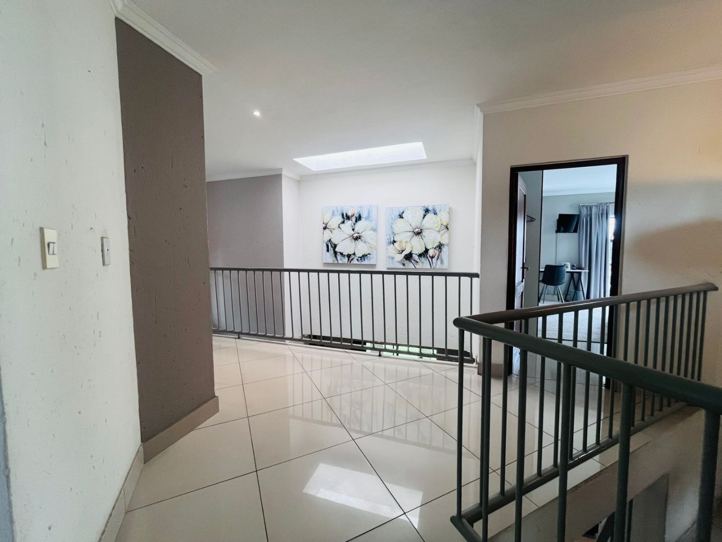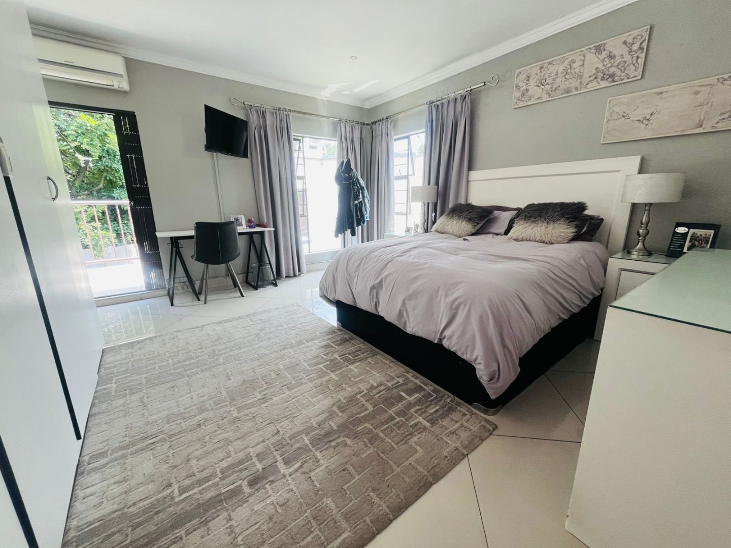 Upstairs, a wide staircase leads to a generous landing and the bedroom wing. The main and second bedrooms are exceptionally spacious, each with stylish en-suite bathrooms and access to a large balcony overlooking the treetops. The third bedroom is also en-suite and a dedicated study completes the upper level. Additional features include double automated garages with direct access into the home, extra parking, air conditioning in the lounge and main bedroom, Maxi doors throughout and pet-friendly living. The complex is secure and ideally positioned close to the Bedfordview Mosque, shopping centres, top schools, popular restaurants and major freeway routes. This is an exceptional family home well worth viewing.