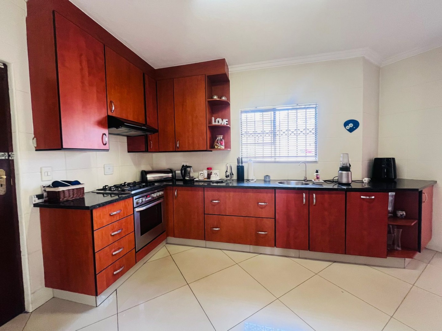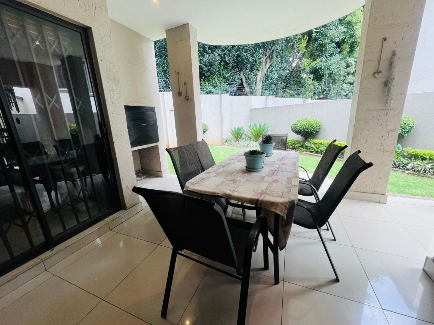 Stunning modern townhouse set in a small, well-maintained complex in the heart of Oriel, Bedfordview. From the moment you enter, this beautifully designed home offers a seamless blend of style, space and modern comfort. The ground floor features a spacious open-plan lounge and dining area flowing into a contemporary kitchen with granite countertops, Breakfast counter, ample cupboard space, a large pantry, under-counter oven, gas hob and a separate scullery. The living area opens onto a cool, covered patio with built-in braai, surrounded by a private garden ideal for relaxed outdoor living and entertaining. A fourth bedroom is conveniently located downstairs with an en-suite shower bathroom, complemented by a guest cloakroom.