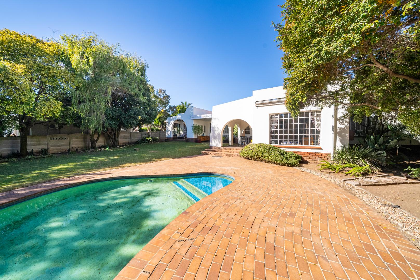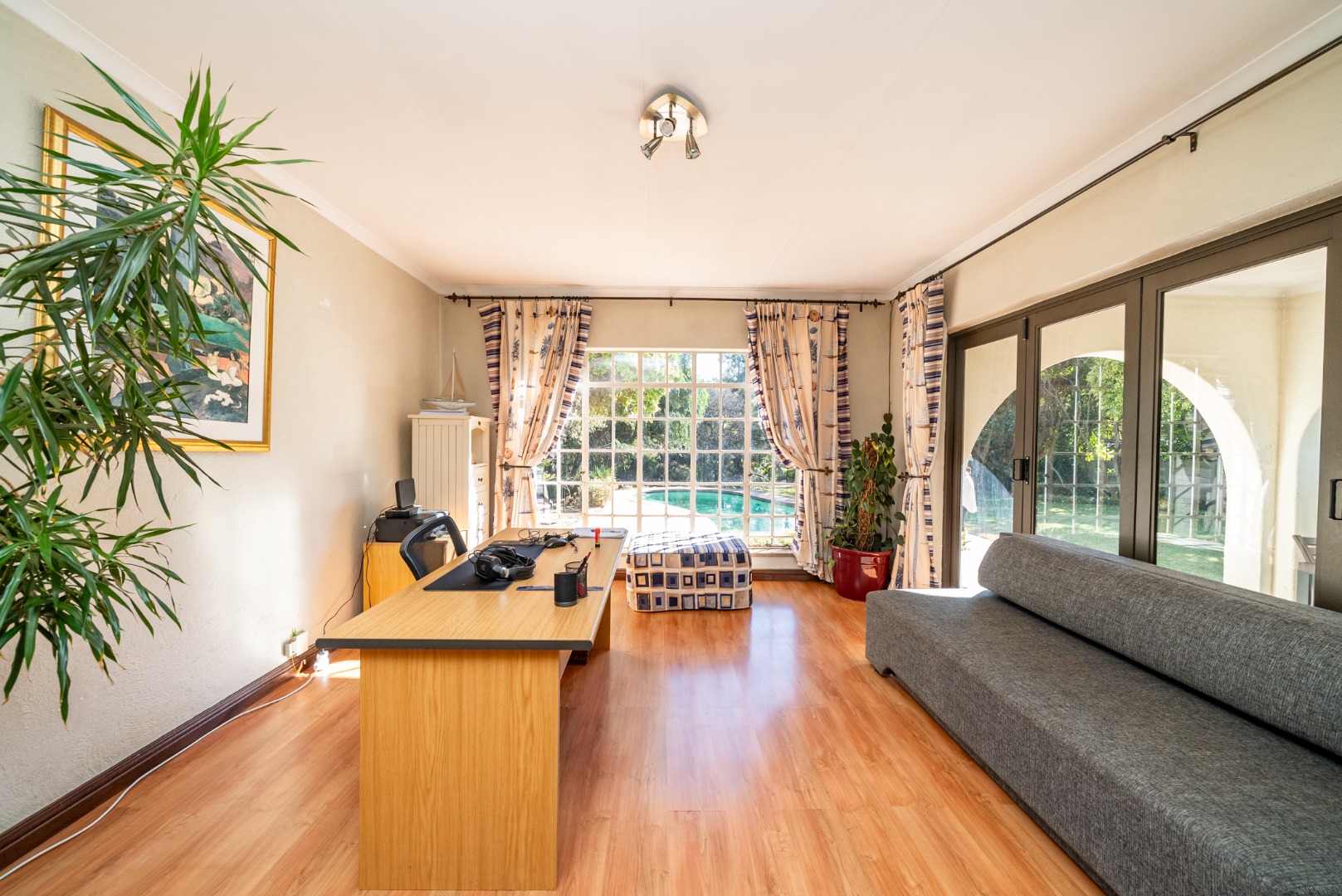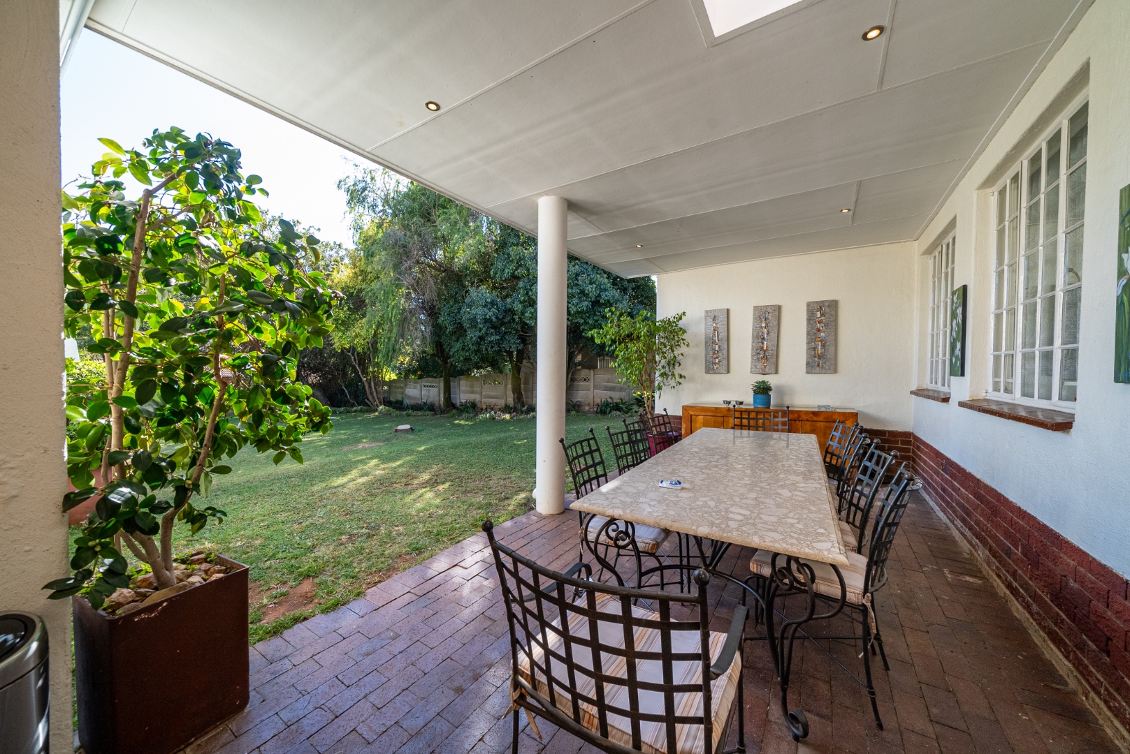 A second lounge, bright and airy, opens up through expansive stacking doors to a generous covered patio. Here, alfresco living takes center stage—overlooking a sparkling pool and lush garden that stretches beyond, this outdoor haven is a true entertainer’s dream.