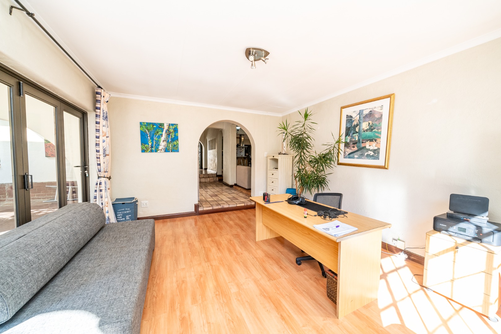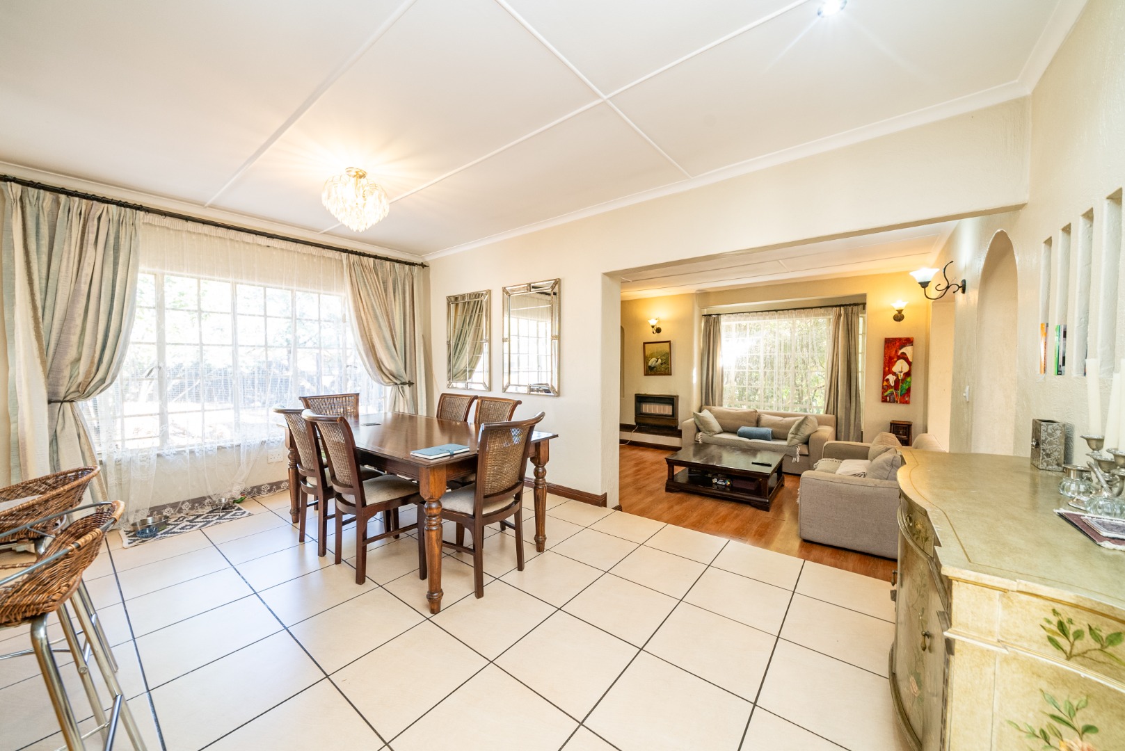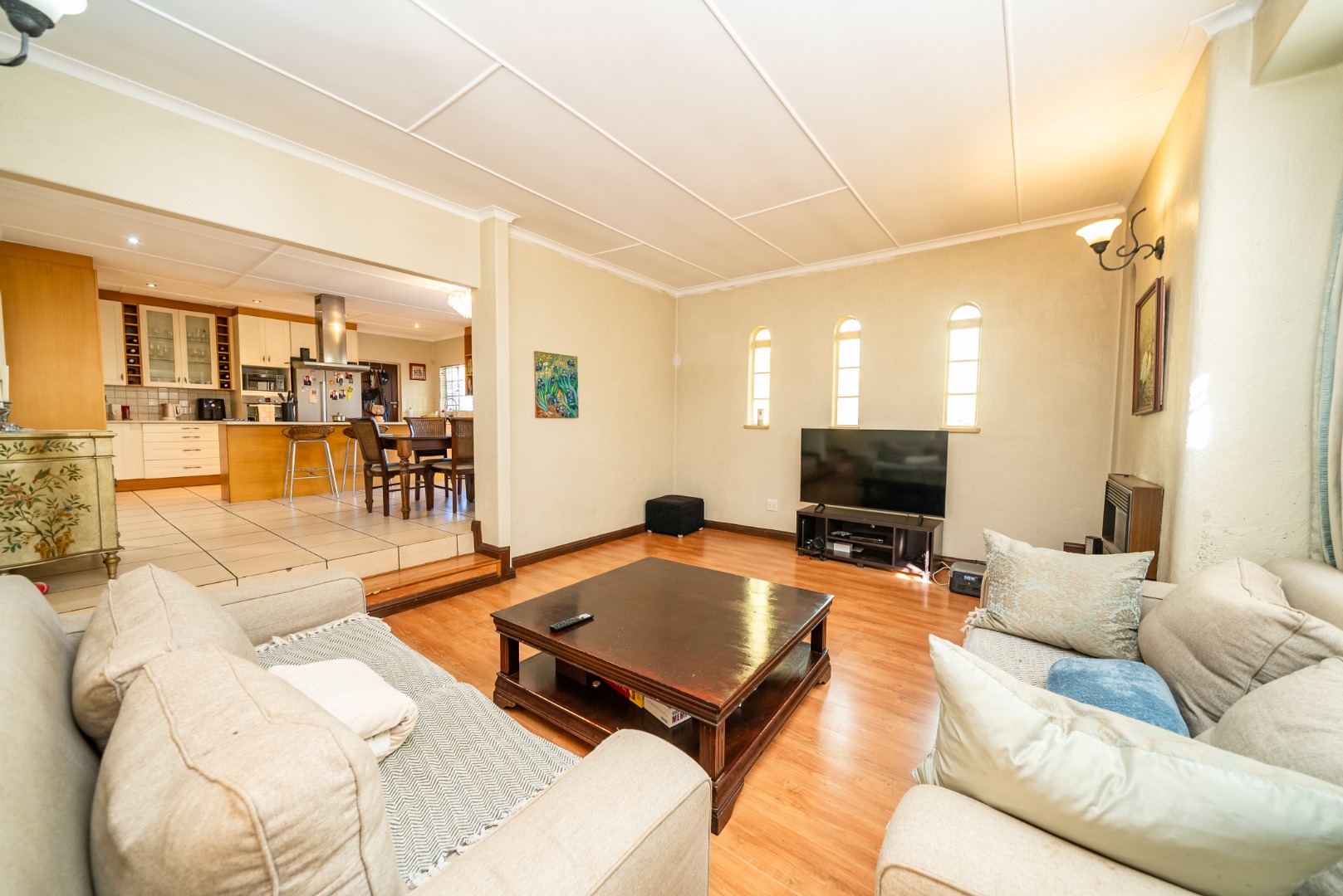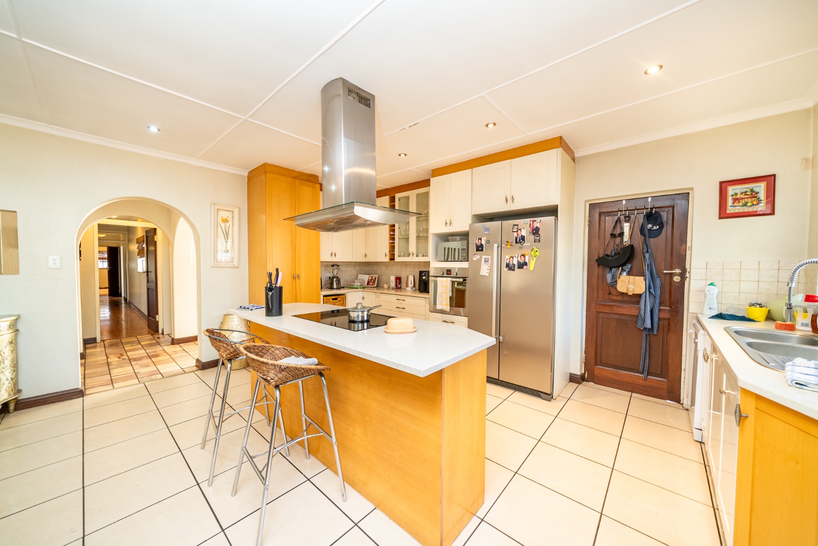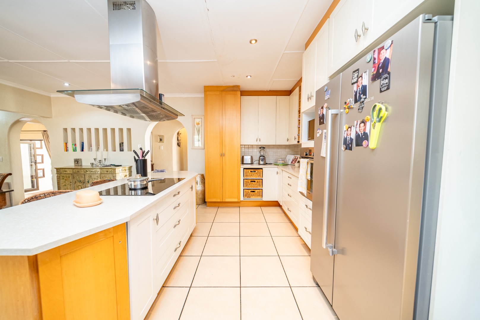 Step through the grand arched entrance and into a thoughtfully designed open-plan layout. At its heart lies a gourmet kitchen anchored by a sleek central island—perfectly positioned for both casual family meals and refined entertaining. Flowing naturally into the dining area, soft light filters through a series of arched openings, wrapping the space in a warm, communal ambiance.