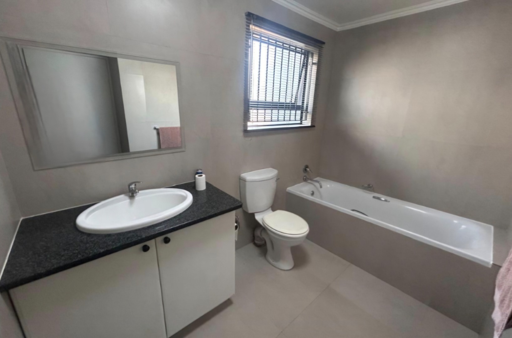 Discover modern living in this well-appointed 1-bedroom, 1-bathroom unit located within a secure complex in Oriel, Bedfordview. Spanning 62 square metres, this property offers a contemporary and comfortable lifestyle, ideal for individuals or couples seeking convenience and peace of mind. The interior boasts an open-plan layout, seamlessly connecting the lounge, dining area, and a modern kitchen. The kitchen is a highlight, featuring an integrated hob and oven on a stylish island, complemented by ample counter space and light wood cabinetry. Tiled flooring throughout ensures easy maintenance, while neutral wall colours provide a versatile canvas for personal decor. Sliding doors enhance the flow and natural light within the living space. The spacious bedroom includes a built-in wardrobe, offering practical storage solutions. The ensuite bathroom is elegantly designed with a modern vanity, integrated basin, cabinet storage, and a bathtub, all finished with neutral tiling. Natural light filters in through a window, creating a bright and inviting atmosphere. Step outside to a private, covered patio and a small, well-maintained garden area, perfect for relaxation or entertaining. The property also benefits from two dedicated parking spaces and allows pets, adding to its appeal. Residents will appreciate the robust security measures, including 24-hour security, an access gate, electric fencing, security gates, and a security post, ensuring a safe environment. Oriel, a suburban area in Bedfordview, South Africa, offers a desirable location with convenient access to local amenities. This unit combines modern design with practical features, making it an excellent choice for those prioritising comfort and security. Key Features: * 1 Bedroom, 1 Bathroom (Ensuite) * 62 sqm Floor Size * Open-Plan Living & Kitchen * Modern Kitchen with Island * Private Covered Patio & Garden * 2 Parking Spaces * Pet-Friendly * 24-Hour Security Complex * Electric Fencing & Access Gate * Tiled Flooring Throughout