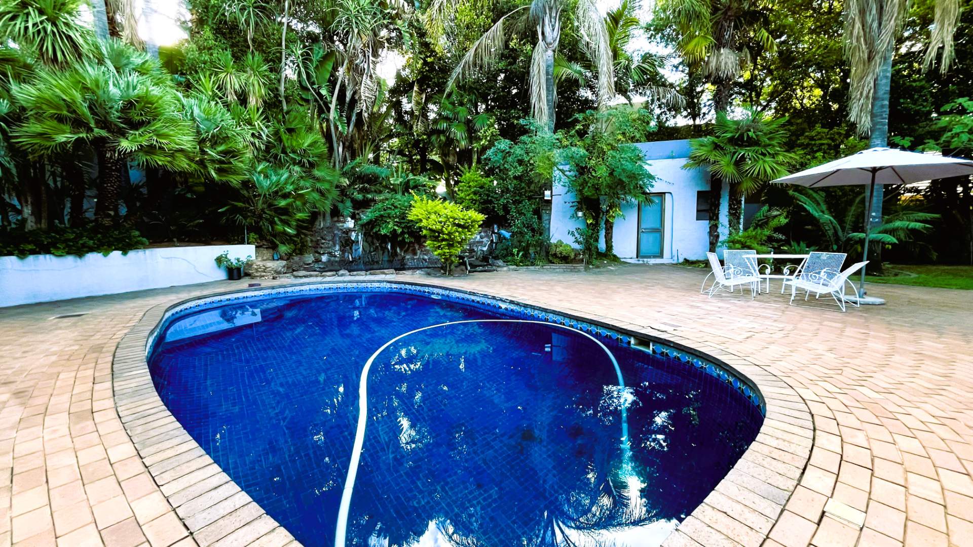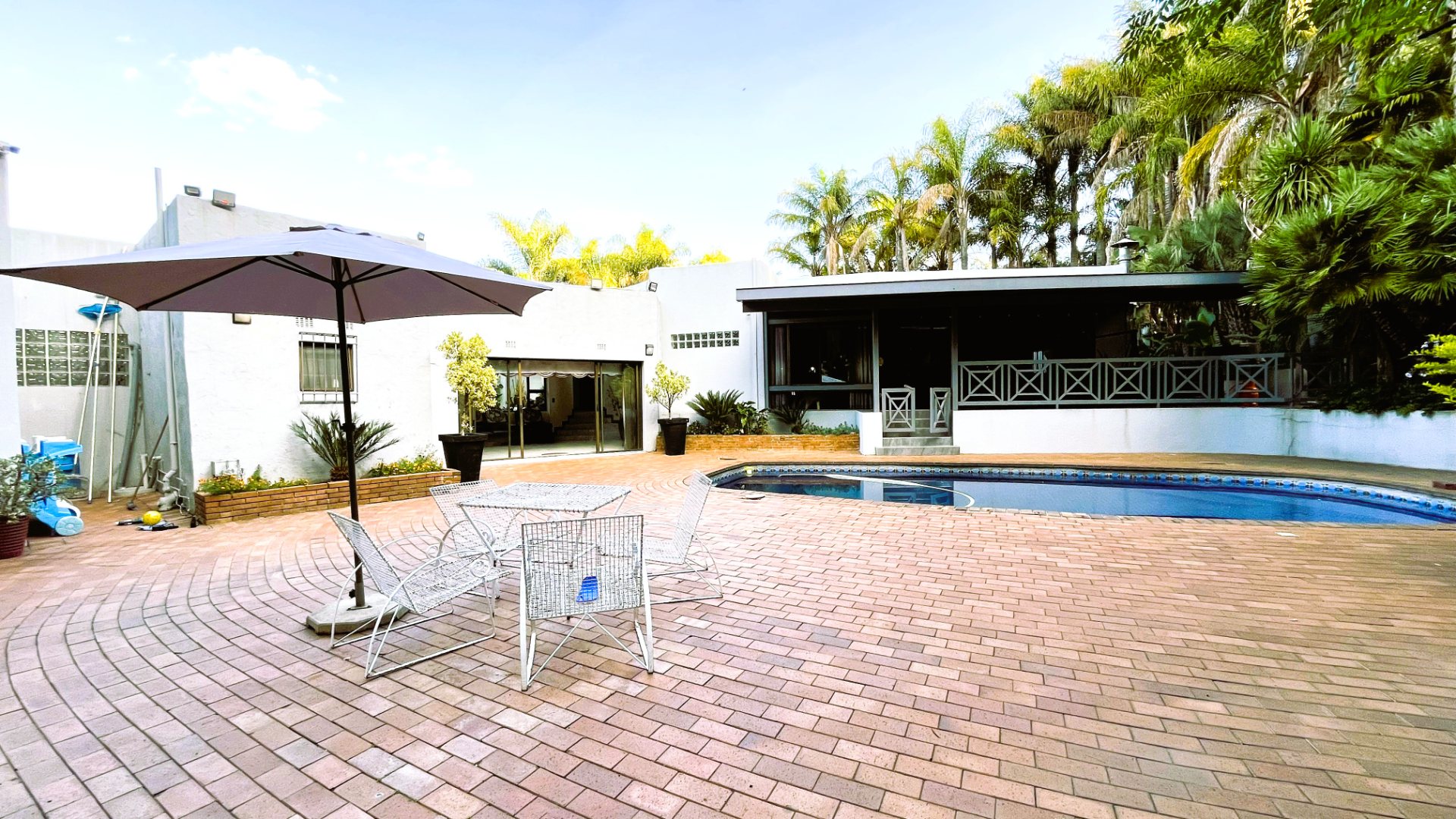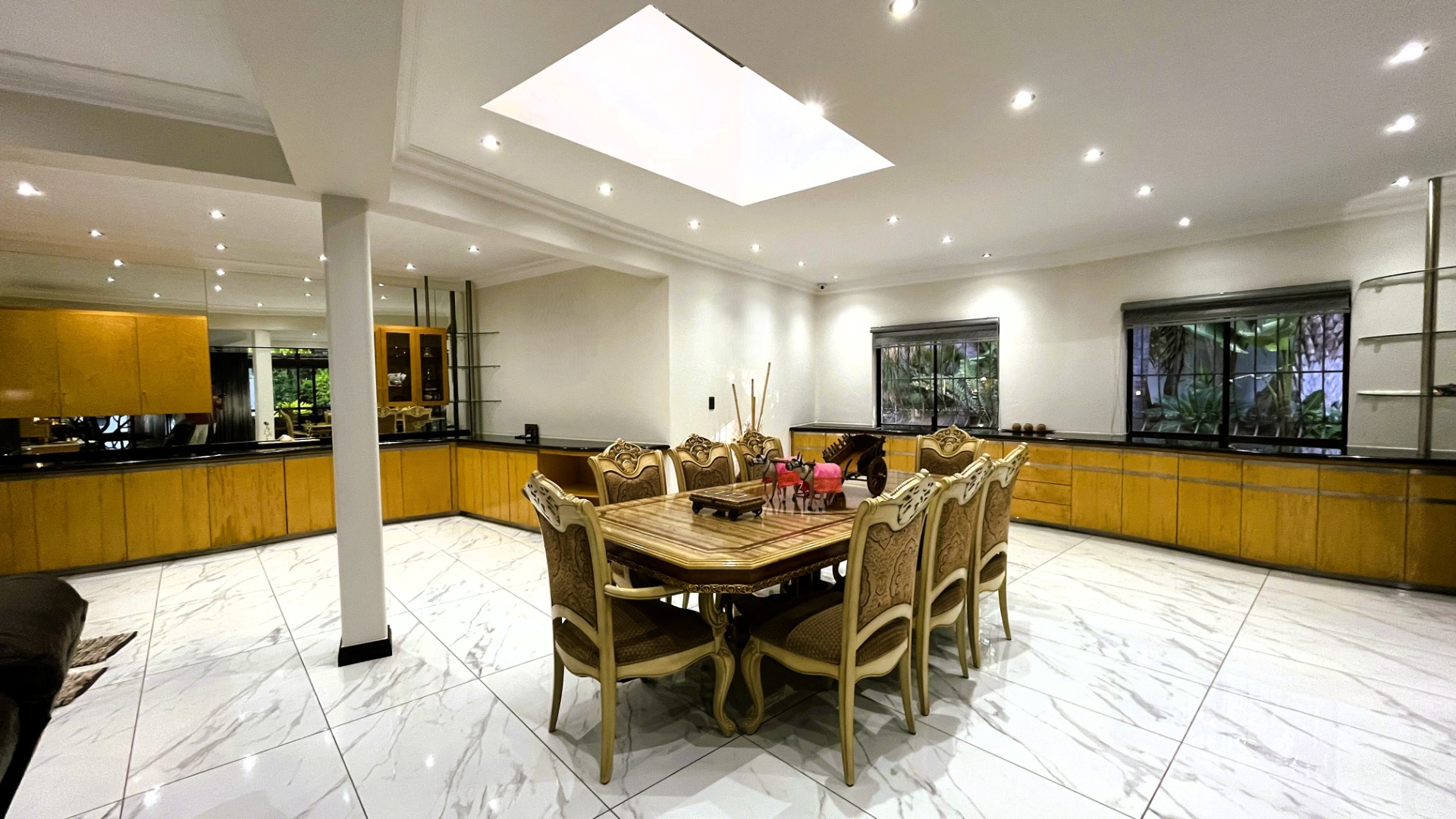 A sunken lounge area adds character and warmth to the home, opening out to the back garden and overlooking the large blue swimming pool, the perfect setting for family enjoyment and weekend entertaining. At the heart of the home, a built-in atrium introduces natural light and an additional sense of space, enhancing the overall ambiance.