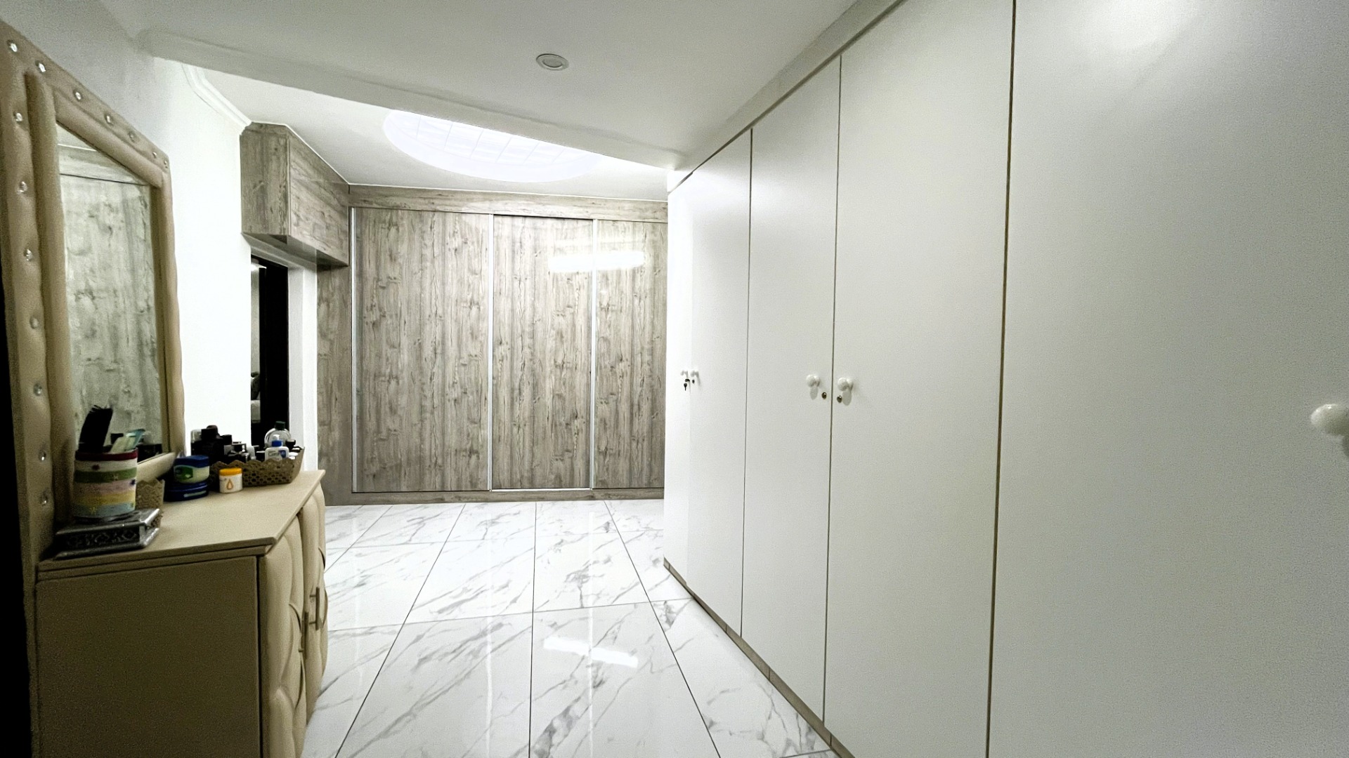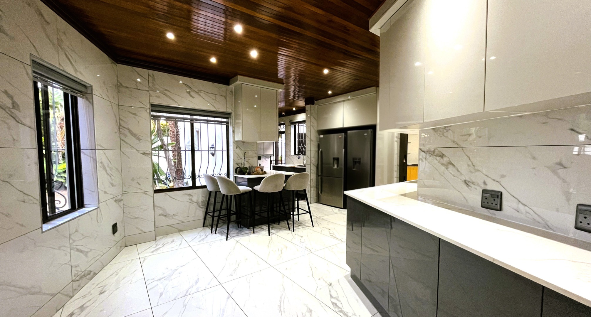 Recently renovated throughout, the home showcases contemporary marble-look tiled flooring, giving the interiors a fresh, modern aesthetic while maintaining a welcoming family atmosphere.