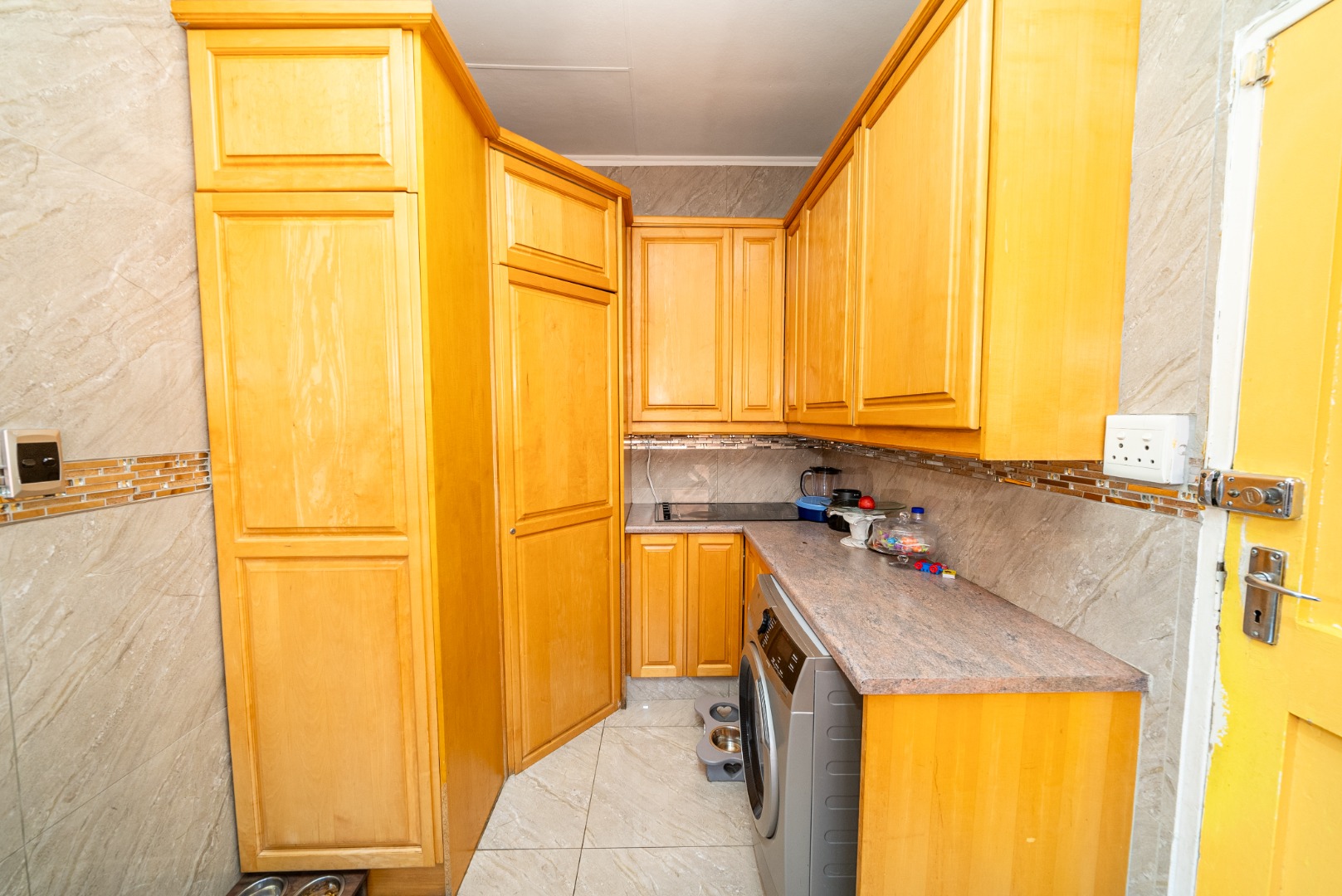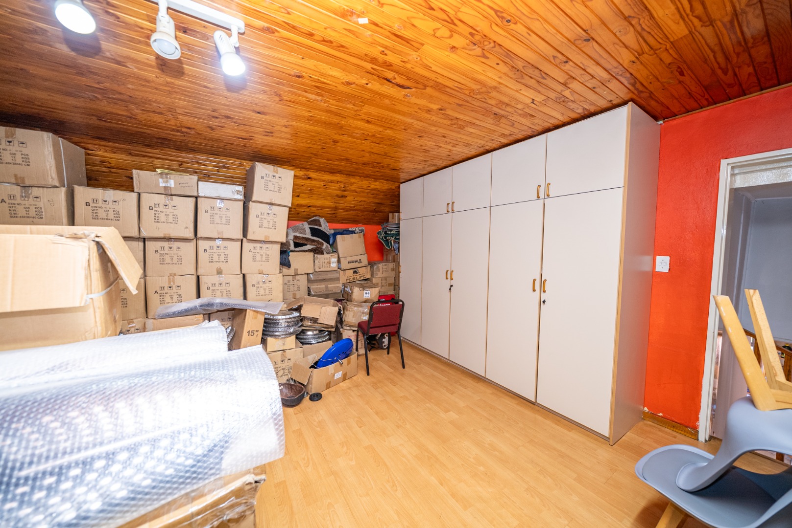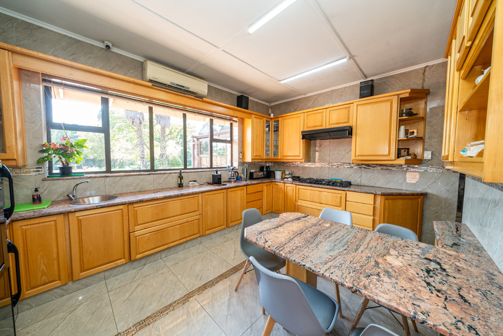 Accommodation includes three more comfortable bedrooms, complemented by 1.5 bathrooms, providing convenience for the entire household. Practical amenities are abundant, with staff quarters, a laundry room, and an impressive eight garages, offering extensive parking and storage solutions.