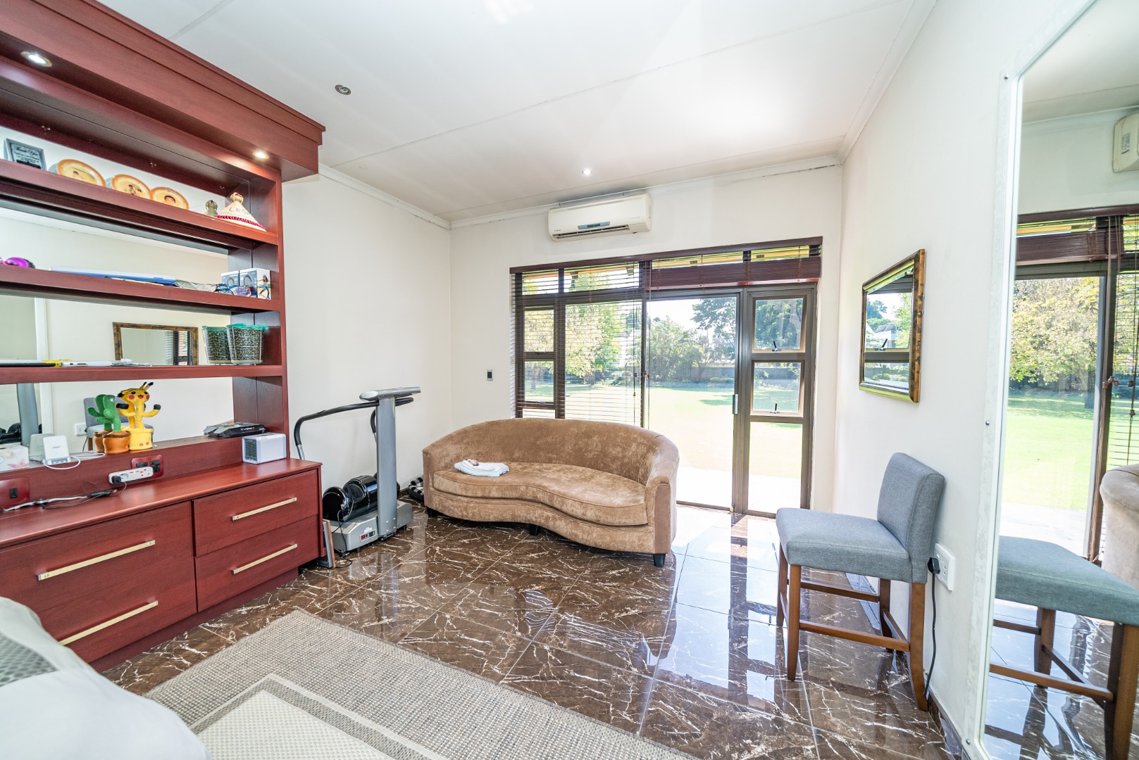 Step outside to discover a private oasis featuring a refreshing swimming pool, a welcoming patio, and a built-in braai area, perfect for outdoor gatherings. The property also benefits from a sauna, a well-maintained garden with a sprinkler system, and paving. Security is enhanced with CCTV surveillance and an access gate, while a borehole ensures efficient water management. Fibre connectivity is available, catering to modern communication needs. Pets are permitted, making this a truly family-friendly home.