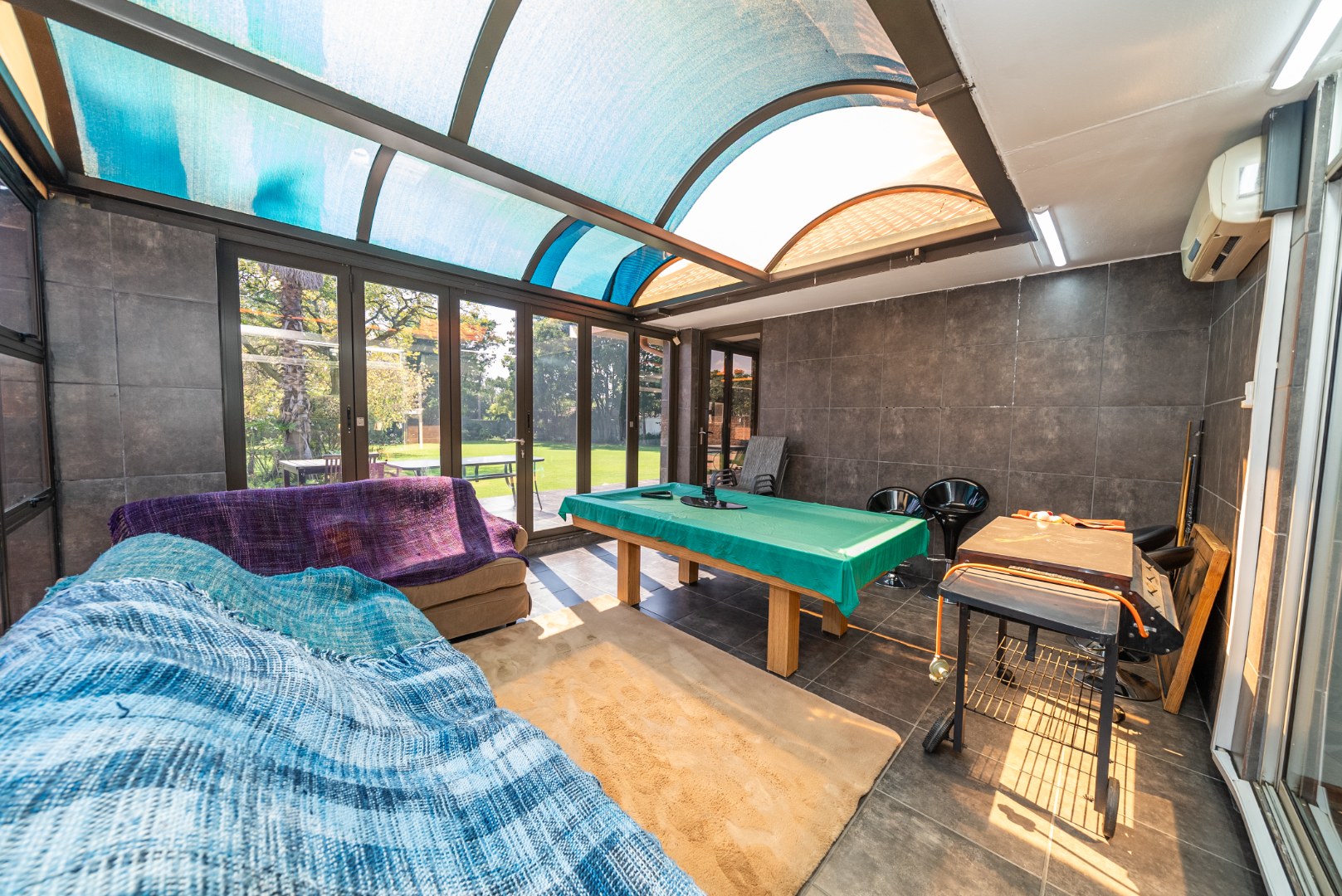 The interior features a well-appointed kitchen, a dedicated dining room, and a spacious lounge, ensuring plenty of room for daily living and hosting guests. A separate family sunroom offers an additional versatile space, while a dedicated study provides an ideal environment for work or quiet contemplation. The home is equipped with air conditioning for year-round comfort and a cozy fireplace for cooler evenings.