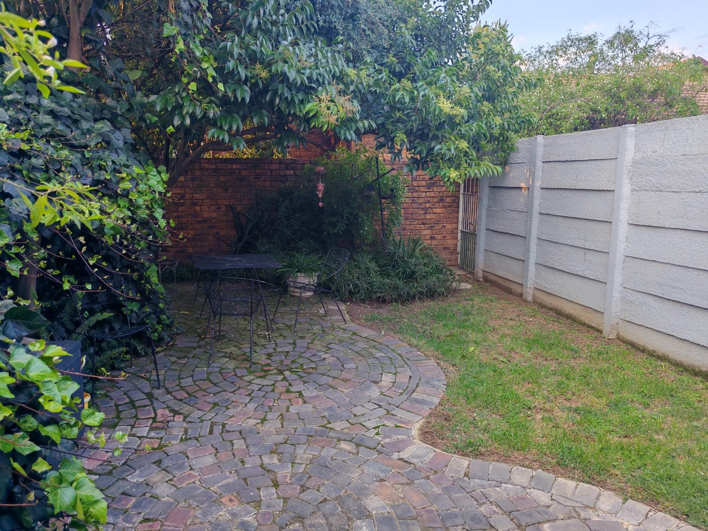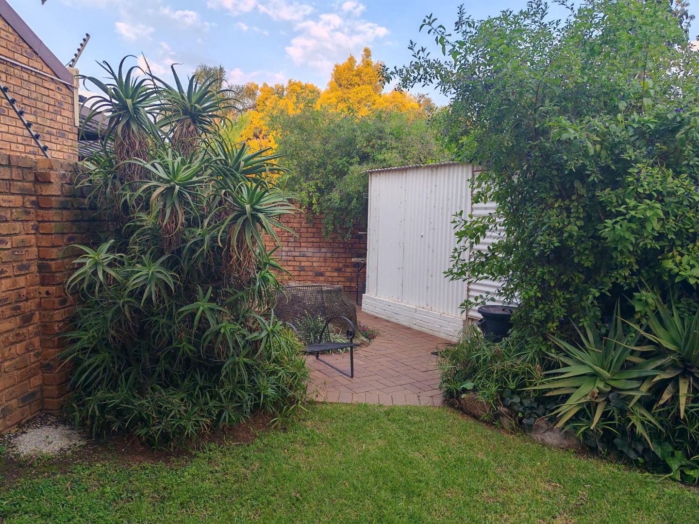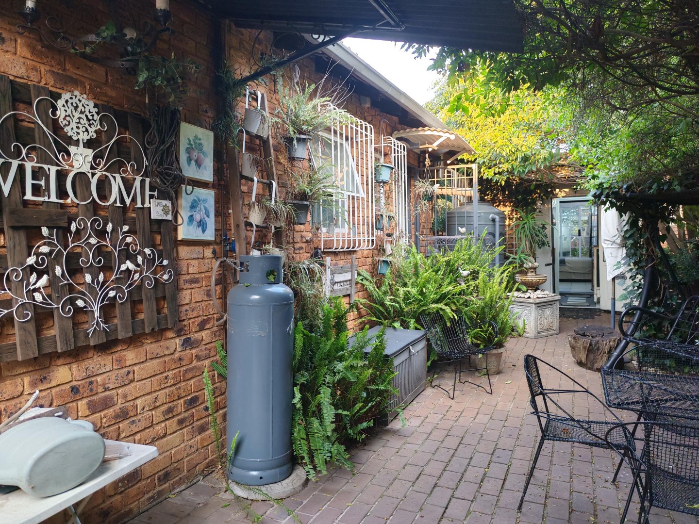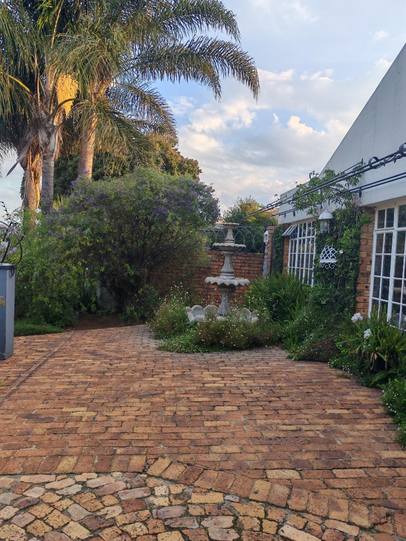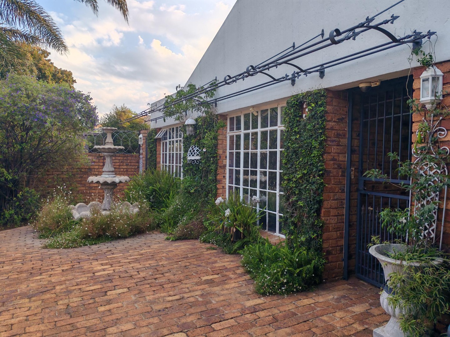 Come and discover this charming home nestled in the heart of Beyers Park, Boksburg, South Africa. From the moment you arrive, you'll be greeted by a delightful brick-paved courtyard, complete with a decorative fountain and lush climbing plants that add a touch of natural beauty. The rustic brickwork and large grid-style windows give the exterior a welcoming, picturesque feel, letting in plenty of natural light.