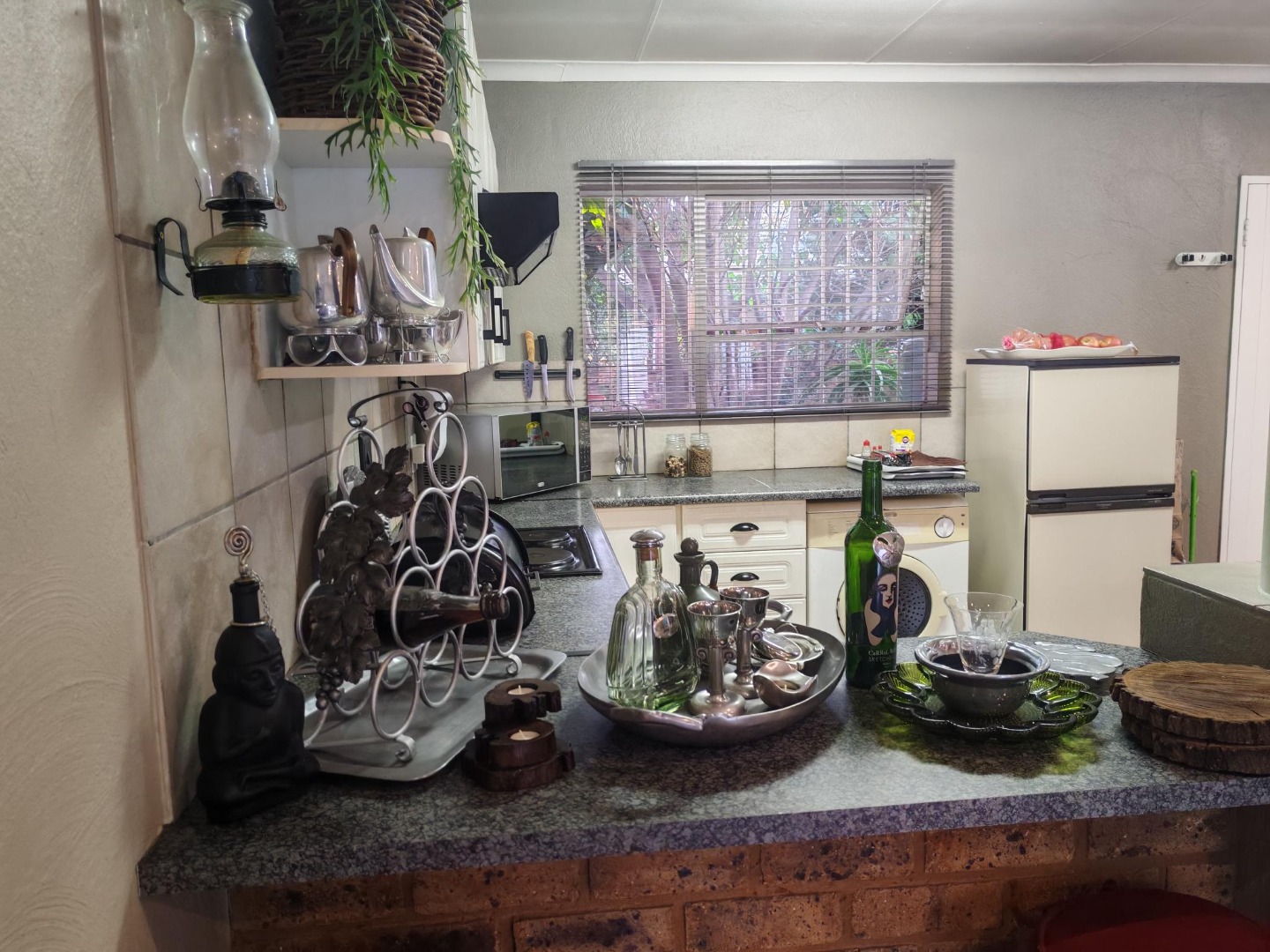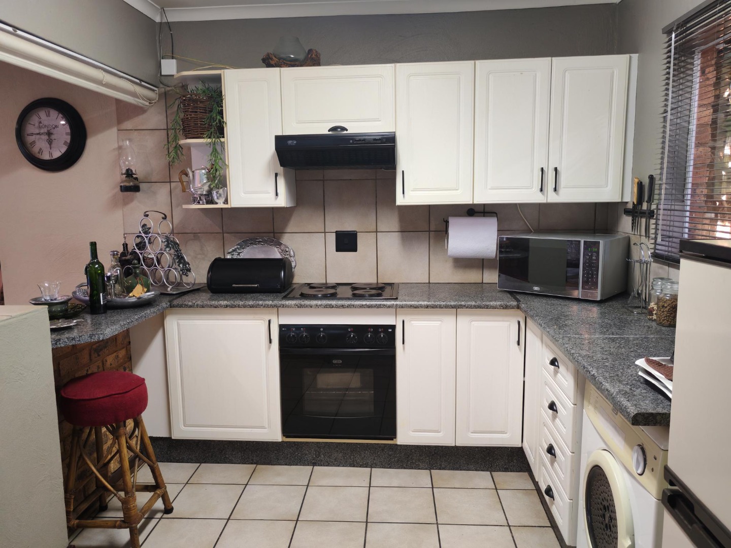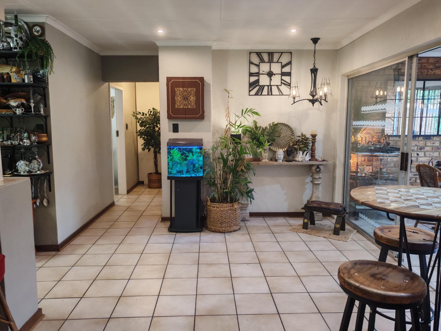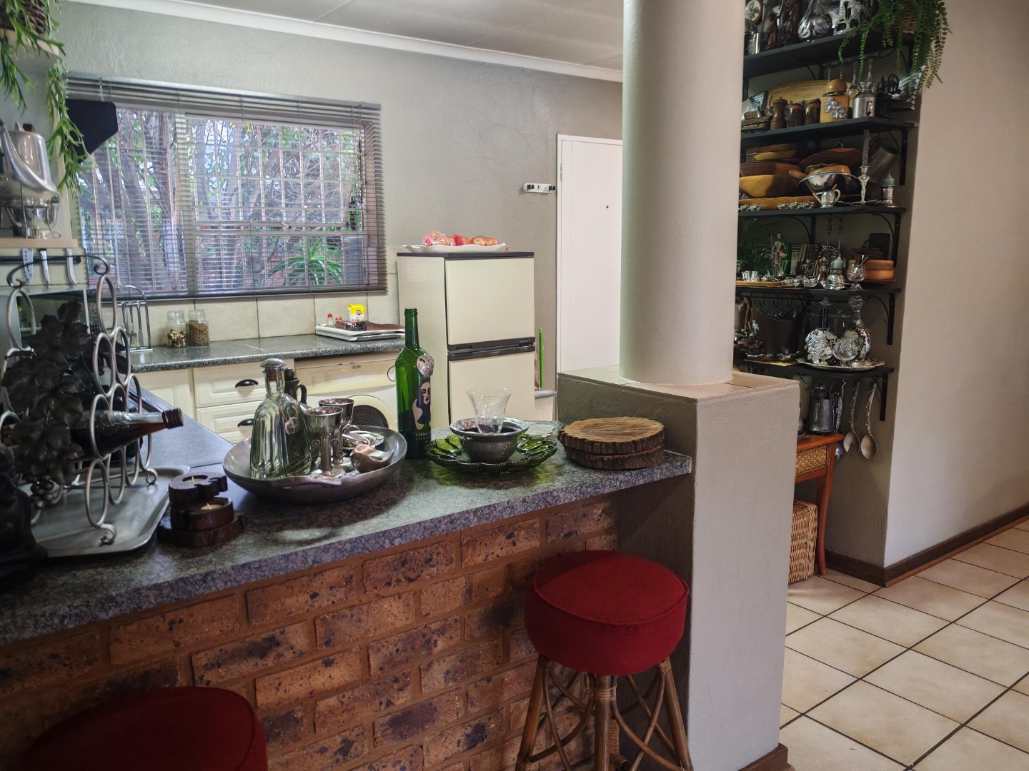 Come and discover this charming home nestled in the heart of Beyers Park, Boksburg, South Africa. From the moment you arrive, you'll be greeted by a delightful brick-paved courtyard, complete with a decorative fountain and lush climbing plants that add a touch of natural beauty. The rustic brickwork and large grid-style windows give the exterior a welcoming, picturesque feel, letting in plenty of natural light.