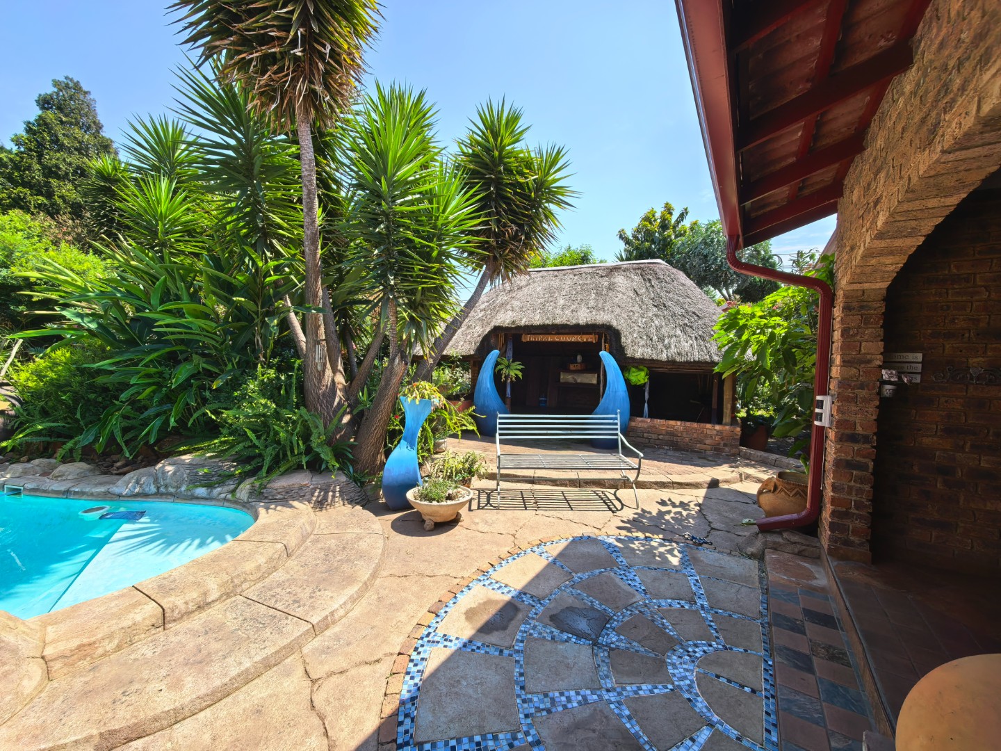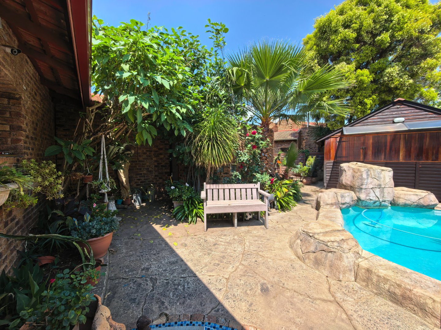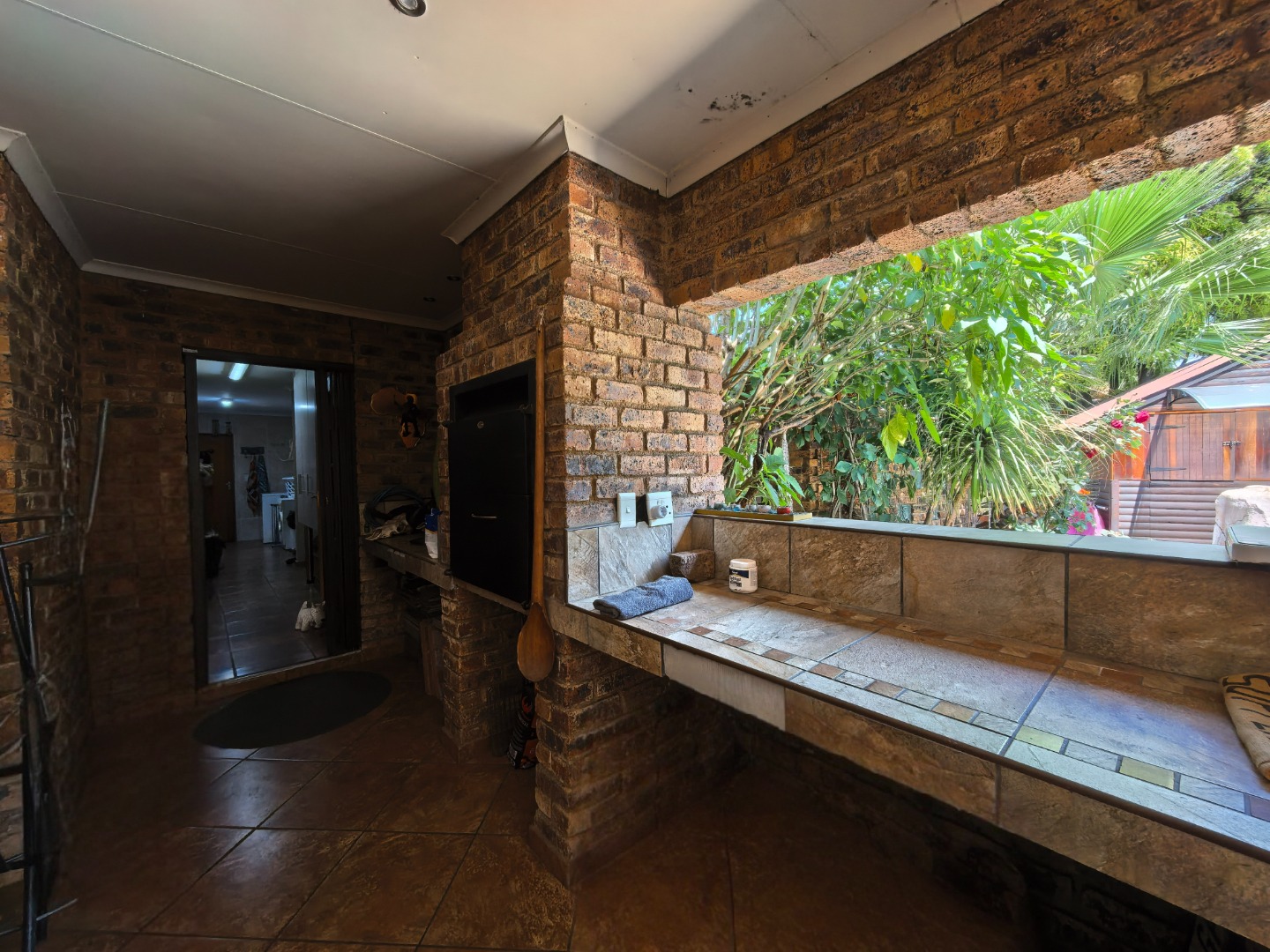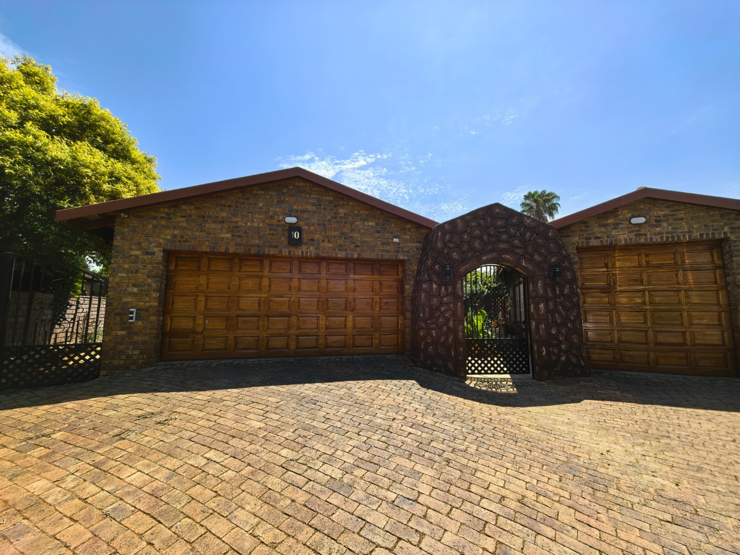 Outdoor living is equally captivating, centered around a sparkling swimming pool and a charming Lapa, perfect for sun-drenched relaxation. An inviting braai room with a built-in braai, sets the scene for memorable alfresco gatherings with a spacious guest toilet and change room. The meticulously landscaped garden, complete with two wendy houses, provides serene green spaces. Four automated garages and additional paved parking ensure ample accommodation for vehicles, and pets are warmly welcomed.