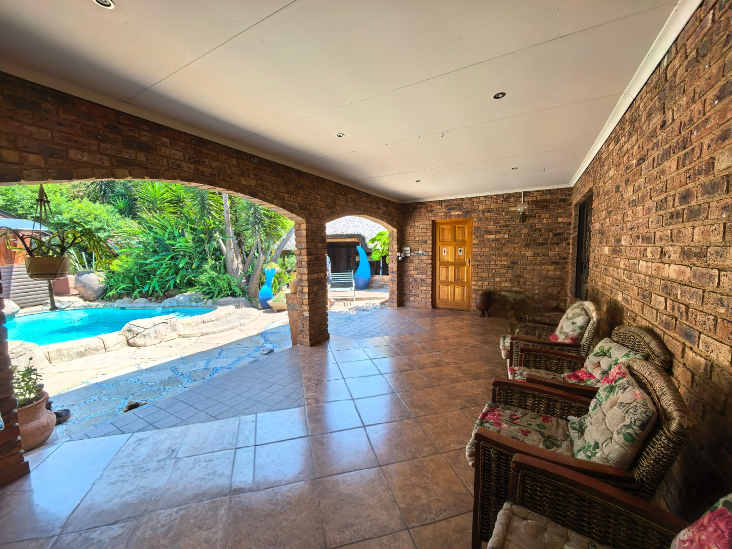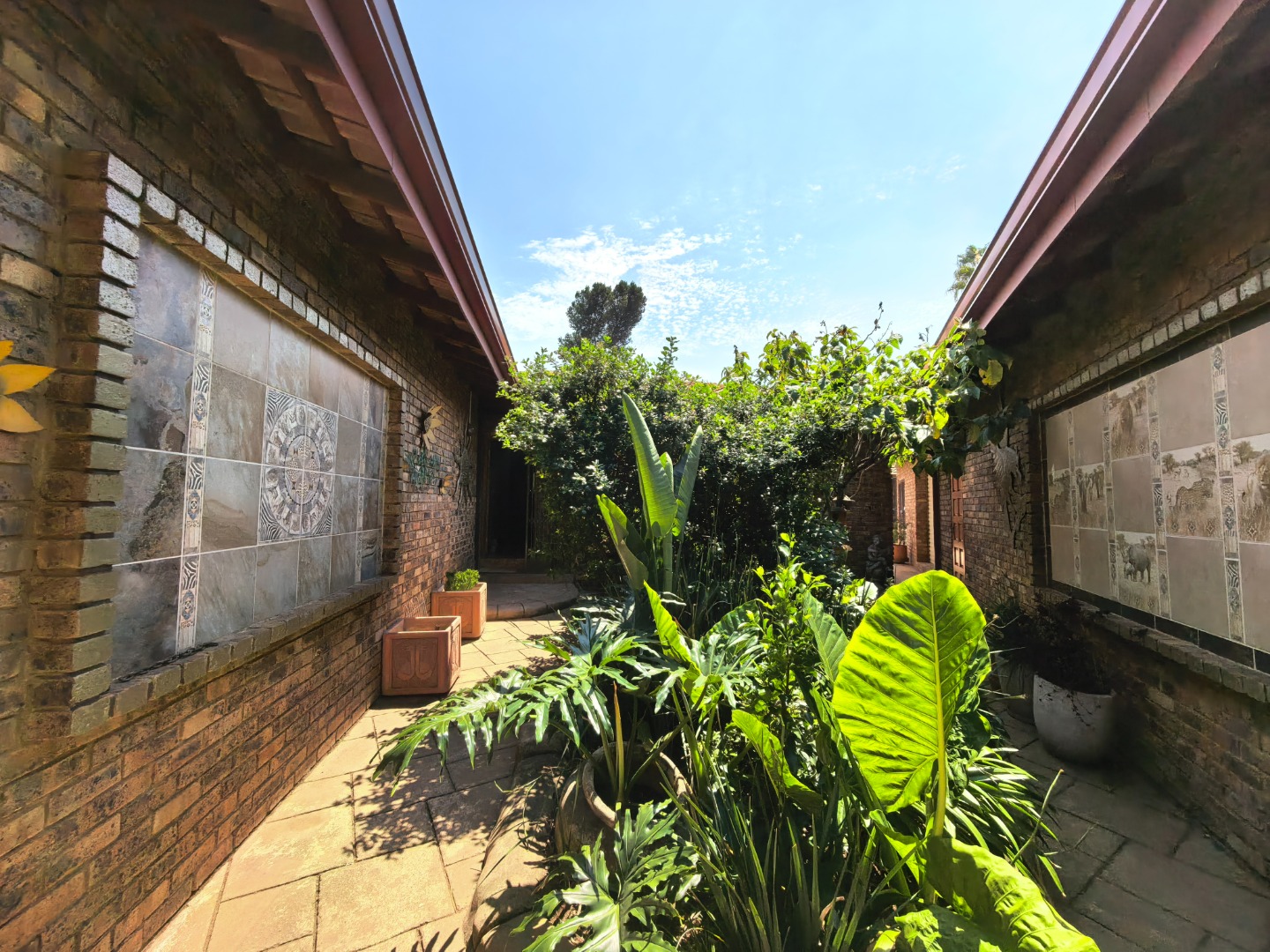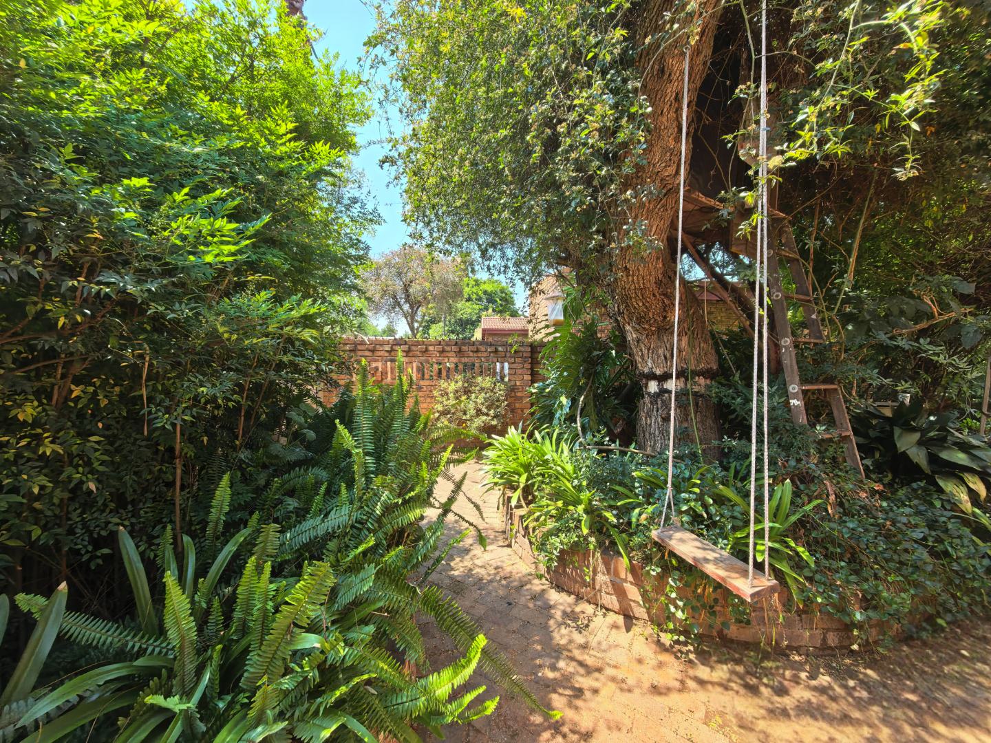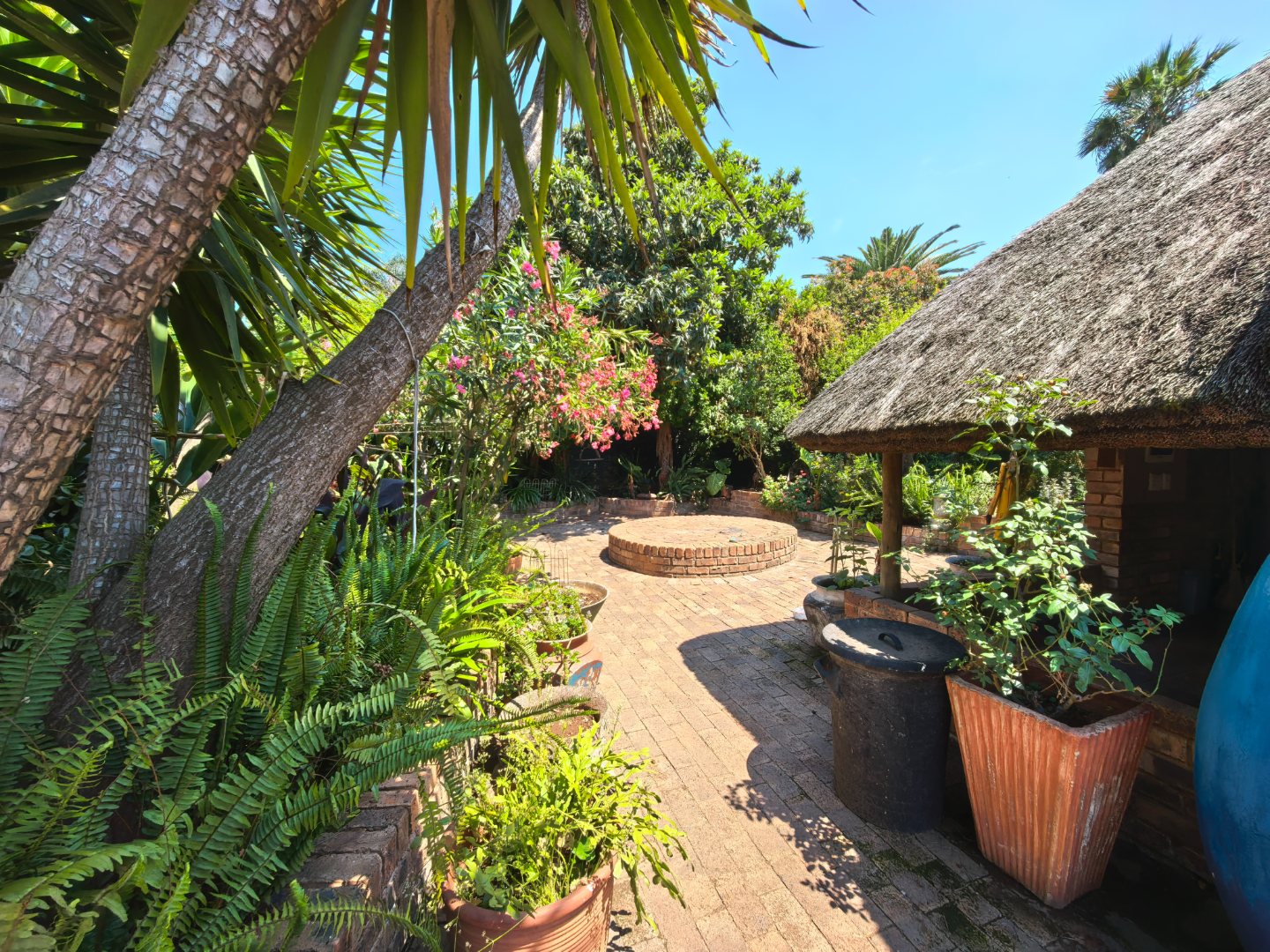 Outdoor living is equally captivating, centered around a sparkling swimming pool and a charming Lapa, perfect for sun-drenched relaxation. An inviting braai room with a built-in braai, sets the scene for memorable alfresco gatherings with a spacious guest toilet and change room. The meticulously landscaped garden, complete with two wendy houses, provides serene green spaces. Four automated garages and additional paved parking ensure ample accommodation for vehicles, and pets are warmly welcomed.