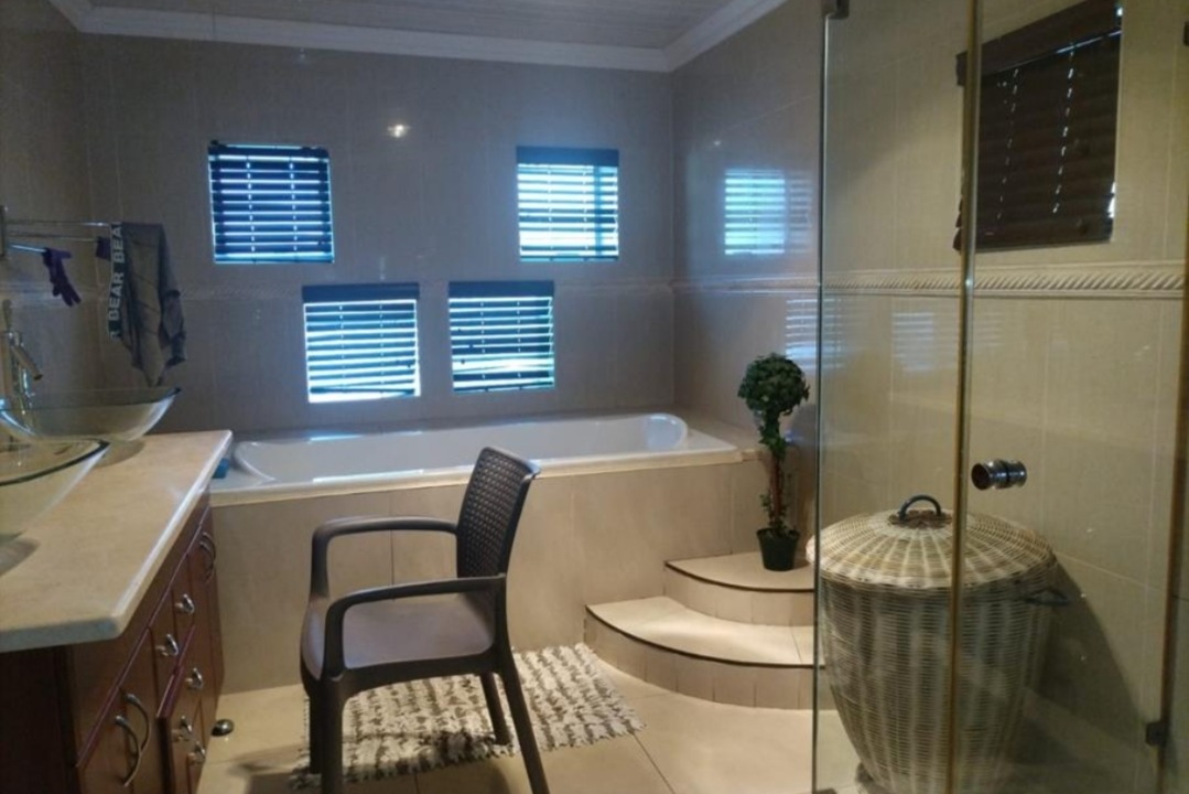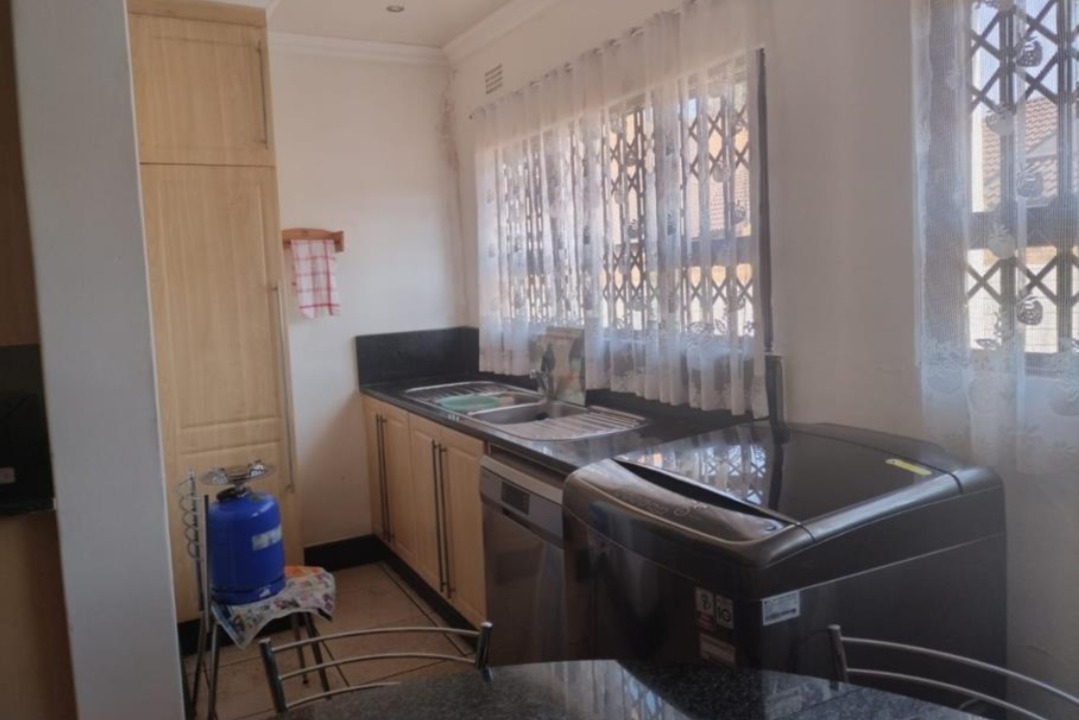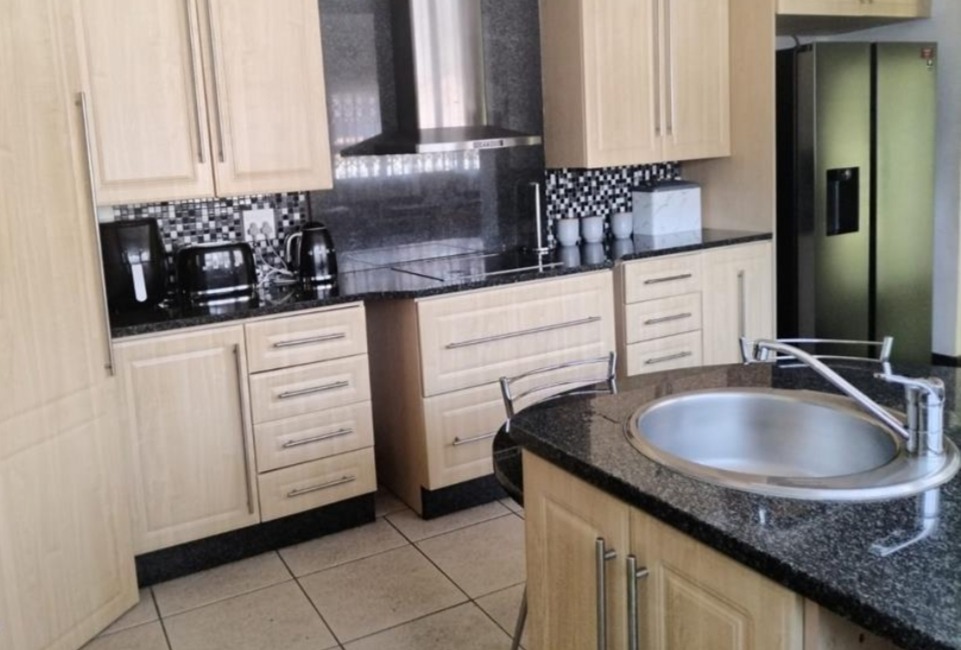Discover this inviting four-bedroom, three-bathroom residence located in the established suburb of Sunward Park, Boksburg. The home offers a functional layout designed for comfortable living, featuring bright and spacious dining areas with modern finishes and ample natural light streaming through large glass doors. The main kitchen boasts contemporary light wood-grain cabinetry, dark granite countertops, and integrated stainless steel appliances, complemented by a secondary utility kitchen for added convenience.